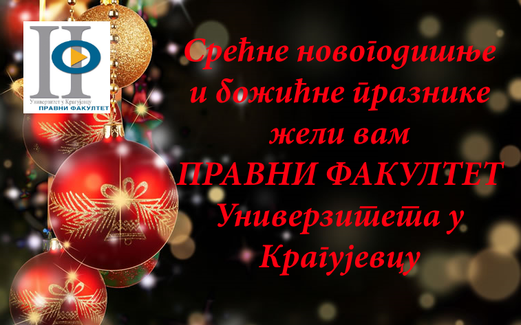 Због новогодишњих и божићних празника, Правни факултет Универзитета у Крагујевцу неће радити од 01.01.2026. године до 11.01.2026. године.