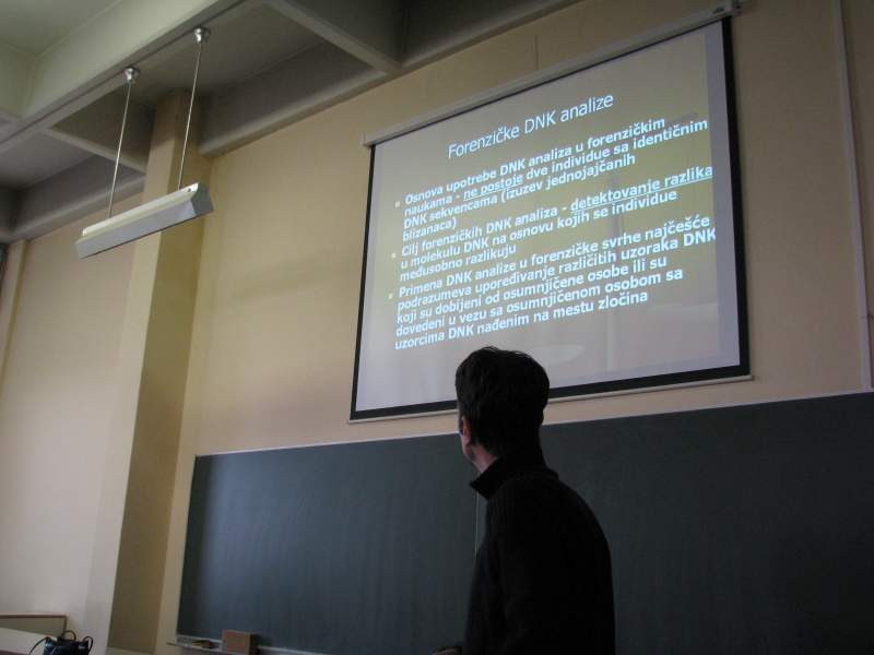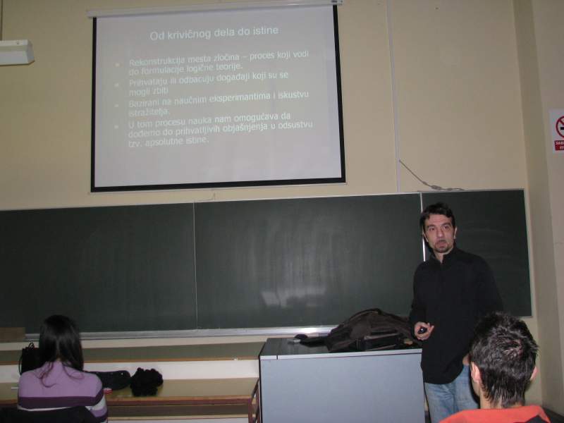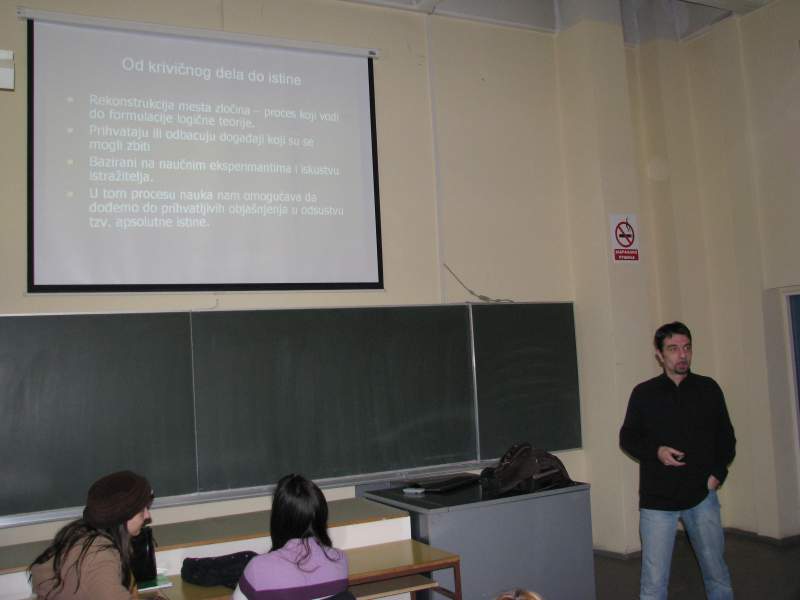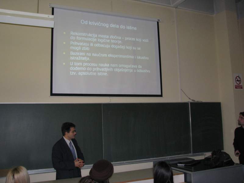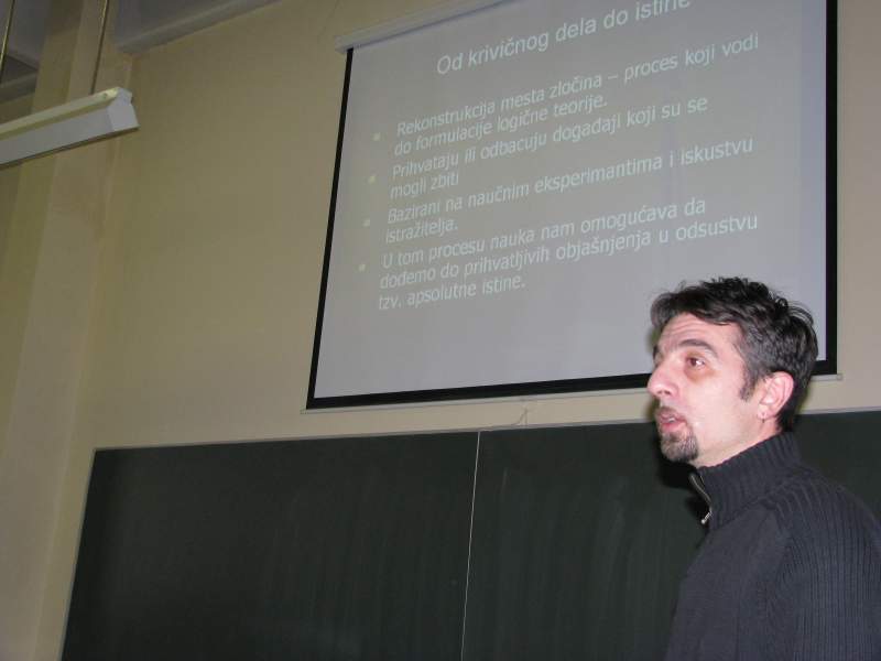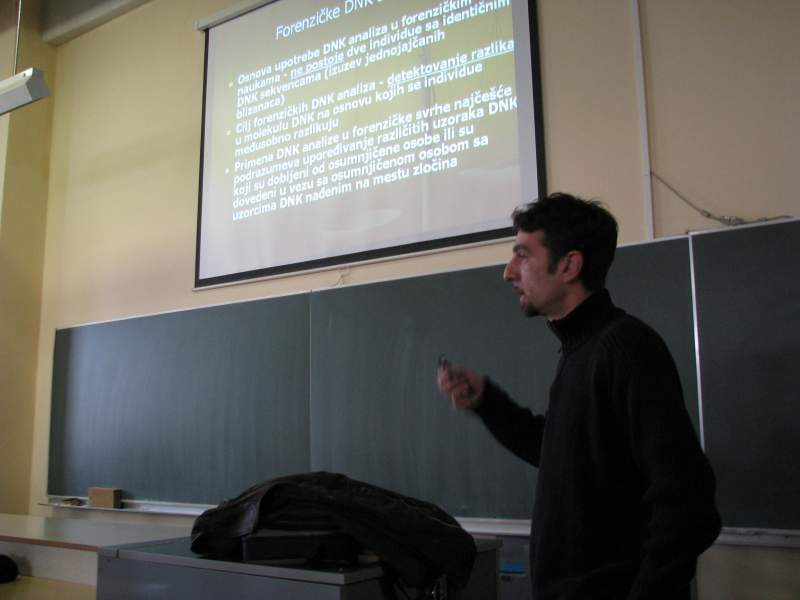 У оквиру редовне наставе из Криминалистике, у четвртак 11.12.2008. од 8:30- 11:00 часова, одржано је предавање о примени ДНК вештачења у криминалистици. Предавао је