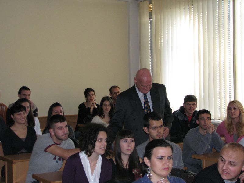 Студентима Правног факултета у Крагујевцу одржао је два предавања. Прво предавање је одржано у уторак 16. новембра са почетком у 13. часова на тему превенција криминалитета у Јужној Африци. Друго предавање је одржано у четвртак 18. новембра са почетком у 8,30 часова на тему методе сузбијања организованог криминалитета. Оба предавања су одржана у семинар сали Правног факултета у Крагујевцу.