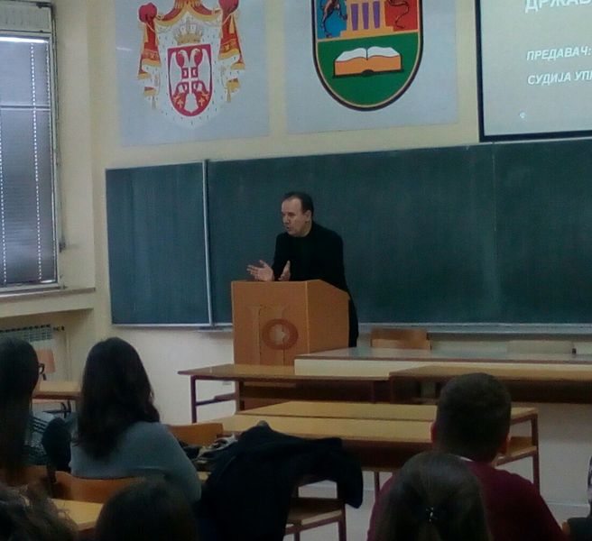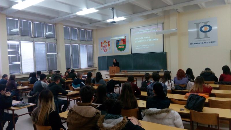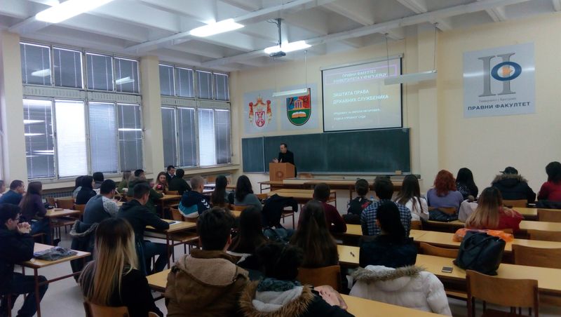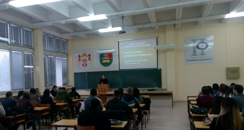 У оквиру реализације Плана рада на наставном предмету Службеничко право, мр Никола Китаровић, судија Управног суда, у среду 21.марта 2018. године, одржаo je студентима предавање на тему: "Заштита права државних службеника".