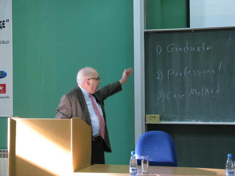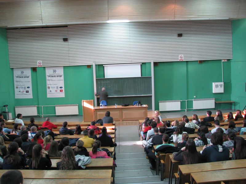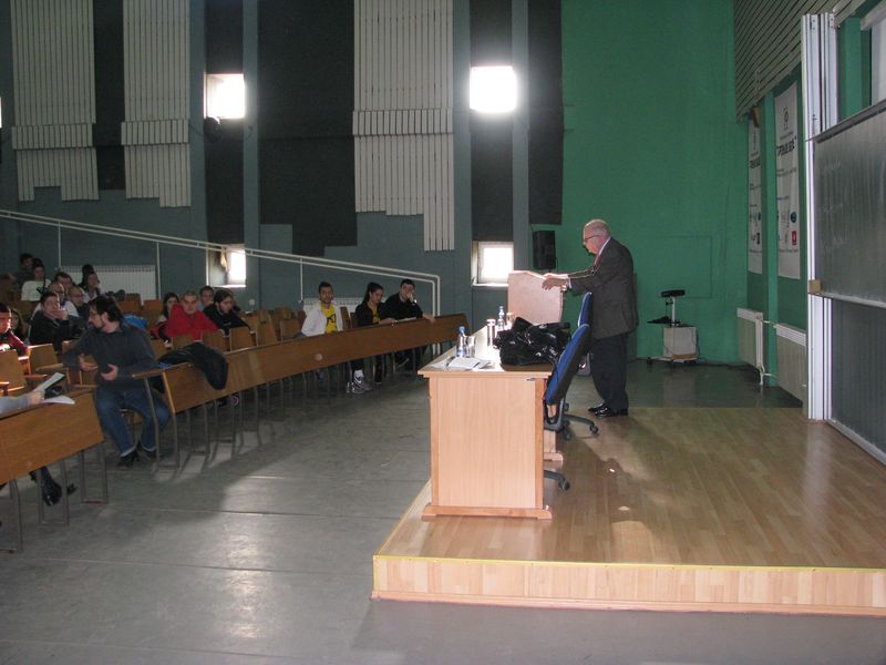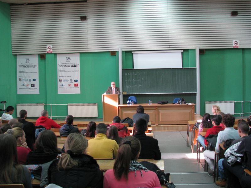 Проф. др Клеба је упознао студенте, између осталог, и са могућностима студирања студената нашег факултета у С.А.Д.