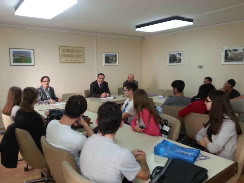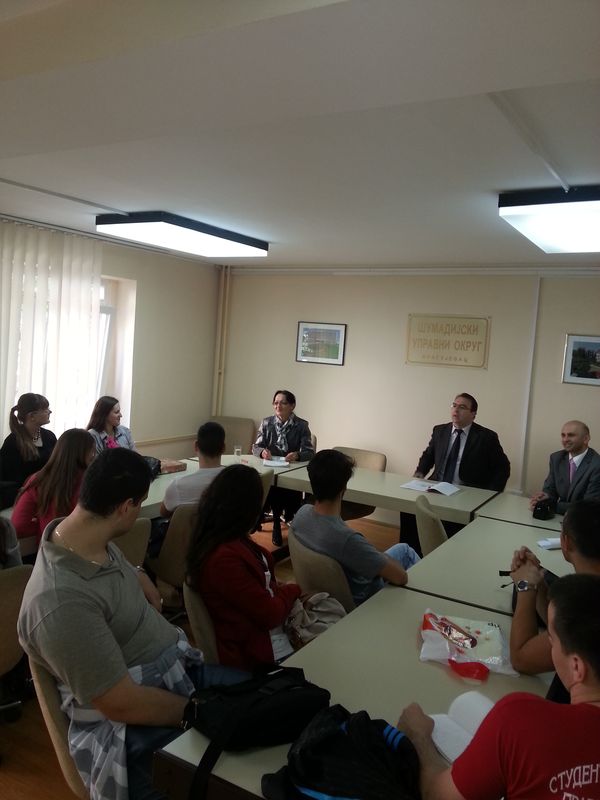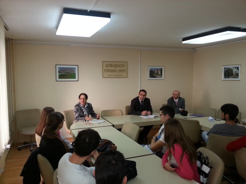 У оквиру реализације наставног процеса из предмета Управно право, студенти треће године Правног факултета у Крагујевцу, дана 29. 10. 2013. године, посетили су Шумадијски управни округ са седиштем у Крагујевцу.