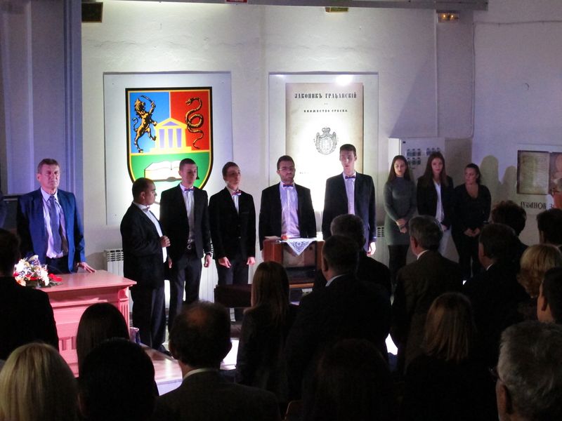 Свечана академија је отворена химном Републике Србије "Боже правде" и академском химном "Gaudeamus Igitur" у извођењу вокално-инструменталног састава "Архангели". Након поздравне речи декана Правног факултета Универзитета у Крагујевцу, проф. др Станка Бејатовића, присутнима су се обратили гости. Испред Универзитета у Крагујевцу честитке је упутио проректор за науку, проф. др Драган Бошковић, након кога су уследили говори председника Врховног касационог суда Републике Србије, Драгомира Милојевића, декана Правног факултета Универзитета у Београду, проф. др Симе Аврамовића, директора Правосудне академије у Београду, Ненада Вујића, декана Факултета инжењерских наука Универзитета у Крагујевцу, проф. др Добрице Миловановића, декана Економског факултета Универзитета у Крагујевцу, проф. др Петра Веселиновића и председника Студентског парламента Правног факултета Универзитета у Крагујевцу, Стефана Јовановића.