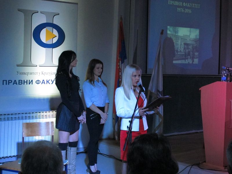 Поводом 40 година постојања и успешног рада у уторак, 4. октобра 2016. године на Правном факултету Универзитета у Крагујевцу одржана је Свечана академија.