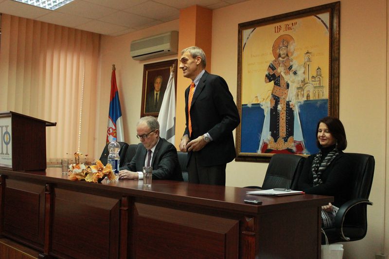 Њ.Е. Филип Пинингтон је потом одржао предавање на енглеском језику на тему: „Canada and the treaty basis for internation drug control“ у Свечаној сали Правног факултета у Крагујевцу за студенте, као и стручну јавност. Након предавања, отворена је дискусија.