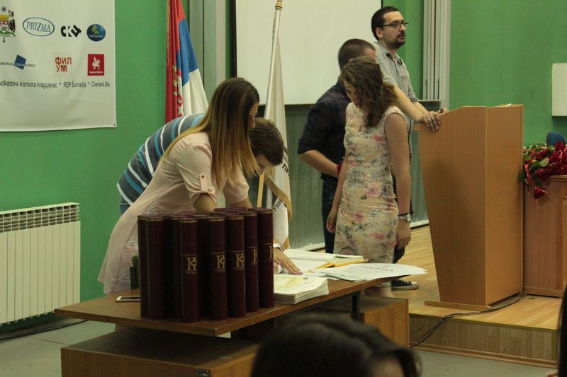 У понедељак, 15. јуна 2015. године у амфитеатру Правног факултета у Крагујевцу, одржана је свечаност поводом додела диплома студентима који су завршили основне четворогодишње академске студије. Церемонију доделе диплома отворио је декан, проф. др Станко Бејатовић. Након наступа уметника са ФИЛУМ-а, студентима су додељене дипломе.