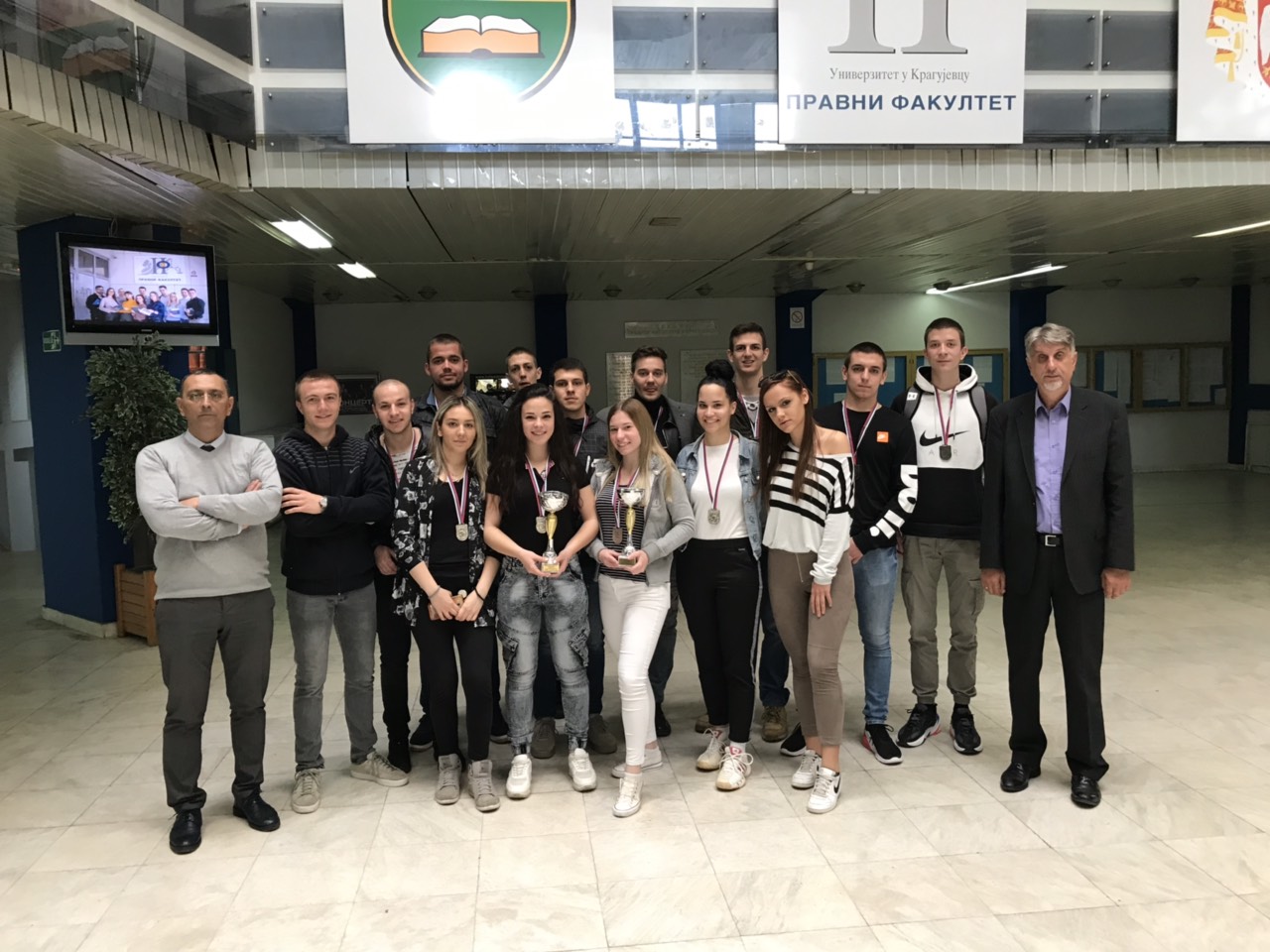 Правни Факултет освојио друго место у укупном пласману на Купу ректора одржаном у Чачку 14.4.2019. године.