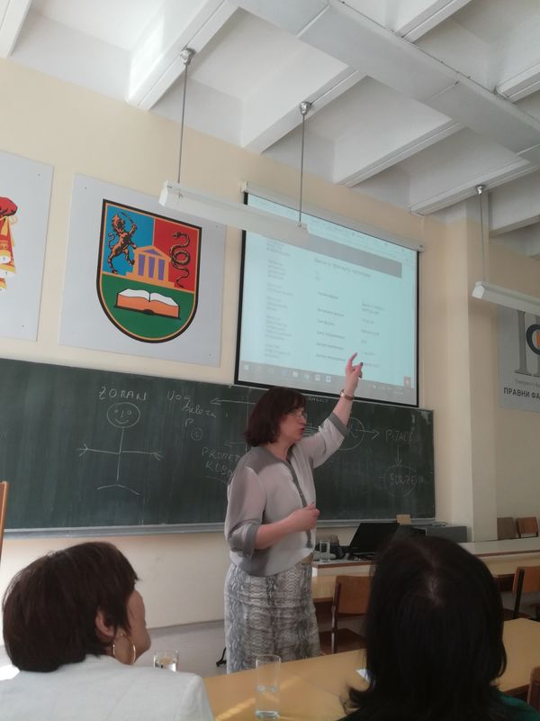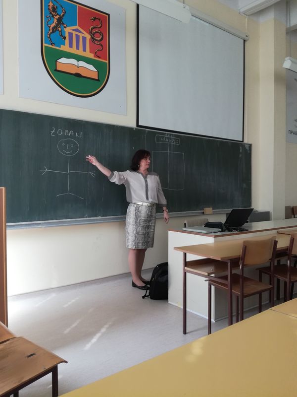 У петак, 13. априла 2018. године, на Правном факултету Универзитета у Крагујевцу, у оквиру процеса извођења наставе из изборних наставних предмета Корпоративно управљање и Берзе и берзанско пословање, предавање на тему „Корпоративно управљање и приватизација“ одржала је др Данила Ђокић, ванредни професор на Факултету за менаџмент Копер, Универзитета у Приморској, Република Словенија.