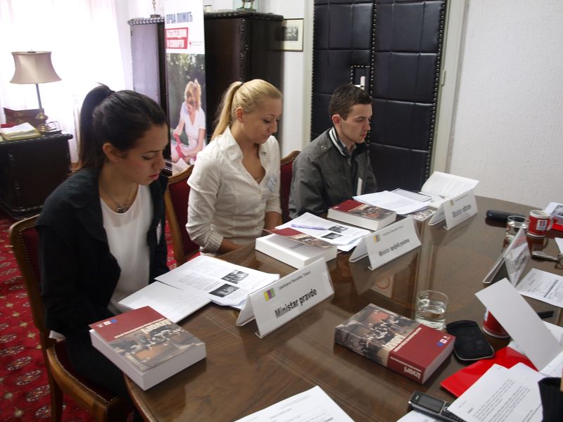 Правни факултет у Крагујевцу представили су студенти који имају одличан успех на факултету, такмичари: Полетан Ивана, студент четврте године, Илић Катарина, студент треће године и Лепојевић Адријана, студент треће године уз тренера Лалић Бошка, студента четврте године, иначе прошлогодишњег учесника "MOOT COURT" 2012.