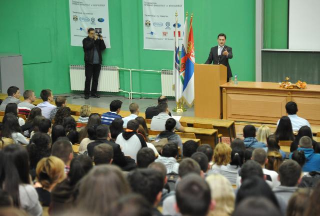 Министар правде и државне управе, господин Никола Селаковић је у оквиру посете Правном факултету у Крагујевцу 26.11.2013. године, одржао говор у оквиру Дана Правника у амфитеатру факултета.