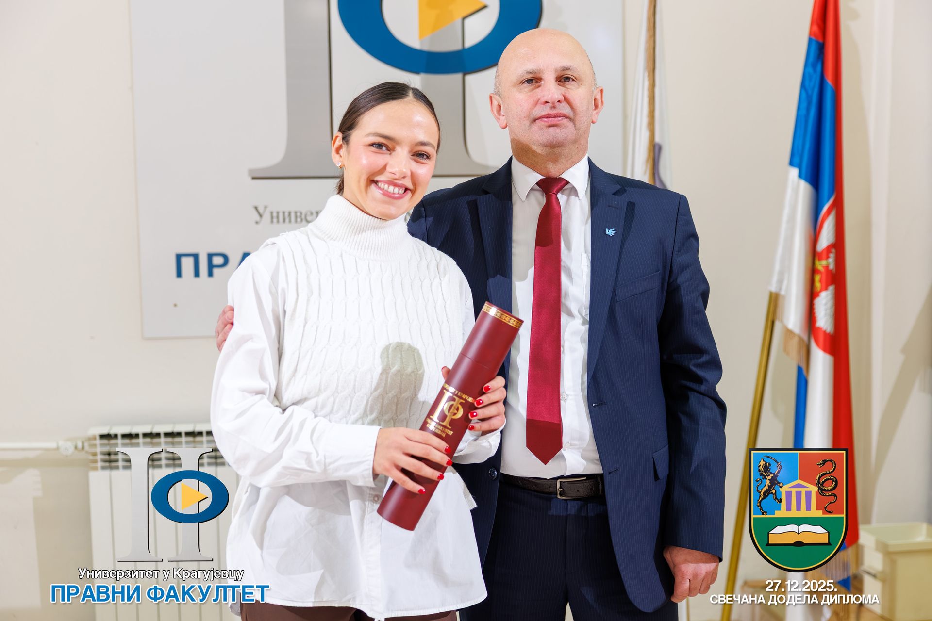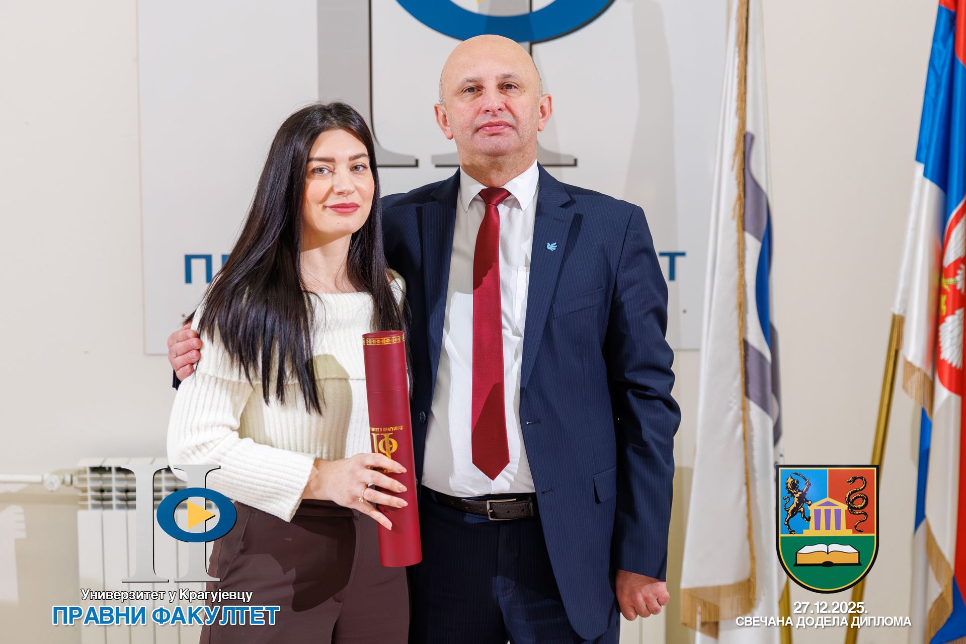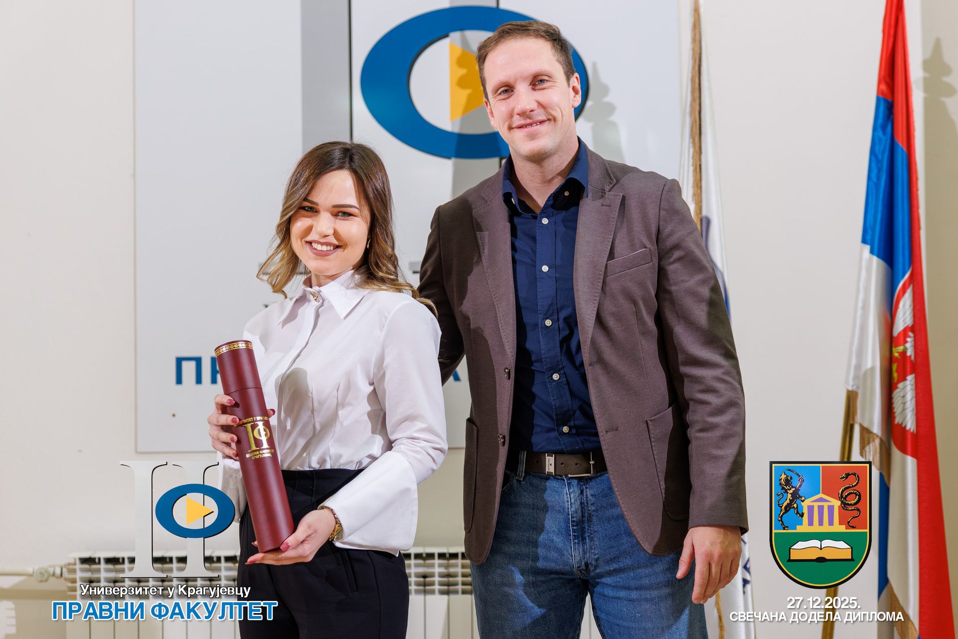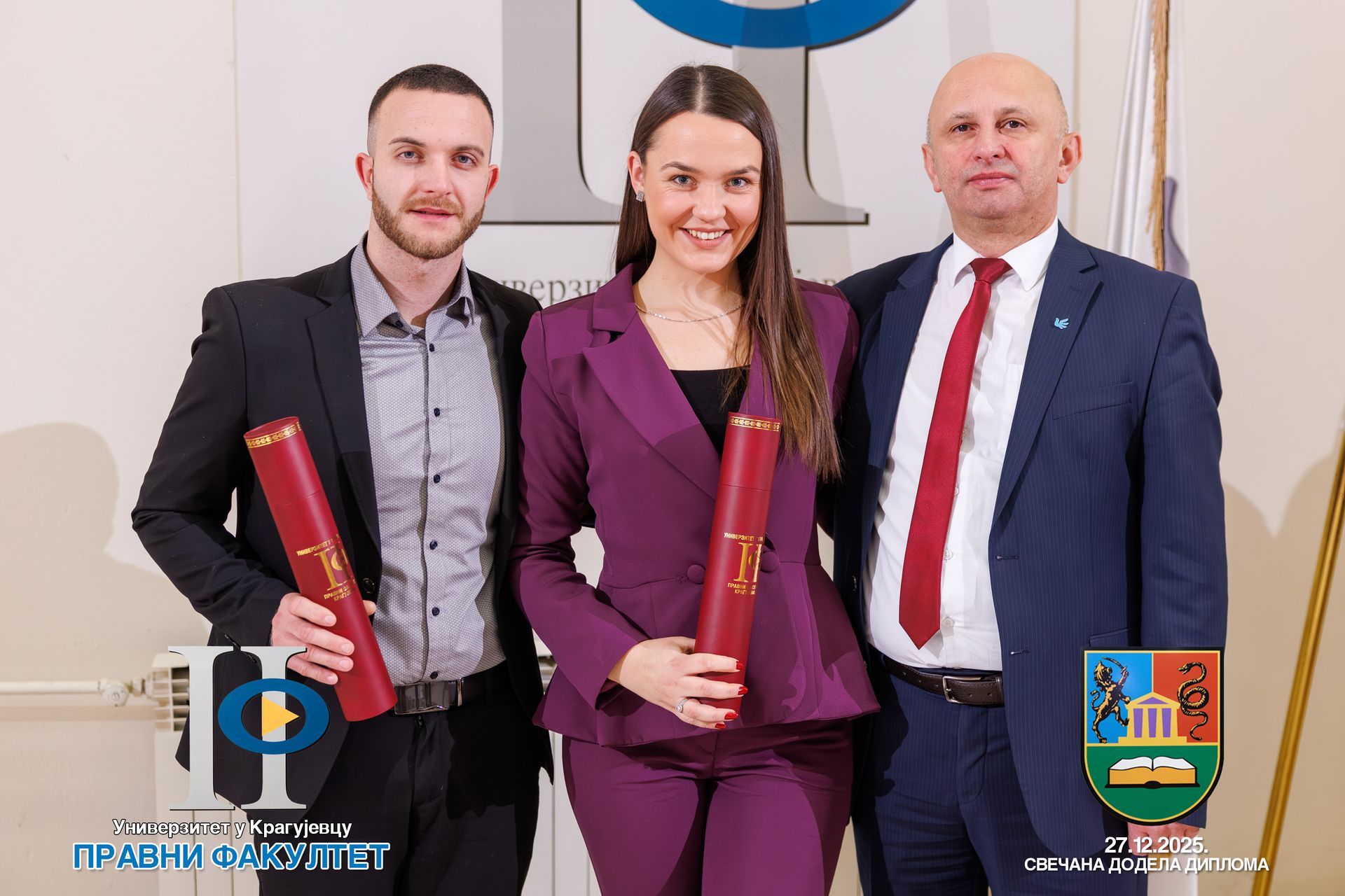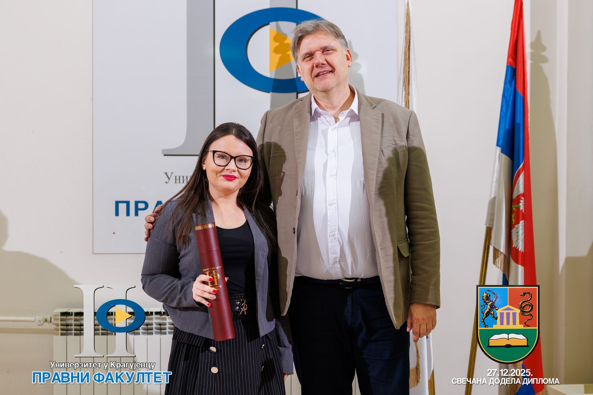 Дана 27. децембра 2025. године на Правном факултету Универзитета у Крагујевцу одржана је свечана додела диплома студентима који су успешно завршили основне или мастер академске студије у периоду од 1. јануара 2024. до 31. октобра 2025. године.