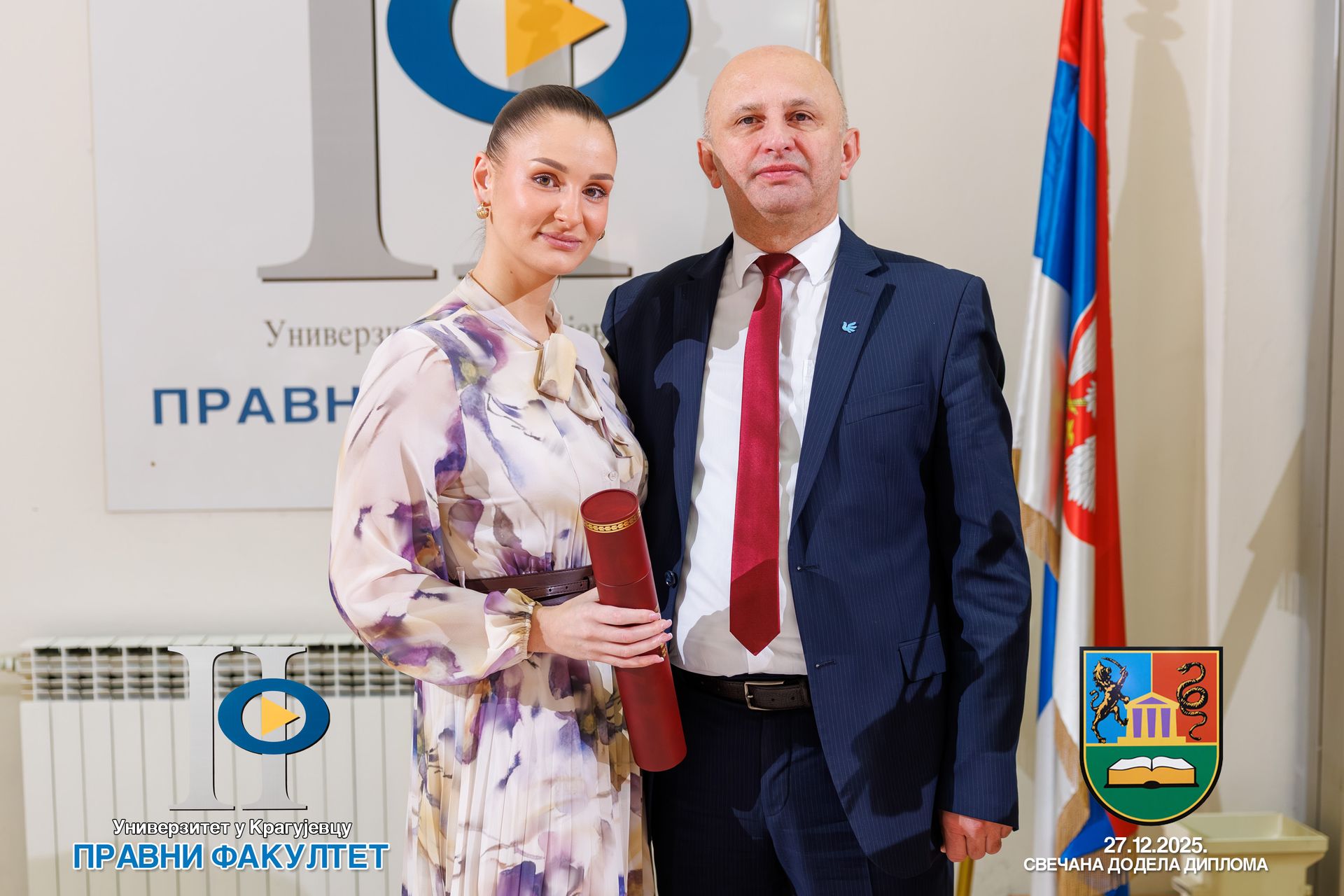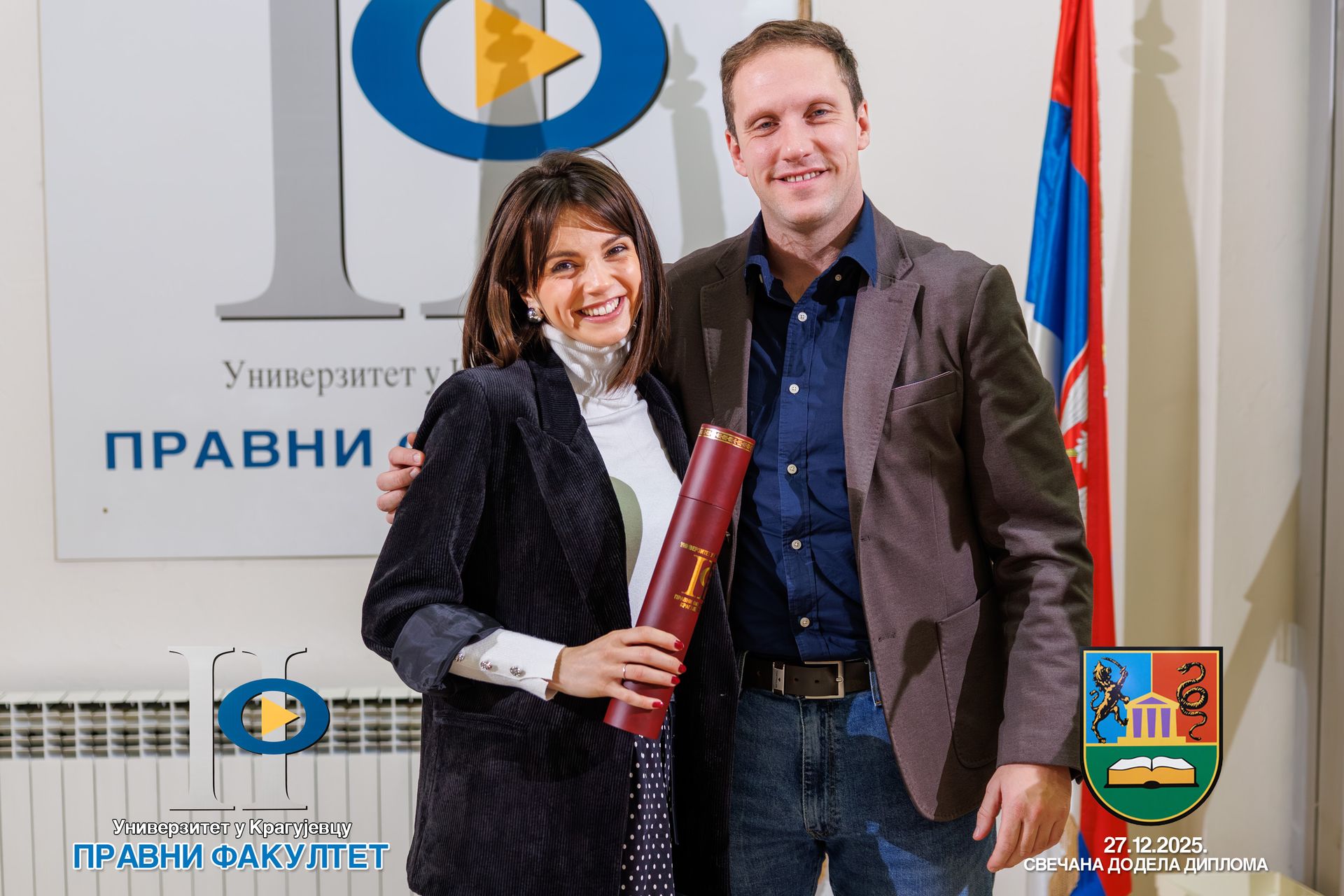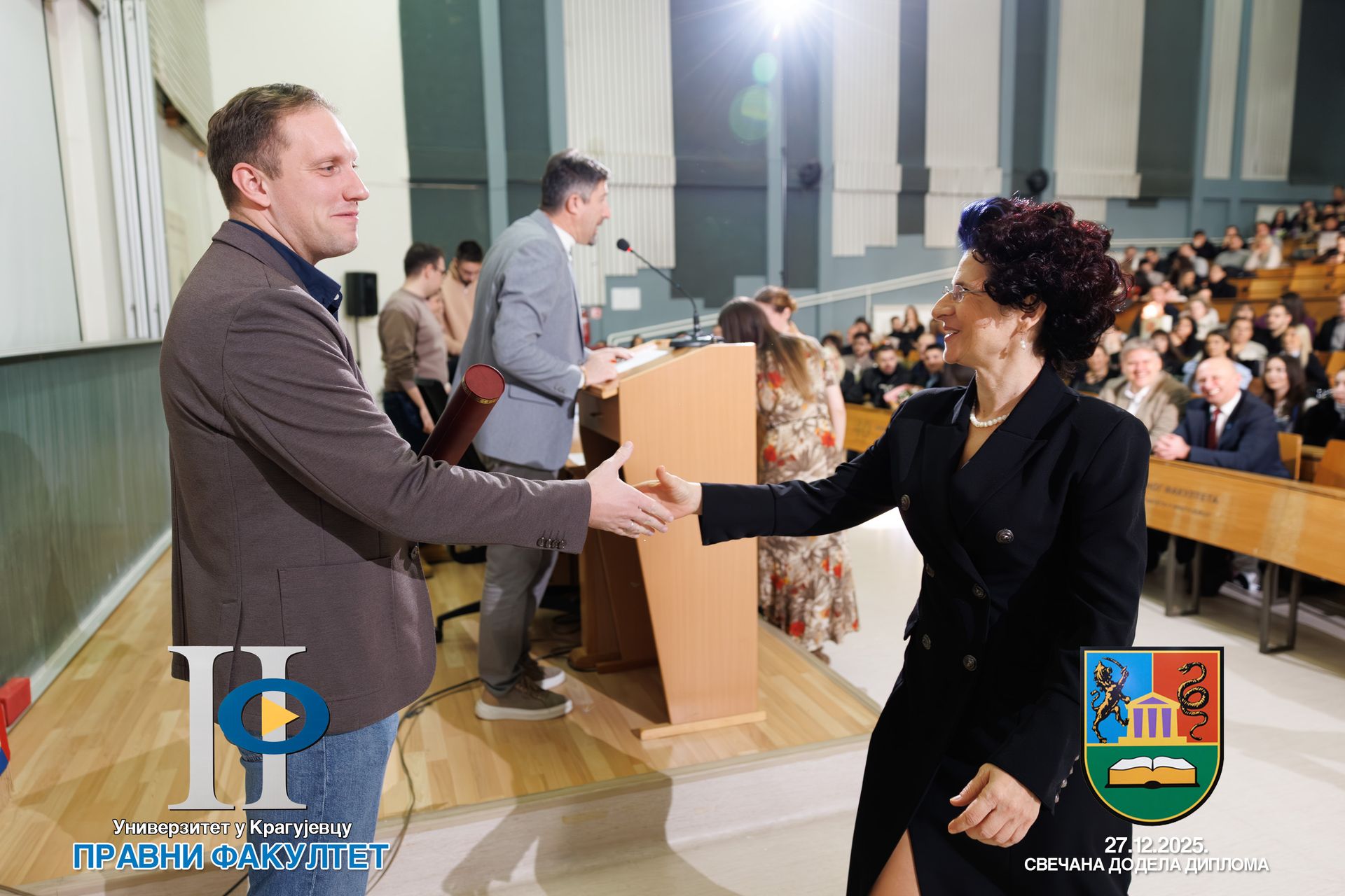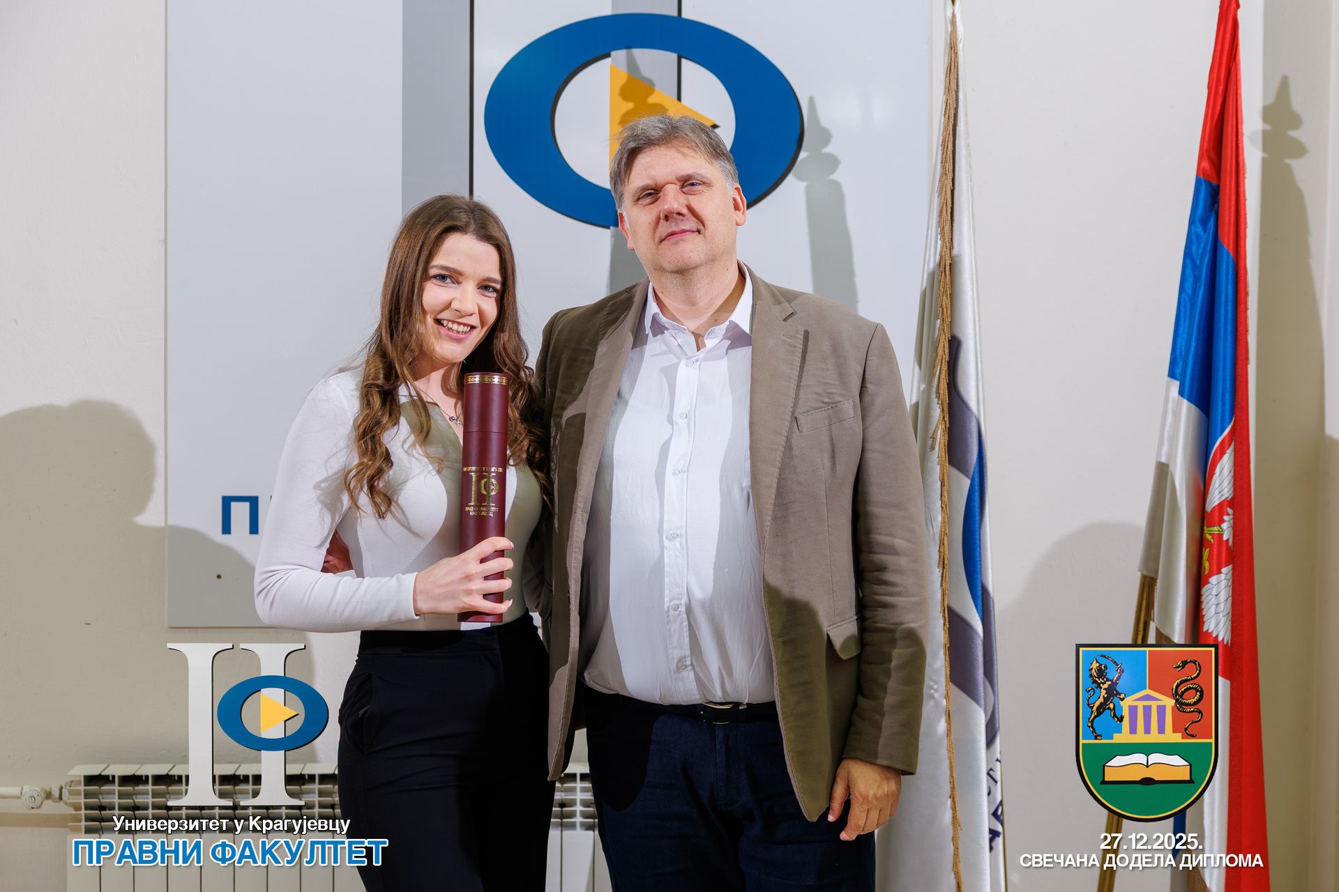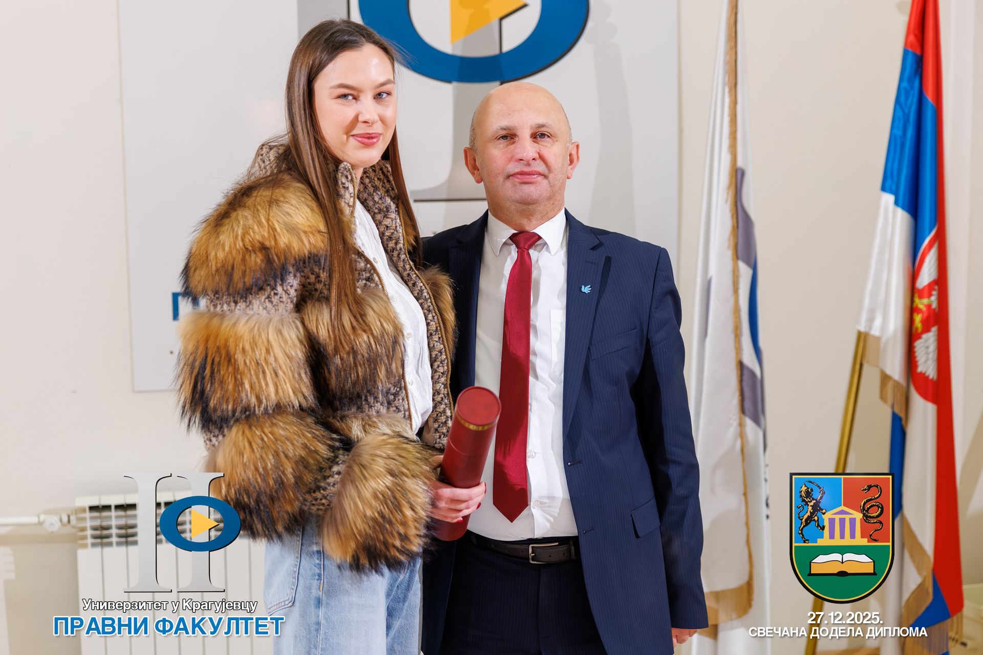Дана 27. децембра 2025. године на Правном факултету Универзитета у Крагујевцу одржана је свечана додела диплома студентима који су успешно завршили основне или мастер академске студије у периоду од 1. јануара 2024. до 31. октобра 2025. године.