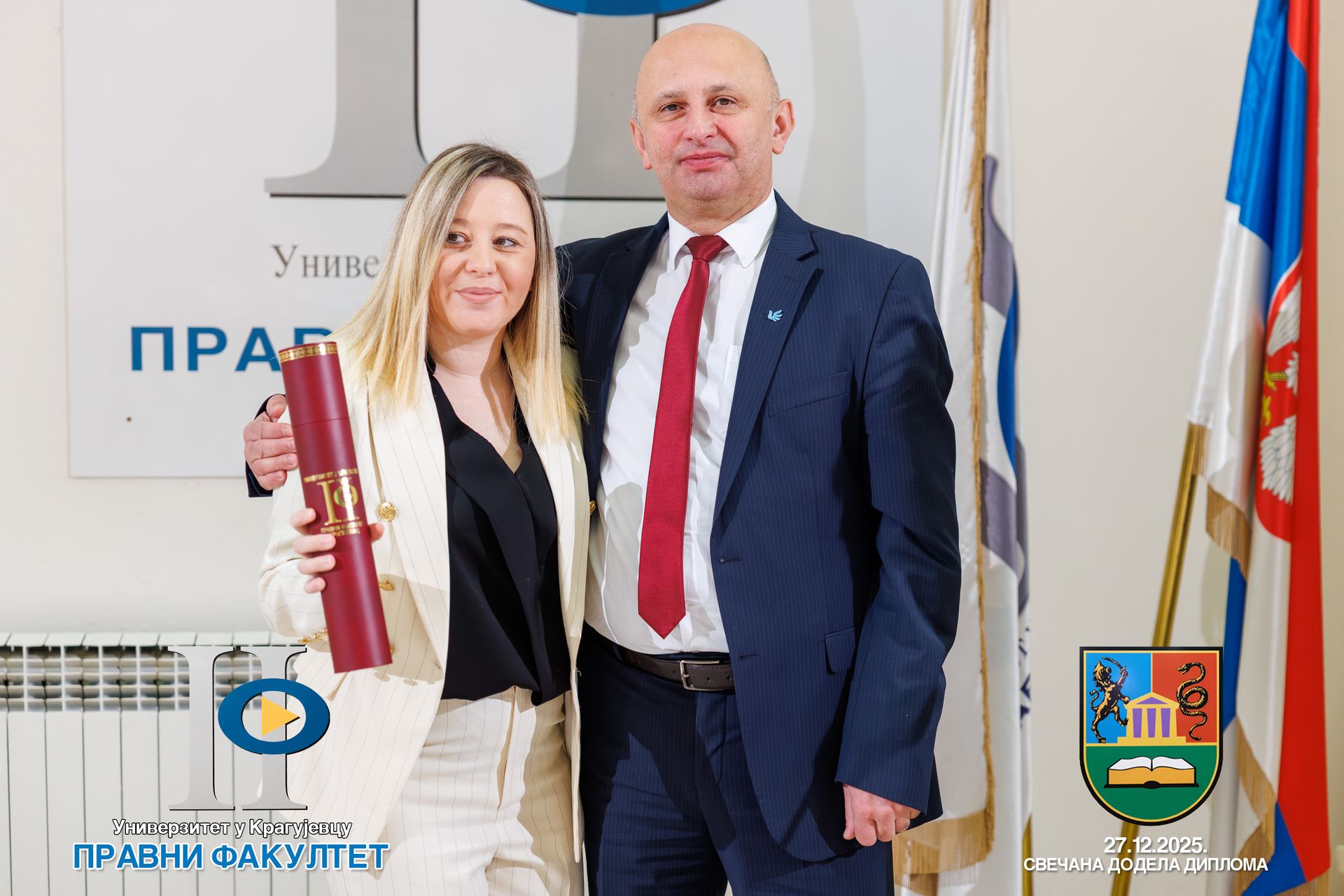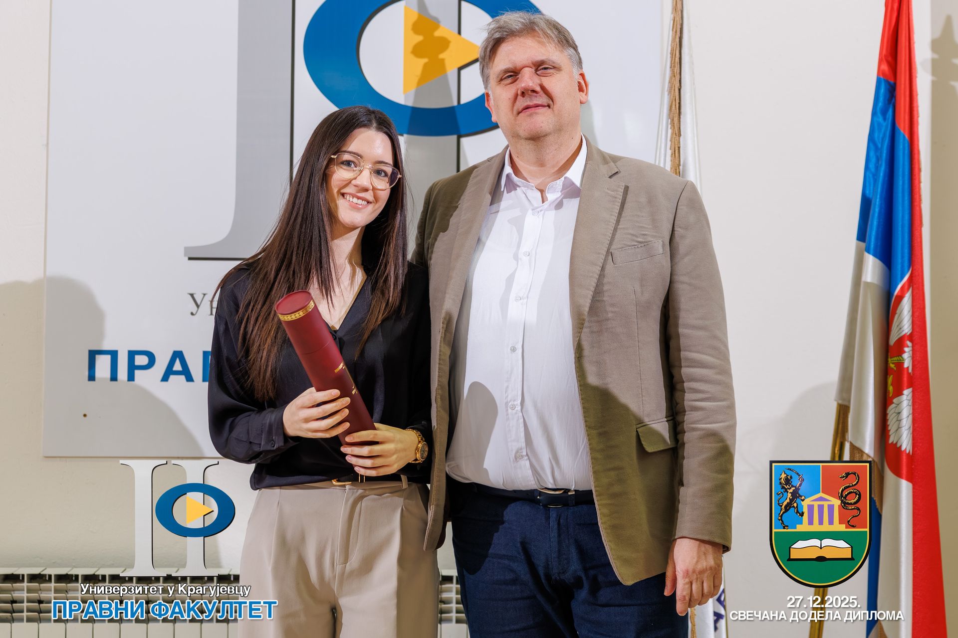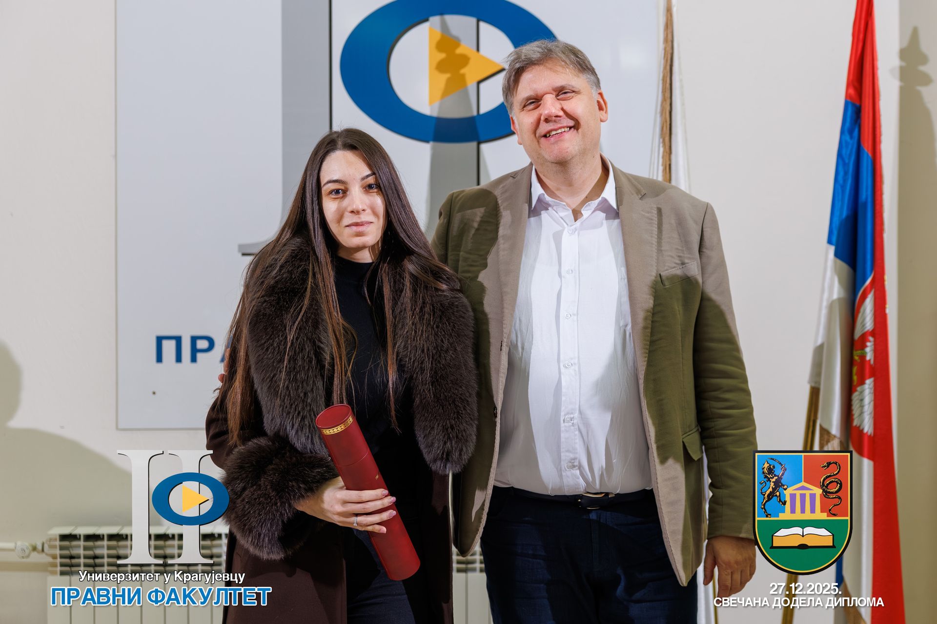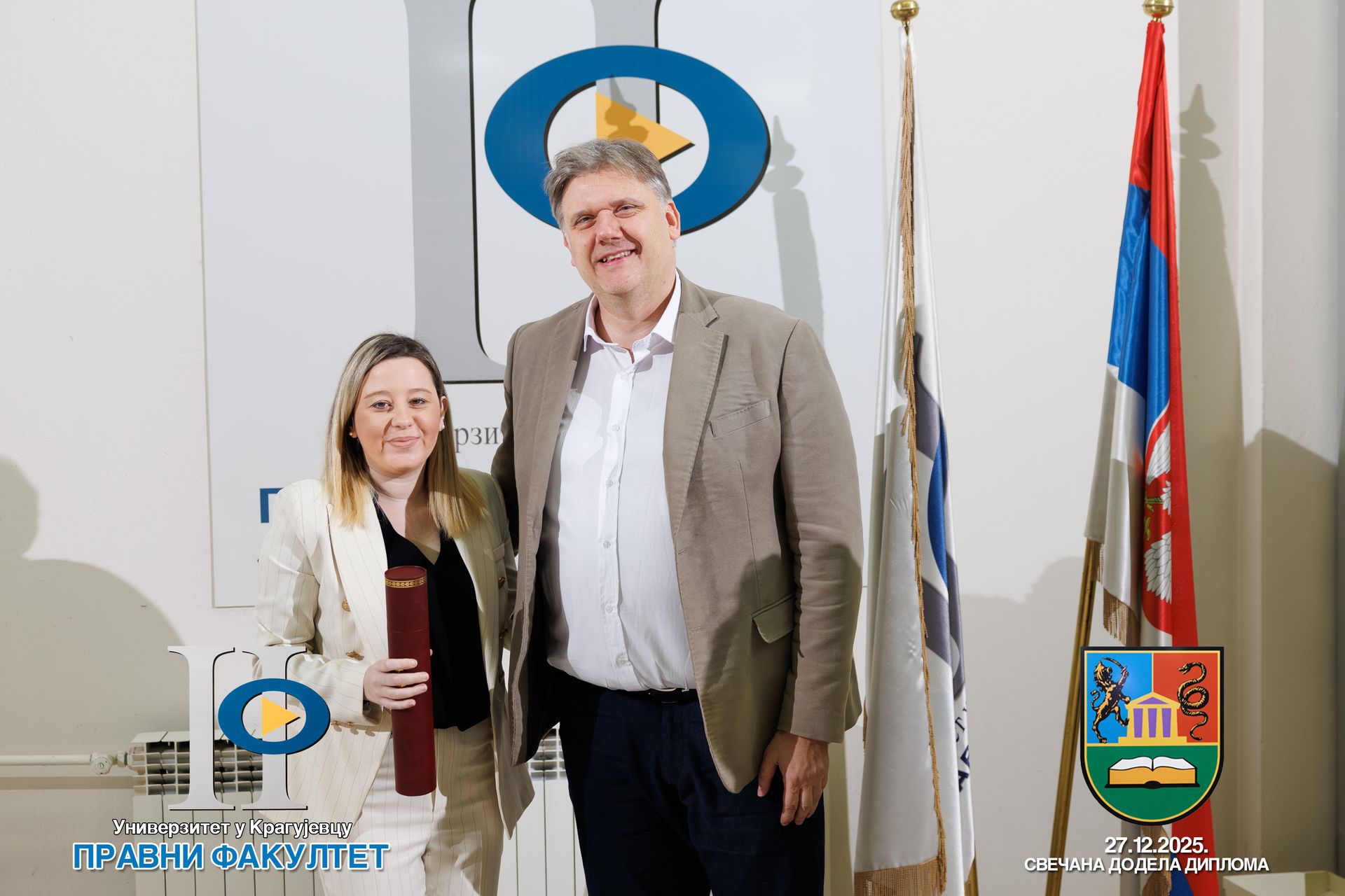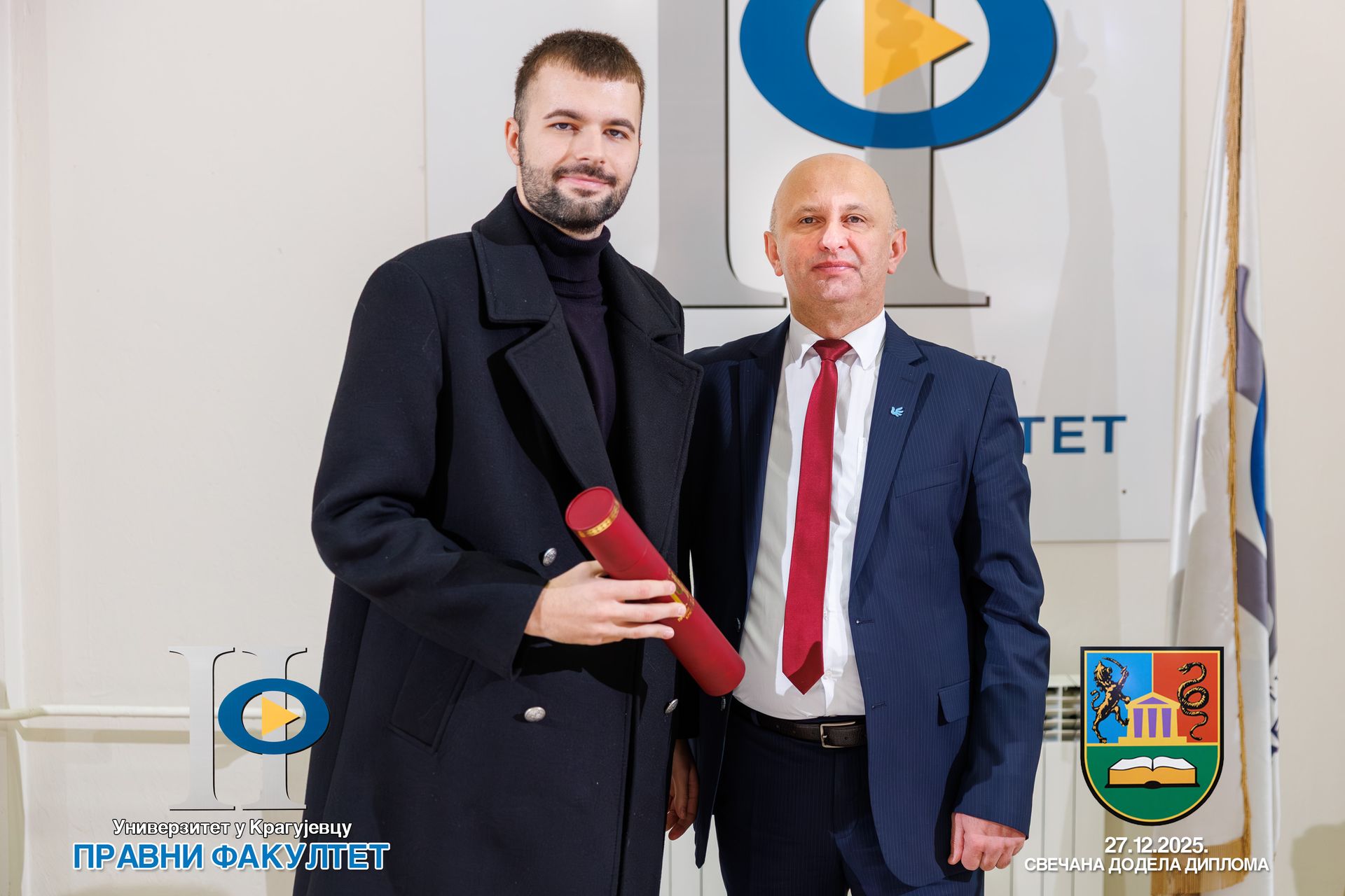 Дана 27. децембра 2025. године на Правном факултету Универзитета у Крагујевцу одржана је свечана додела диплома студентима који су успешно завршили основне или мастер академске студије у периоду од 1. јануара 2024. до 31. октобра 2025. године.