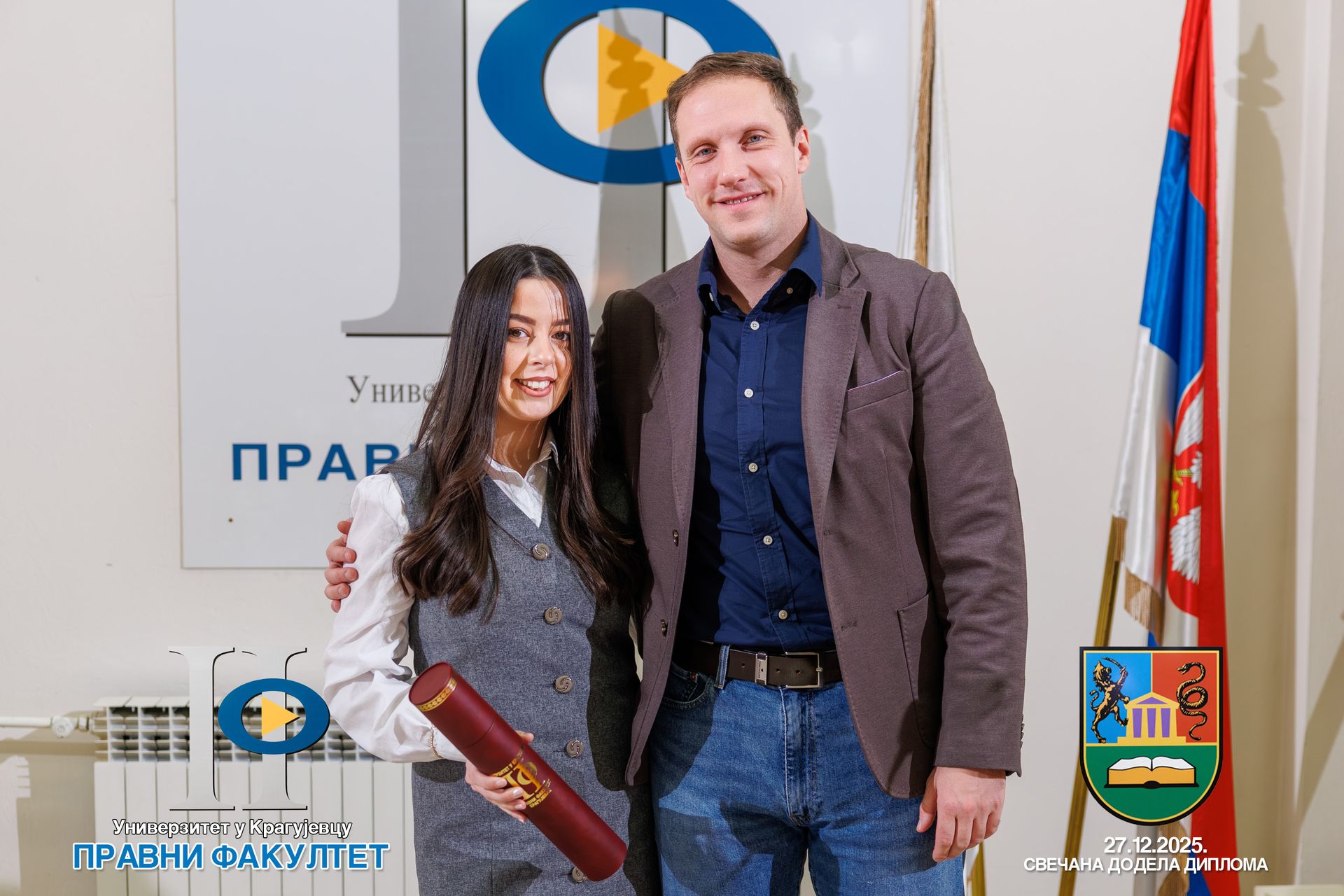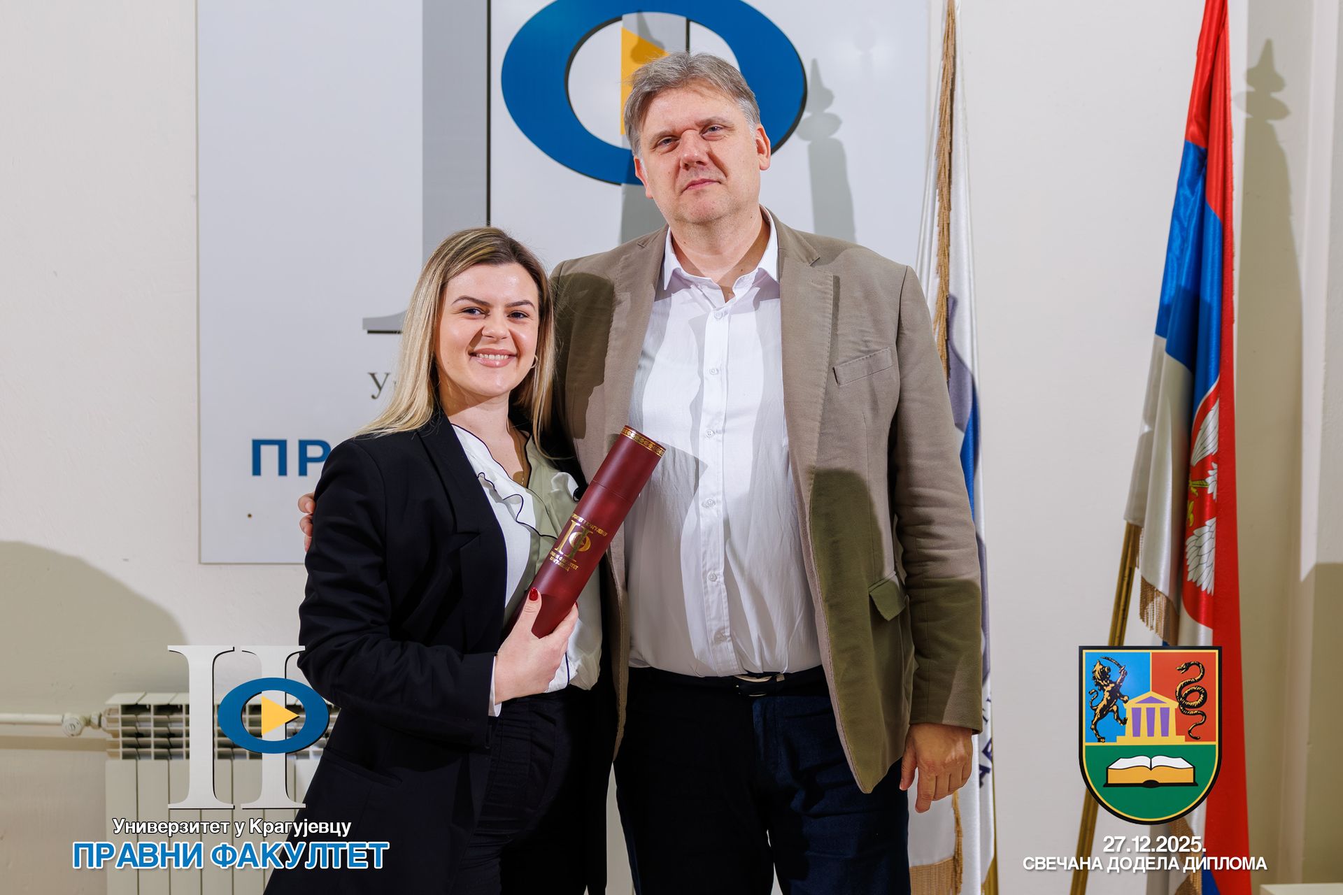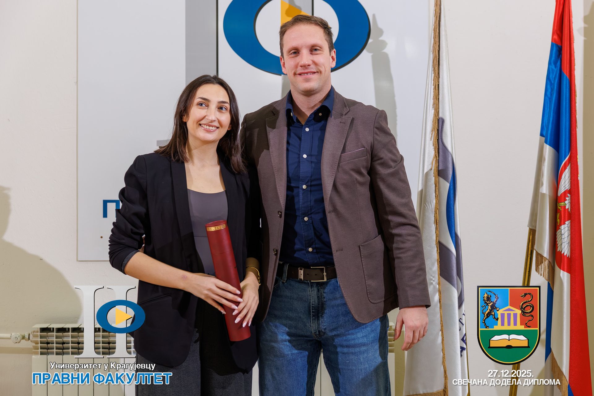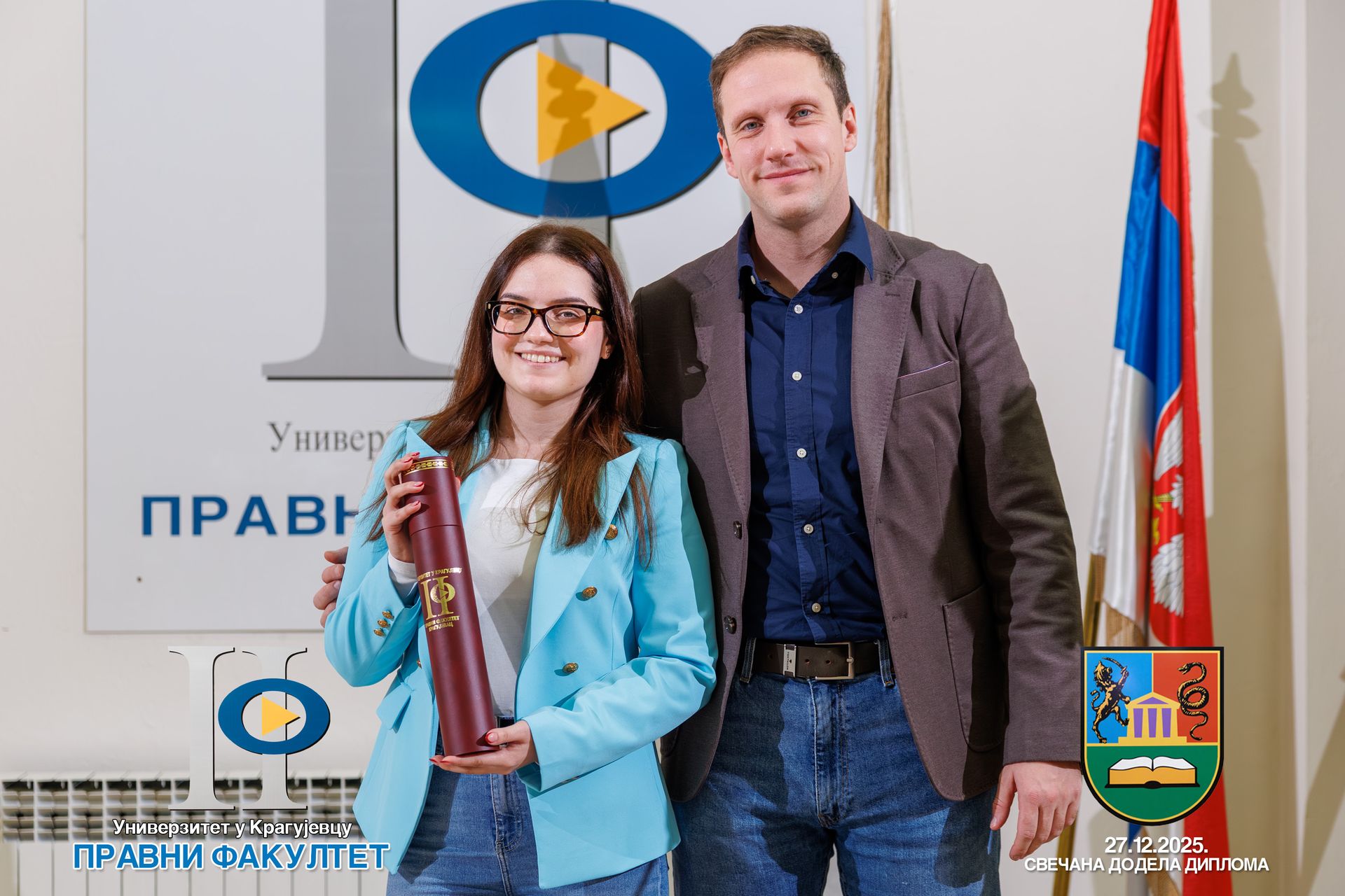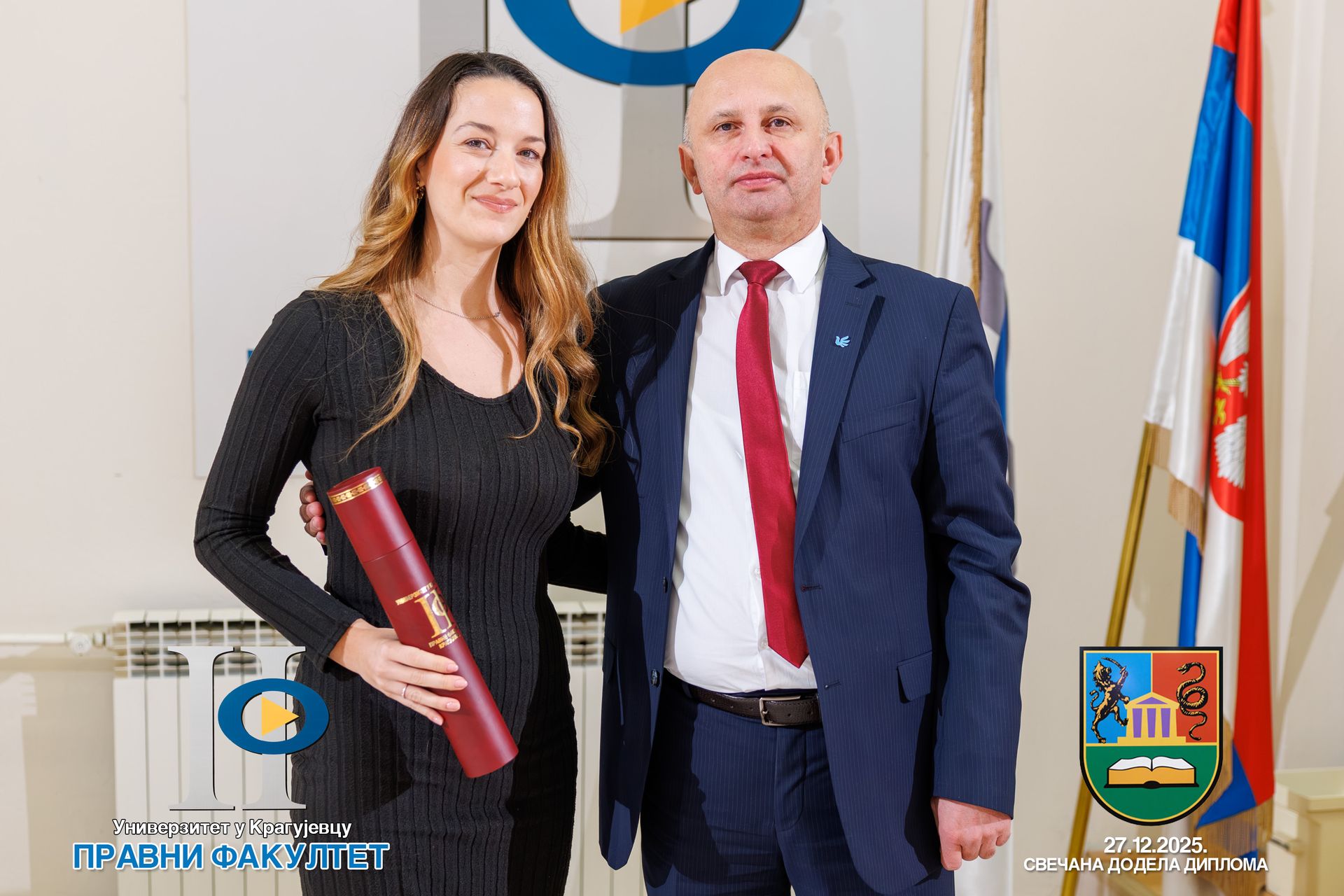 Дана 27. децембра 2025. године на Правном факултету Универзитета у Крагујевцу одржана је свечана додела диплома студентима који су успешно завршили основне или мастер академске студије у периоду од 1. јануара 2024. до 31. октобра 2025. године.