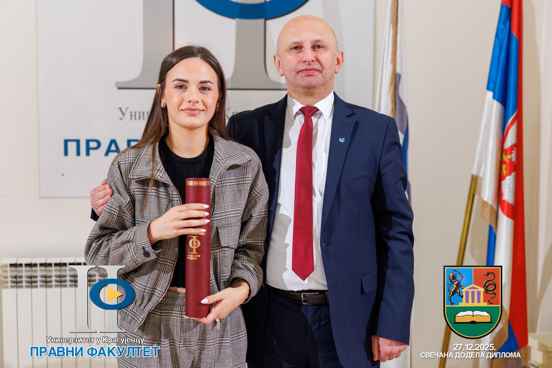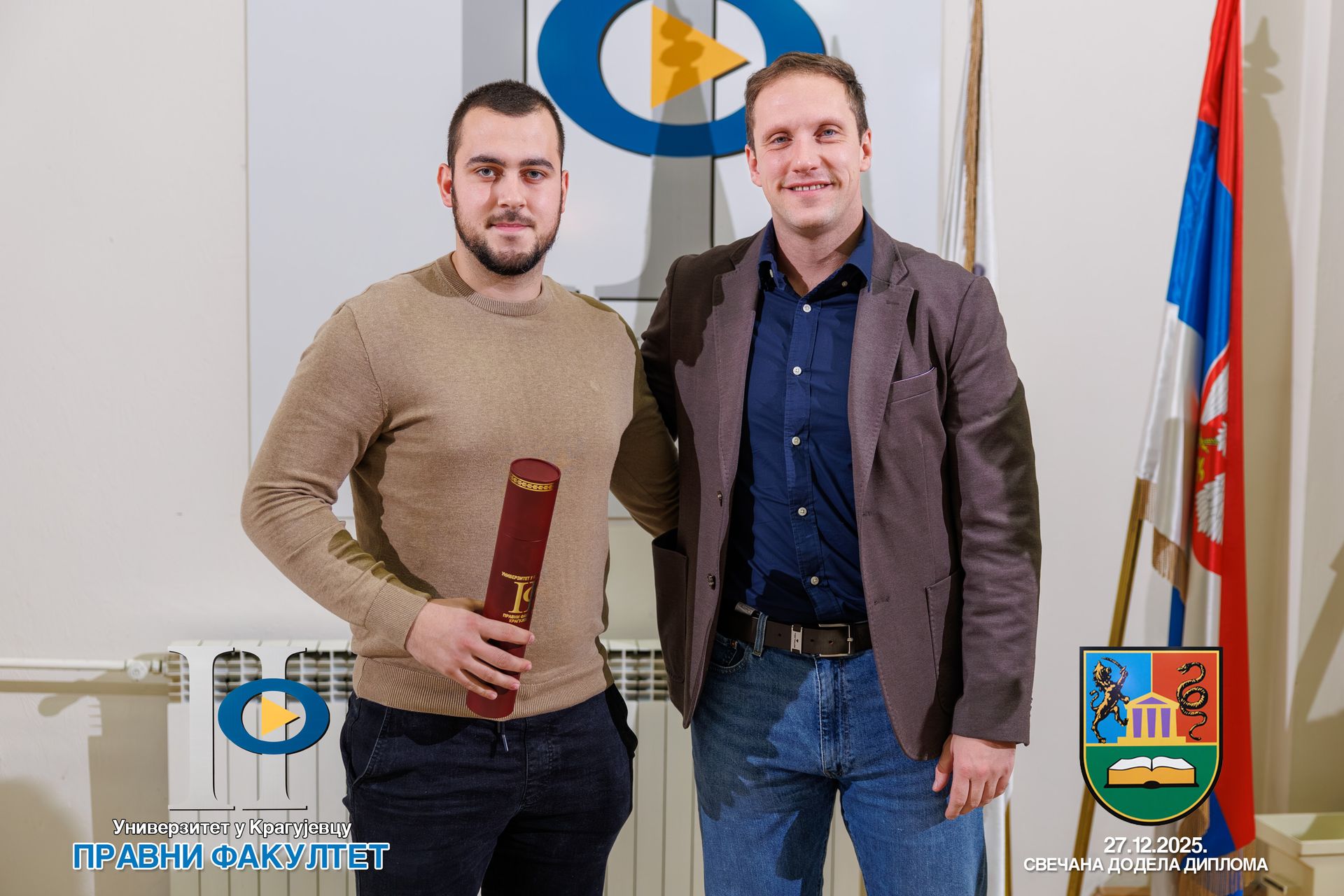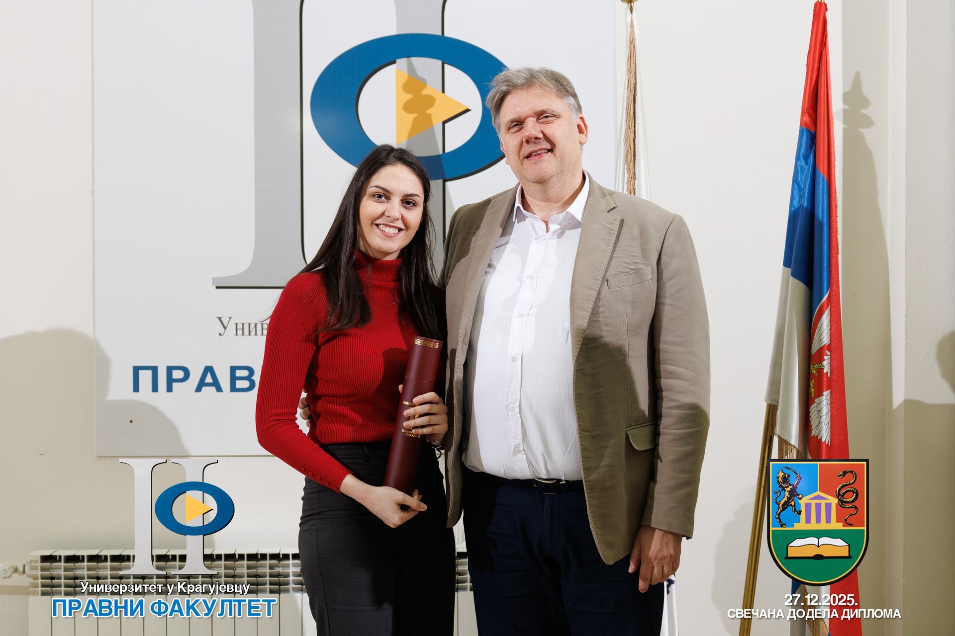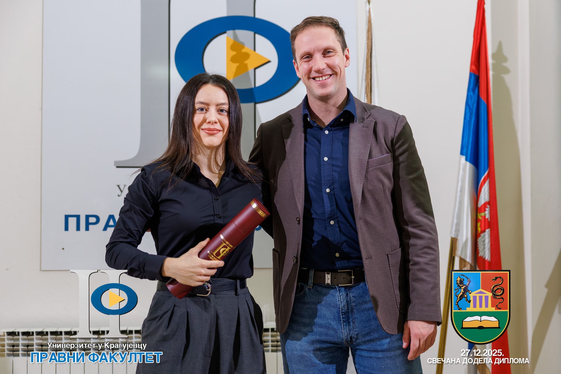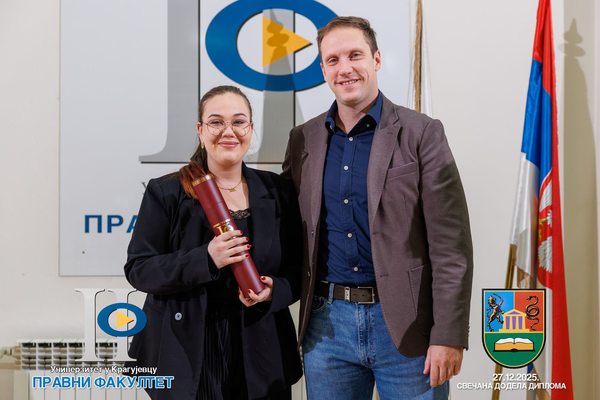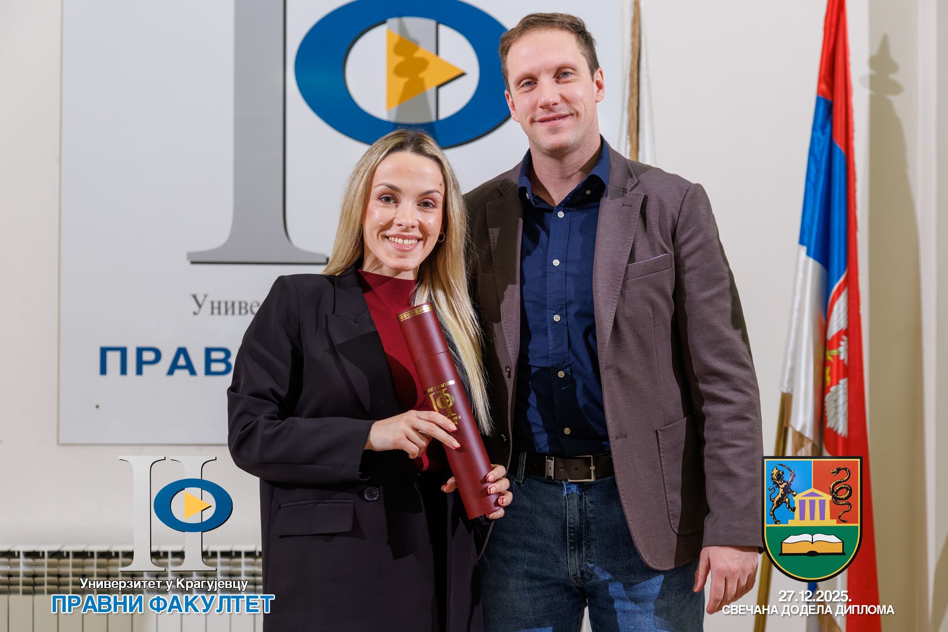 Дана 27. децембра 2025. године на Правном факултету Универзитета у Крагујевцу одржана је свечана додела диплома студентима који су успешно завршили основне или мастер академске студије у периоду од 1. јануара 2024. до 31. октобра 2025. године.