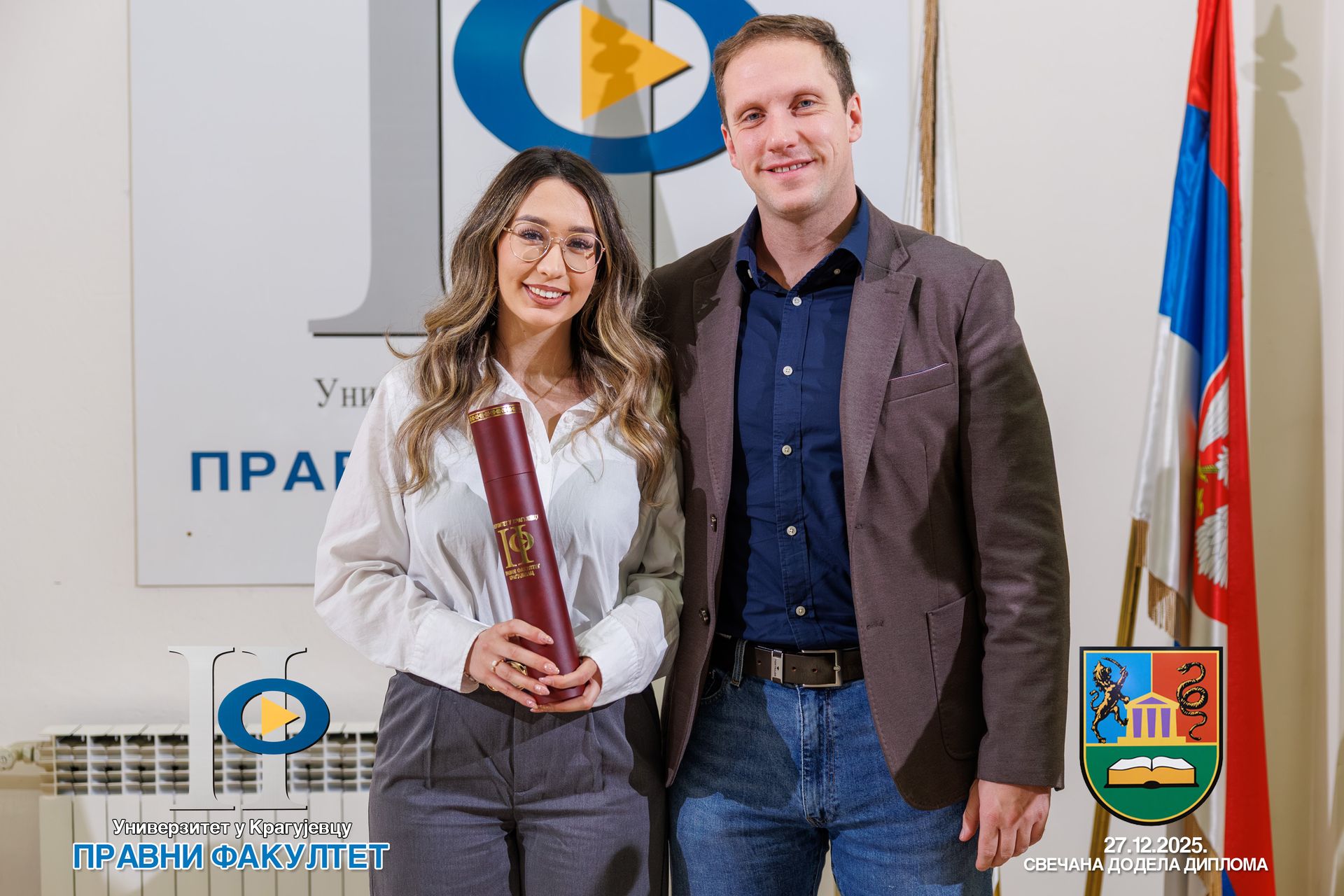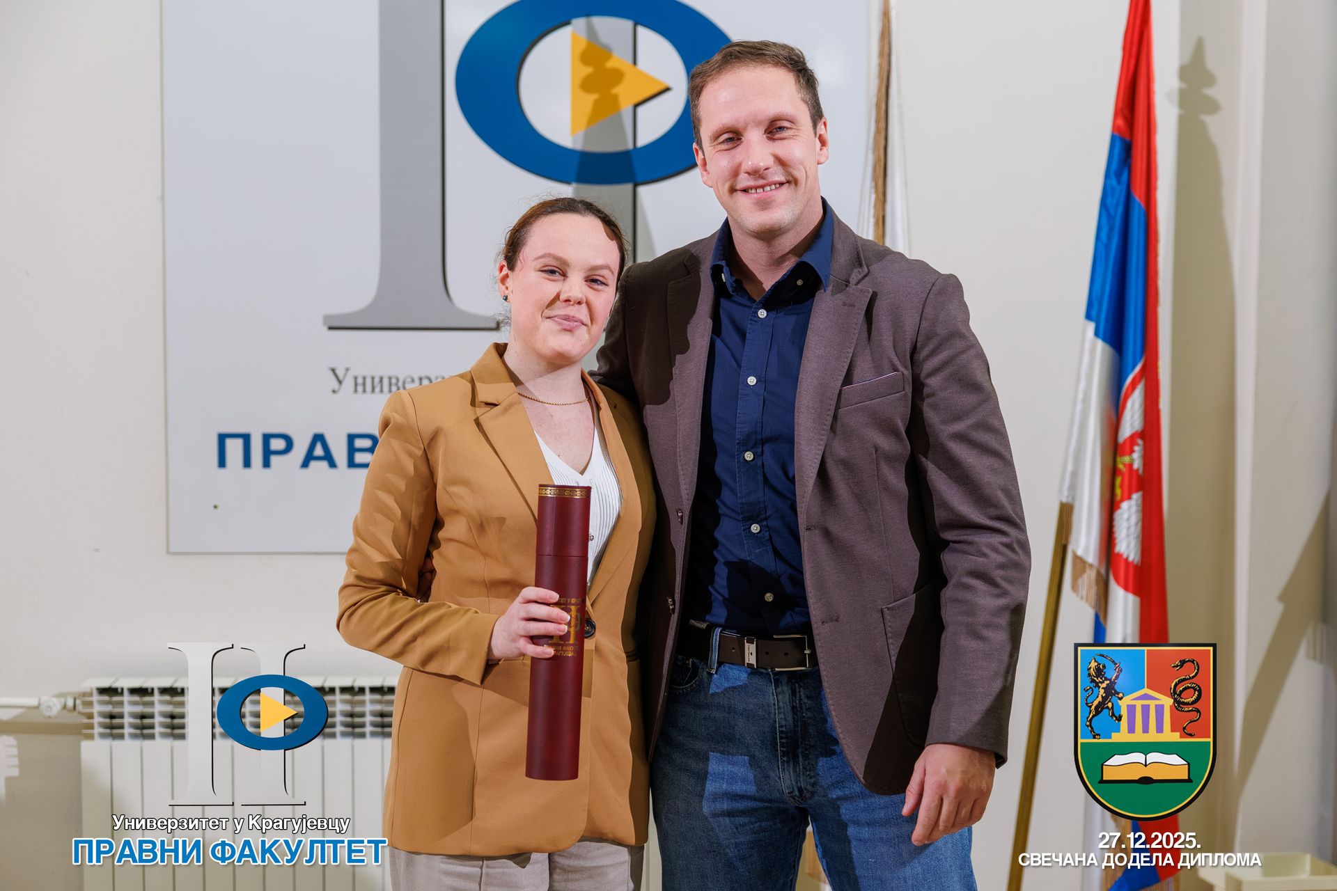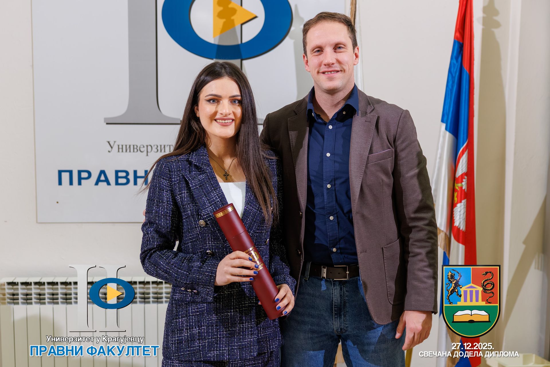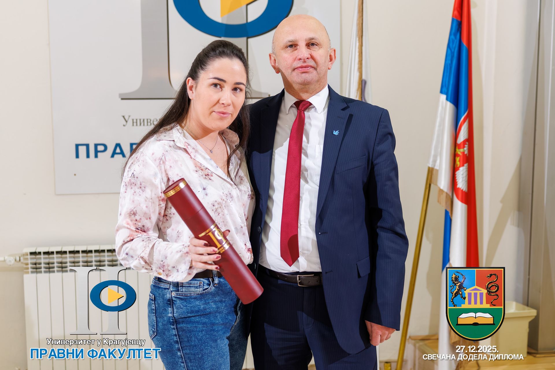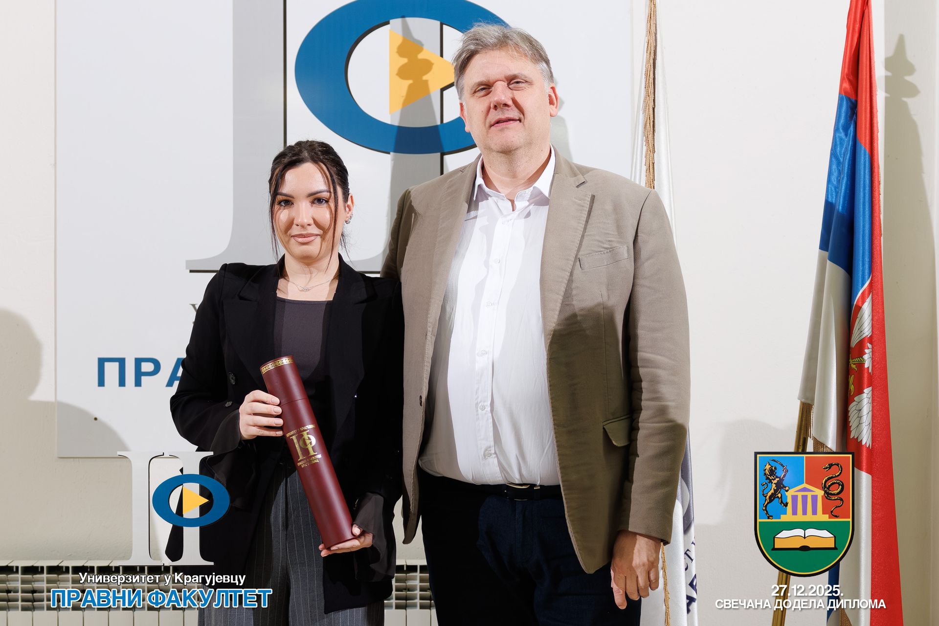 Дана 27. децембра 2025. године на Правном факултету Универзитета у Крагујевцу одржана је свечана додела диплома студентима који су успешно завршили основне или мастер академске студије у периоду од 1. јануара 2024. до 31. октобра 2025. године.