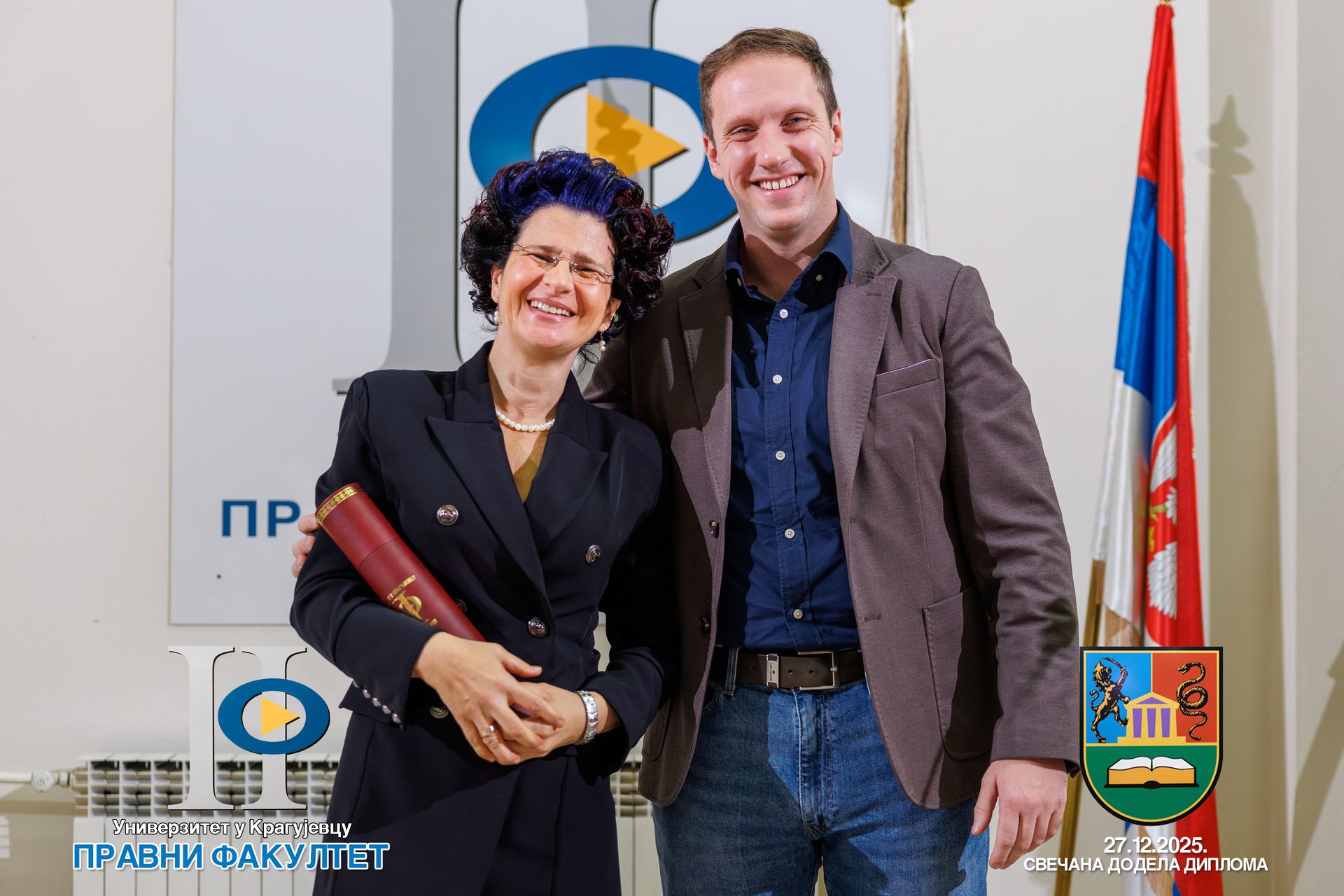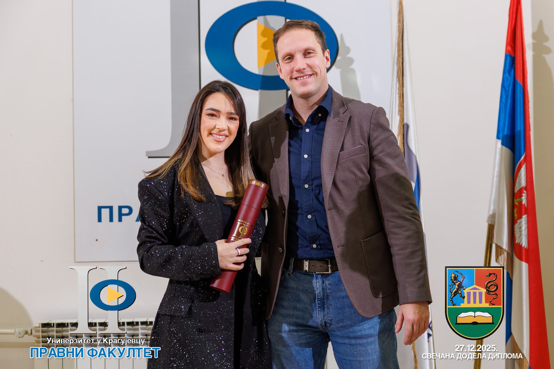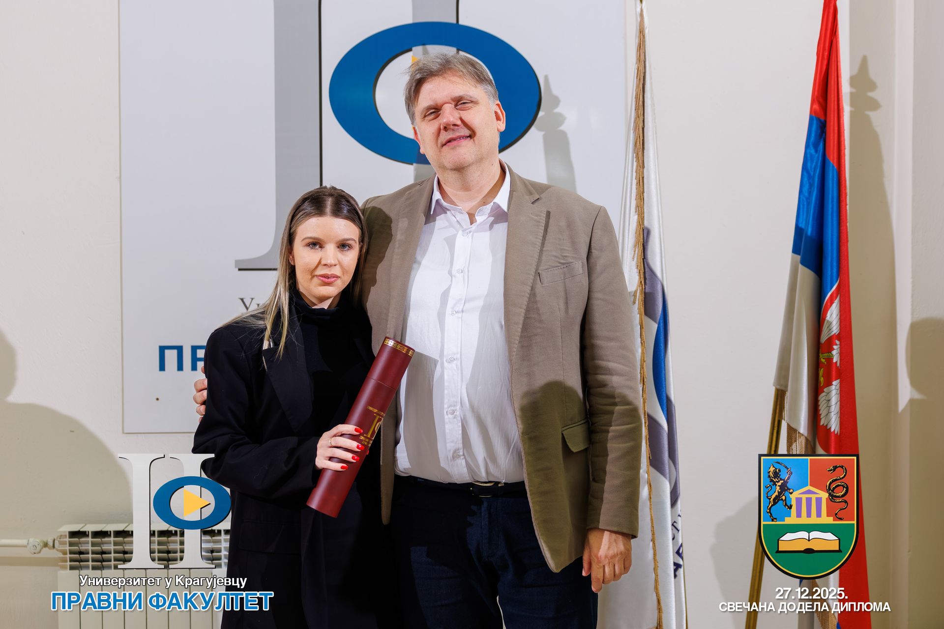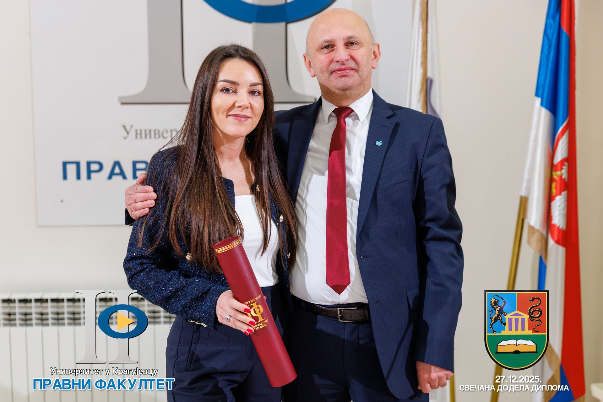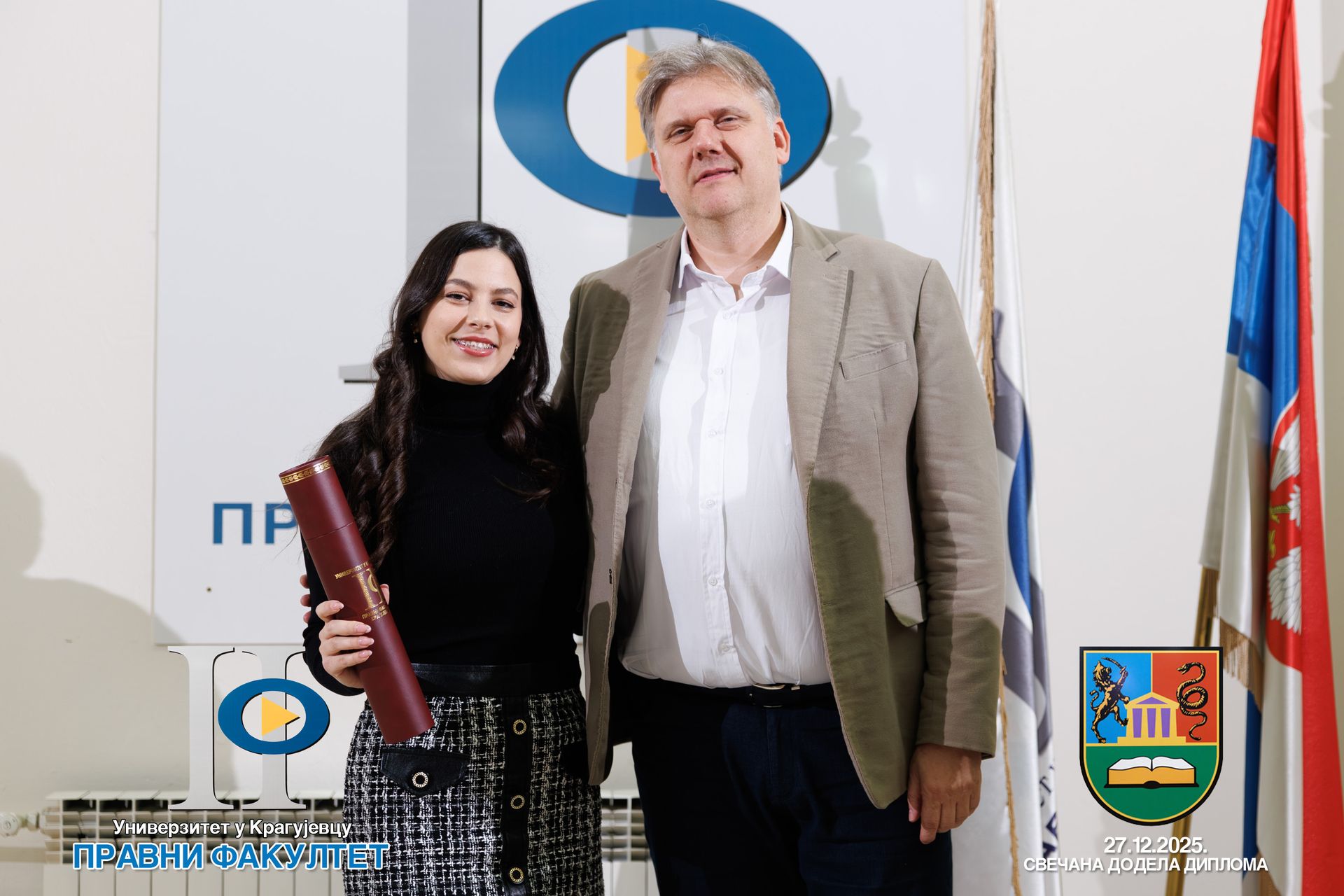 Дана 27. децембра 2025. године на Правном факултету Универзитета у Крагујевцу одржана је свечана додела диплома студентима који су успешно завршили основне или мастер академске студије у периоду од 1. јануара 2024. до 31. октобра 2025. године.