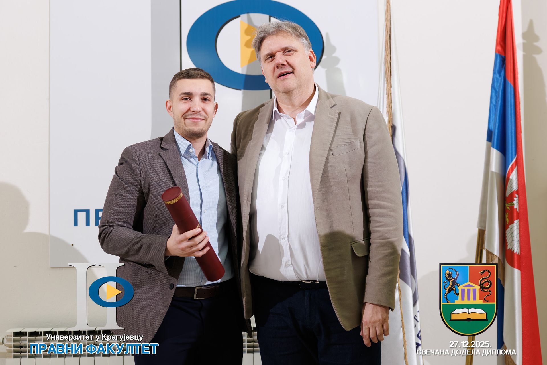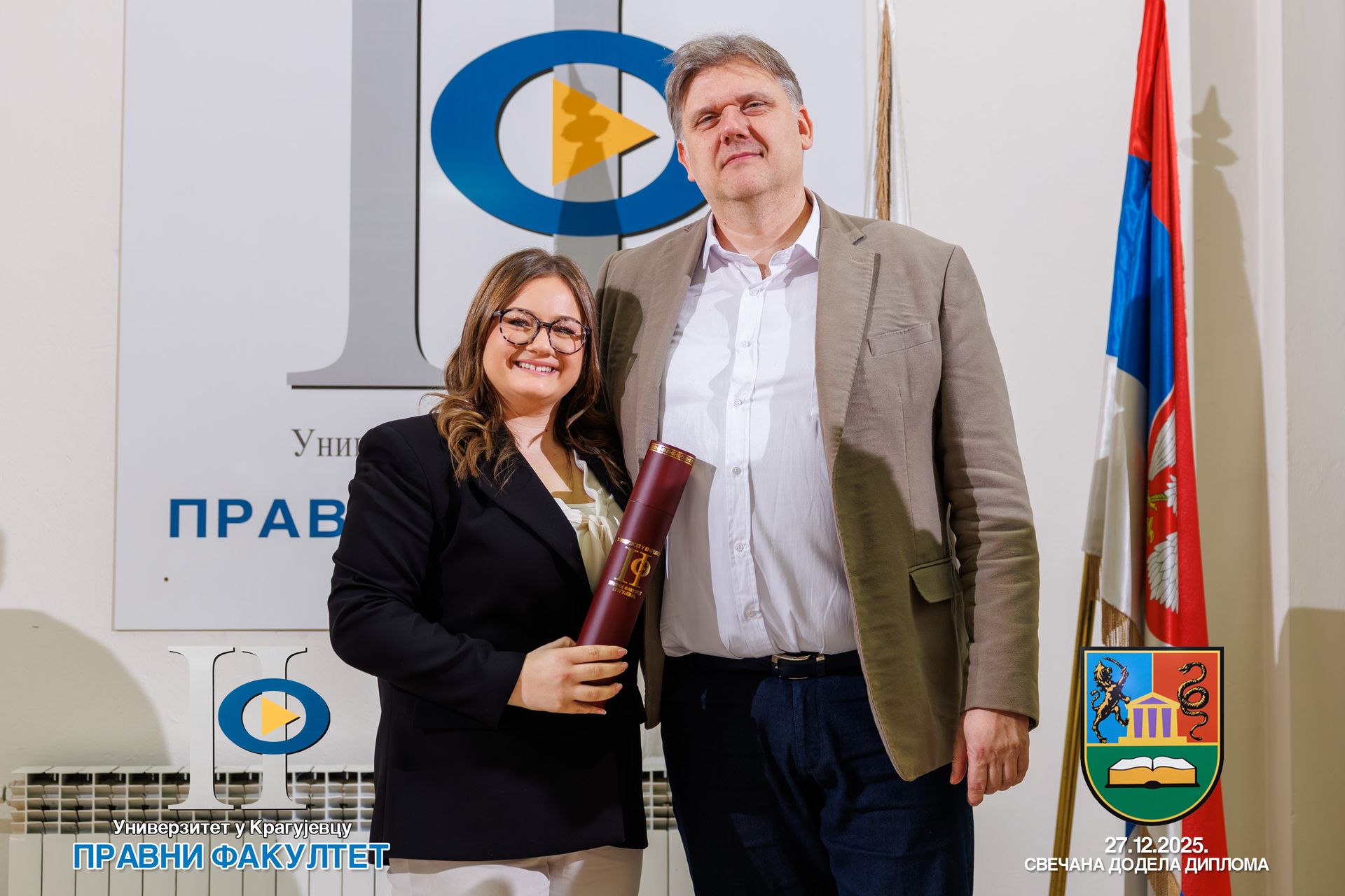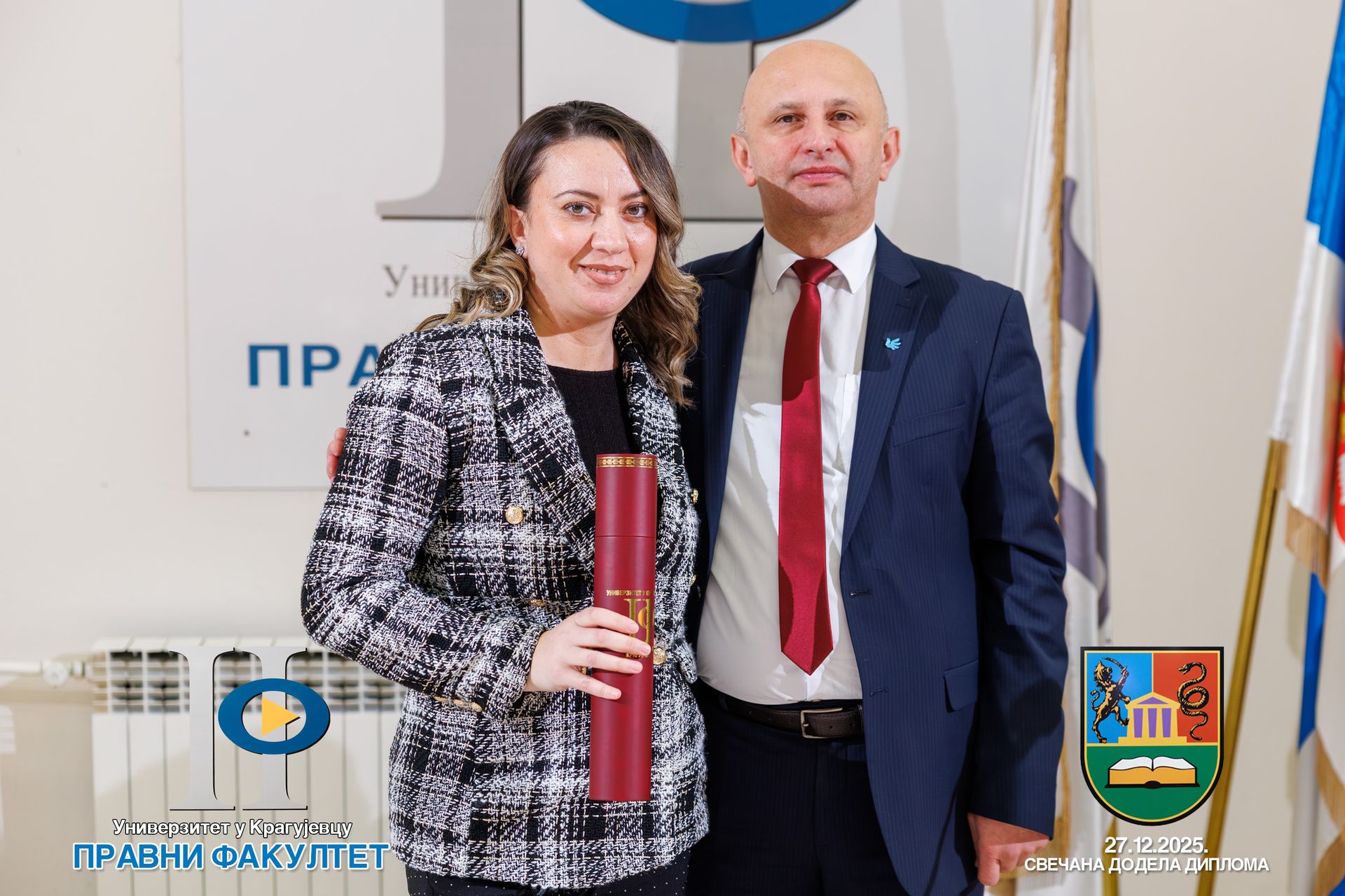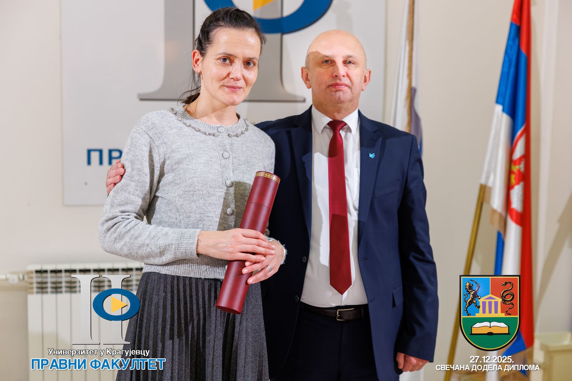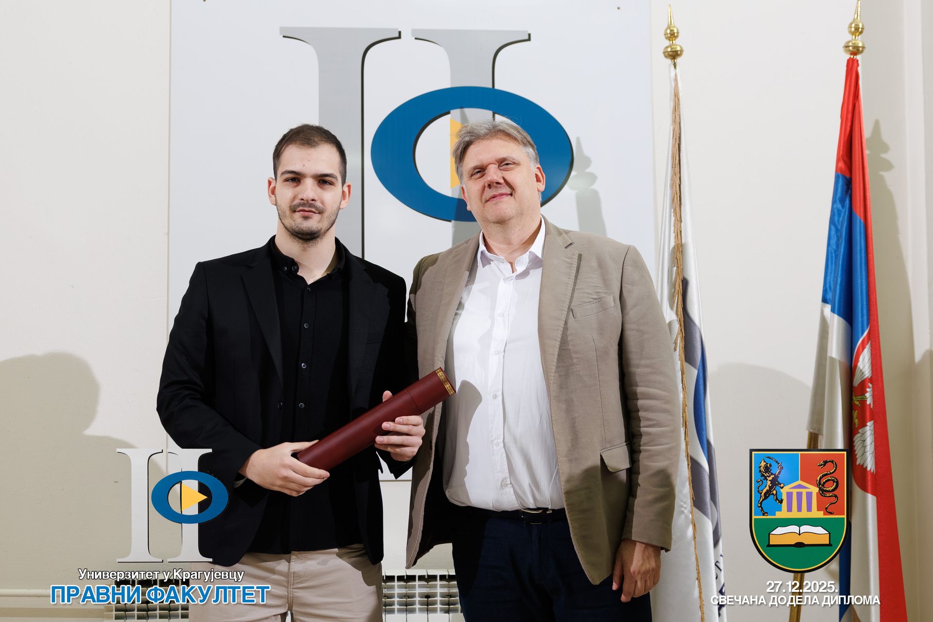 Дана 27. децембра 2025. године на Правном факултету Универзитета у Крагујевцу одржана је свечана додела диплома студентима који су успешно завршили основне или мастер академске студије у периоду од 1. јануара 2024. до 31. октобра 2025. године.