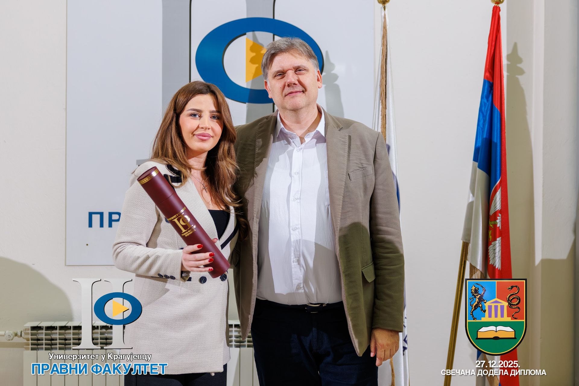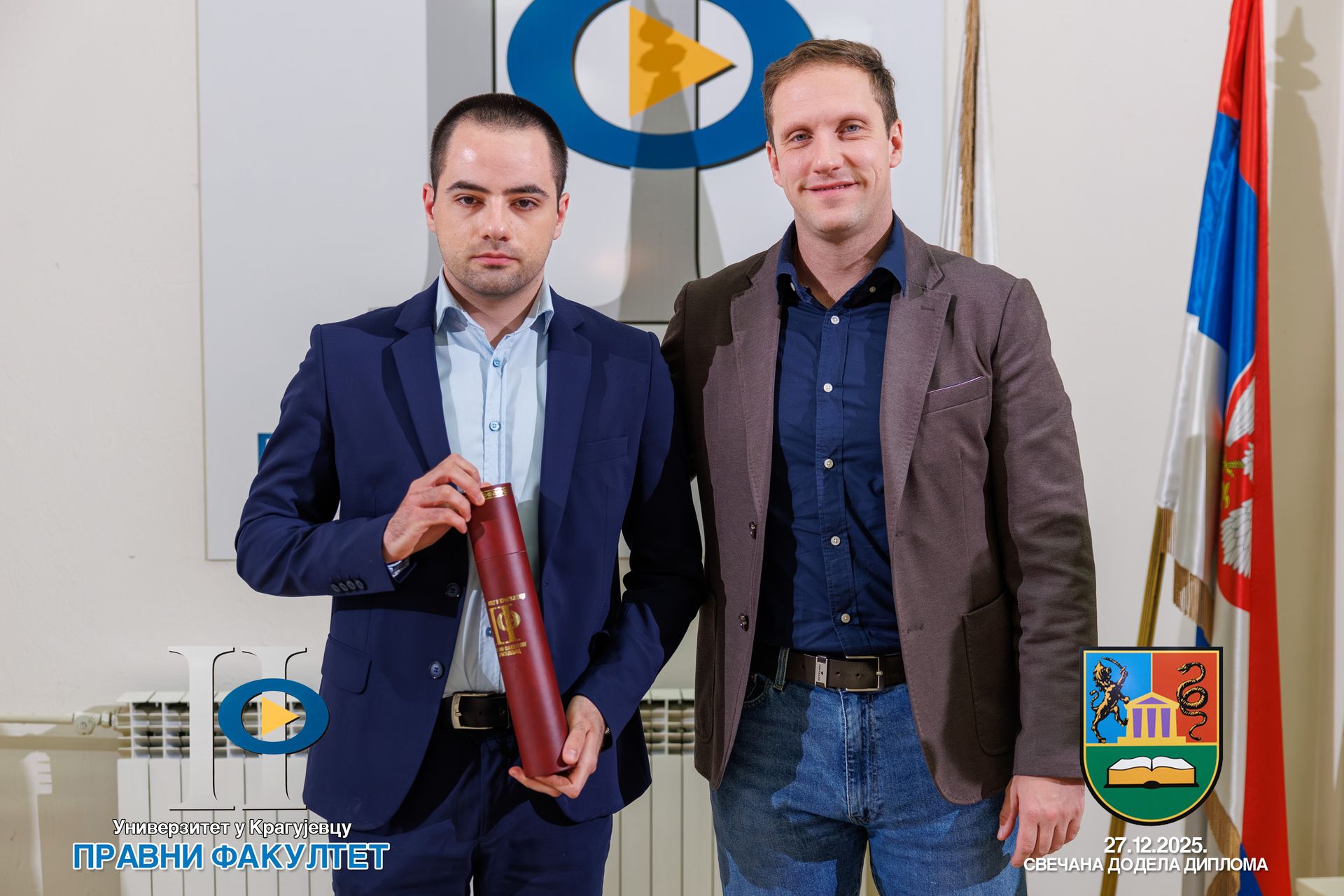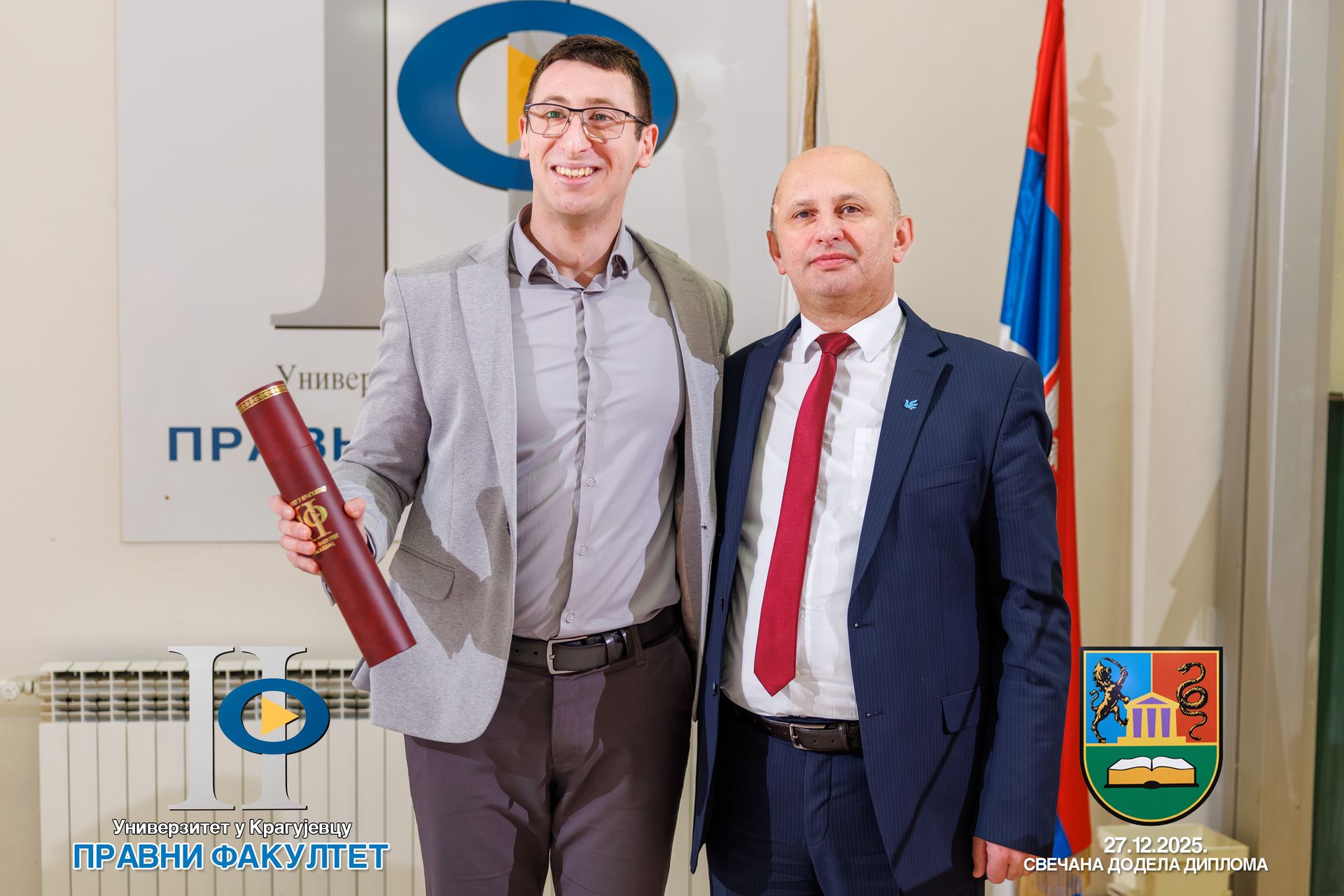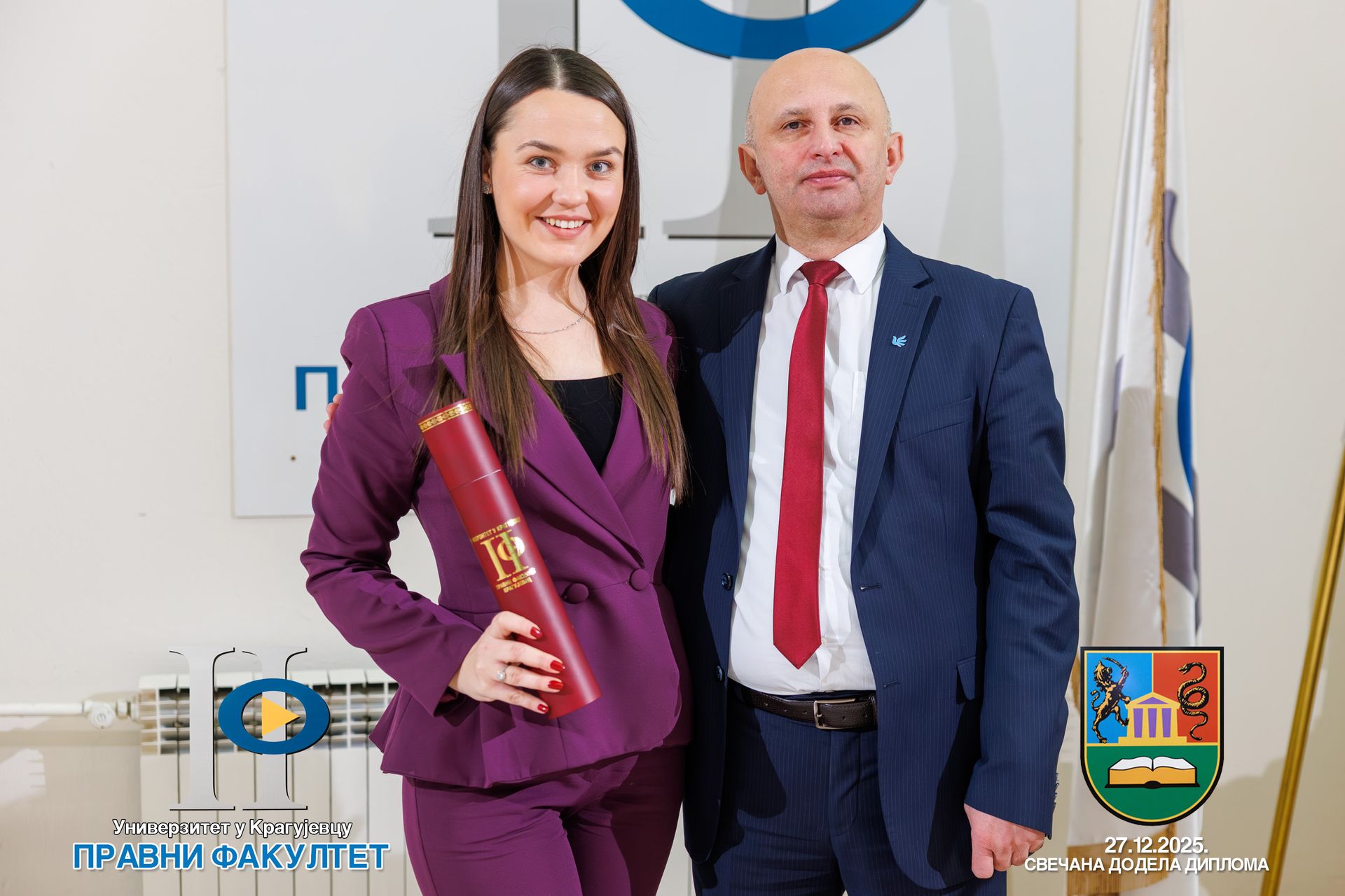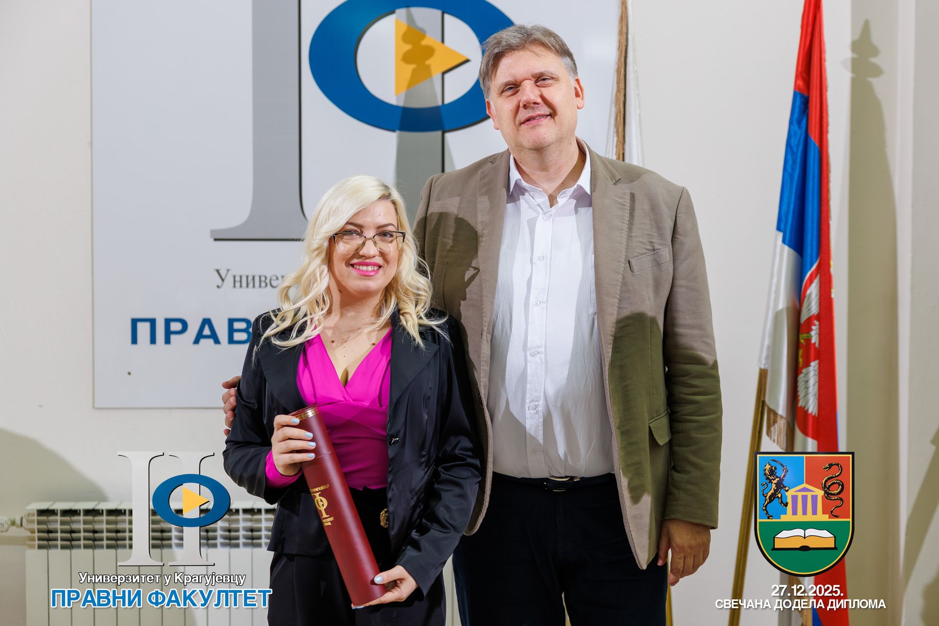 Дана 27. децембра 2025. године на Правном факултету Универзитета у Крагујевцу одржана је свечана додела диплома студентима који су успешно завршили основне или мастер академске студије у периоду од 1. јануара 2024. до 31. октобра 2025. године.