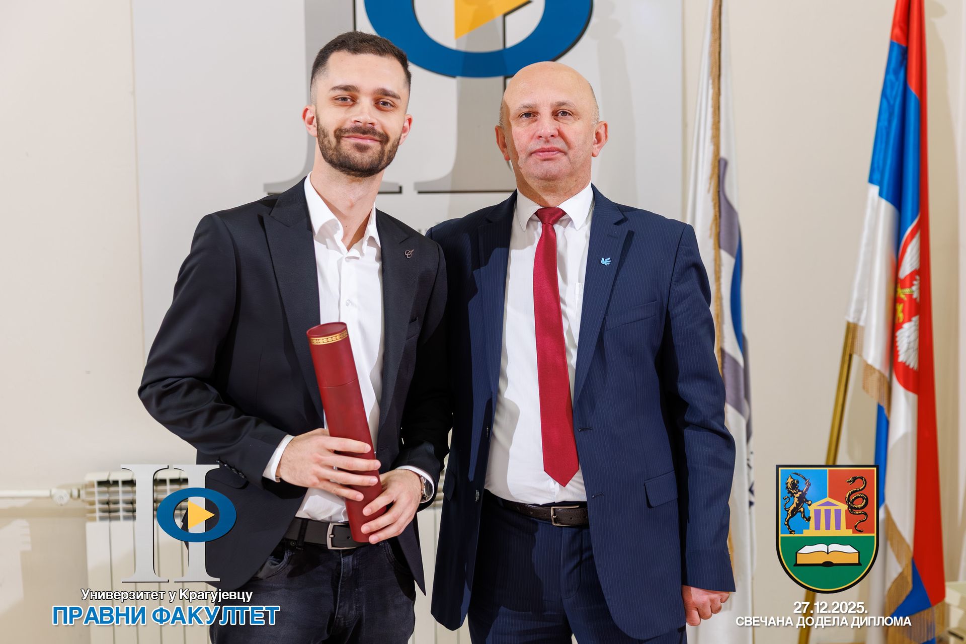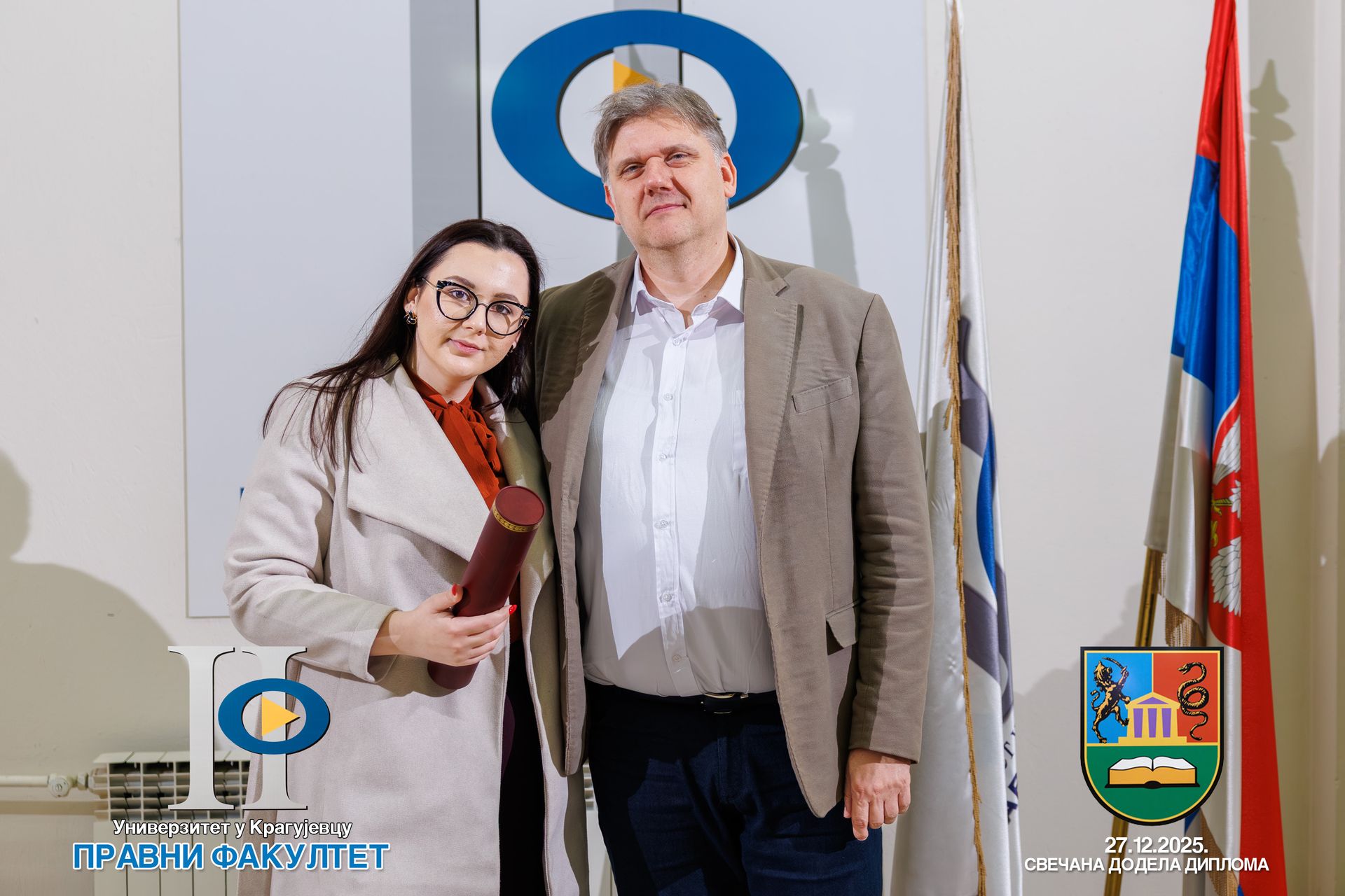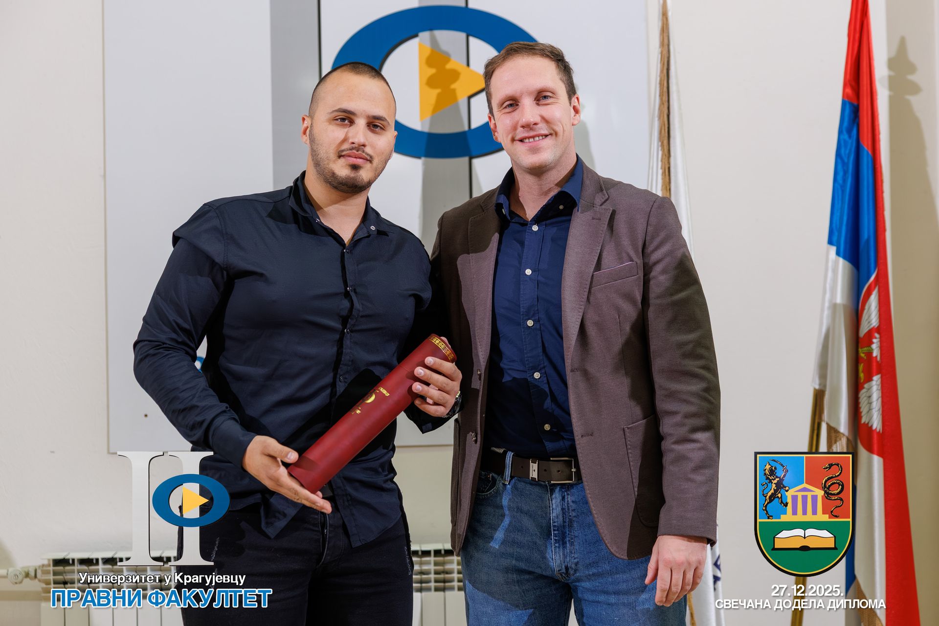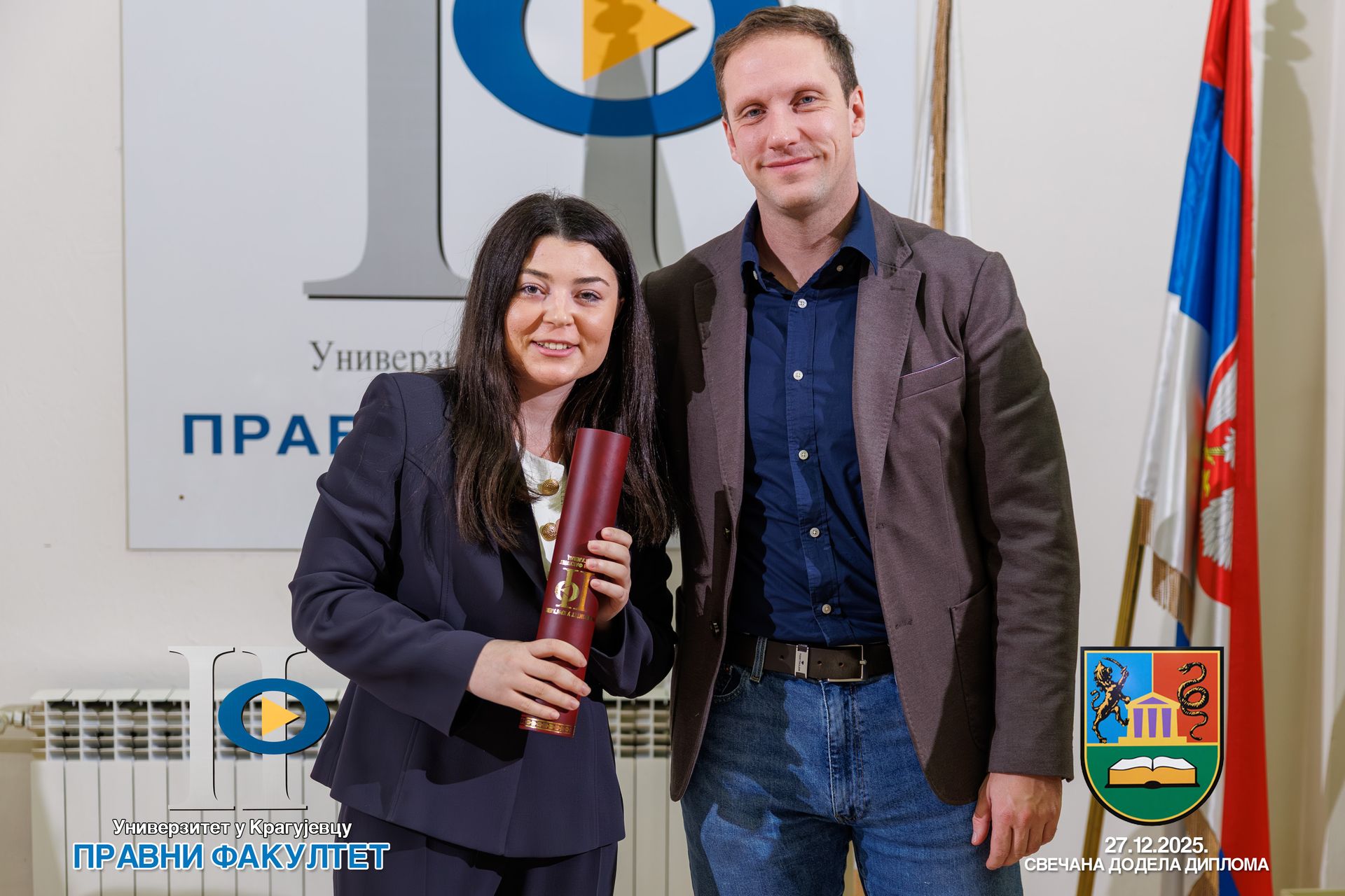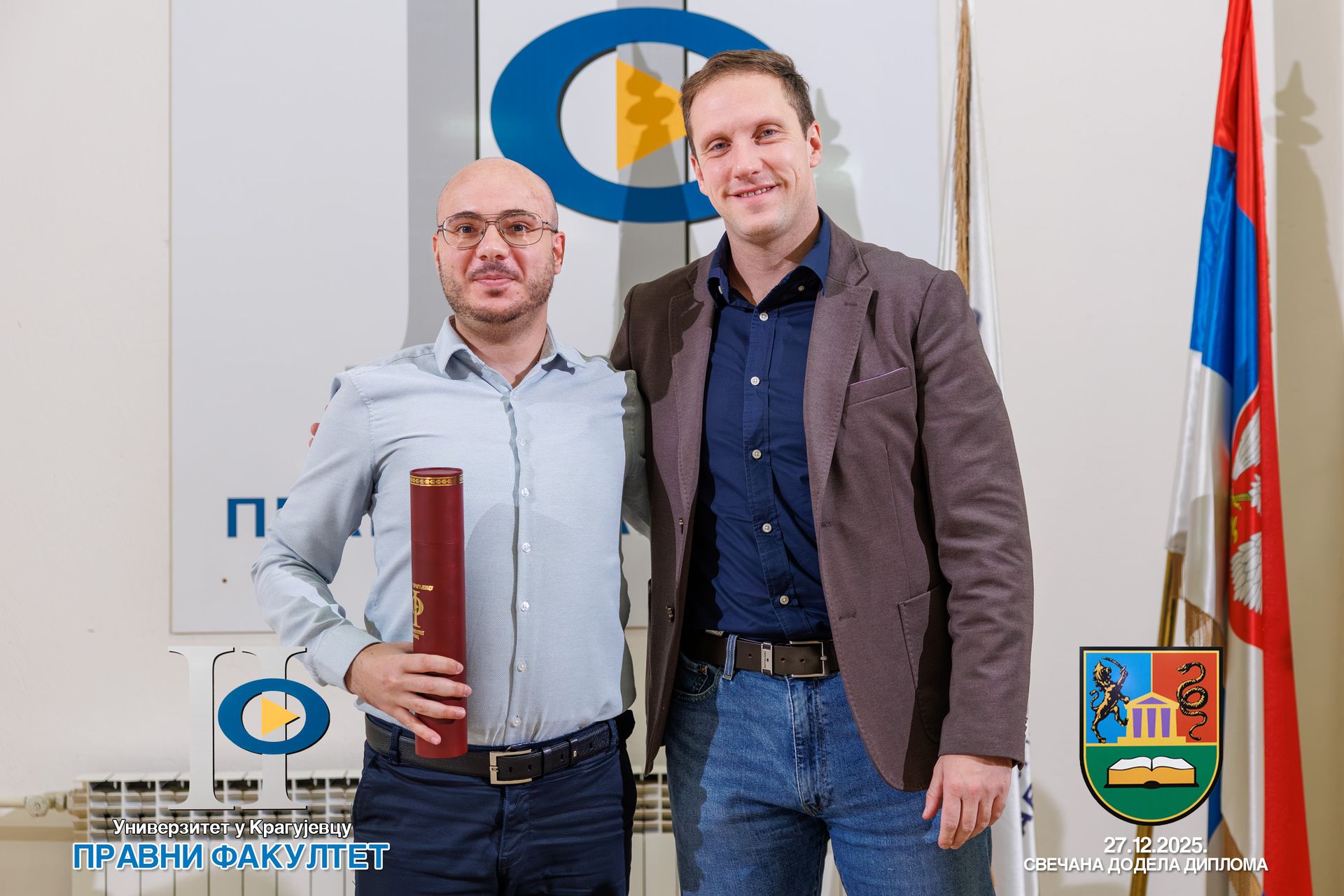 Дана 27. децембра 2025. године на Правном факултету Универзитета у Крагујевцу одржана је свечана додела диплома студентима који су успешно завршили основне или мастер академске студије у периоду од 1. јануара 2024. до 31. октобра 2025. године.