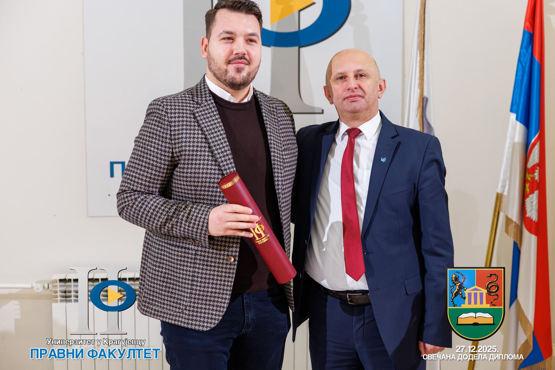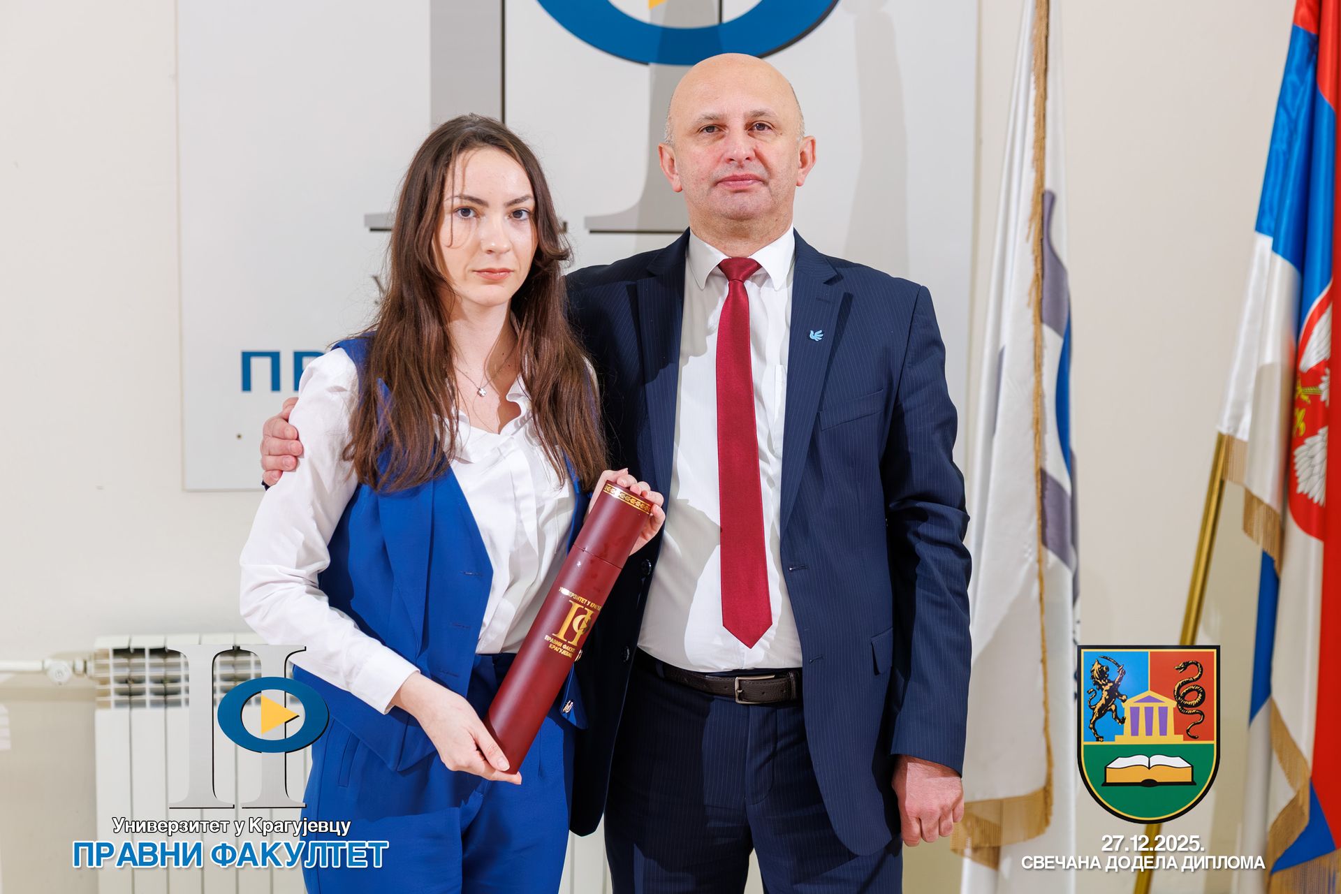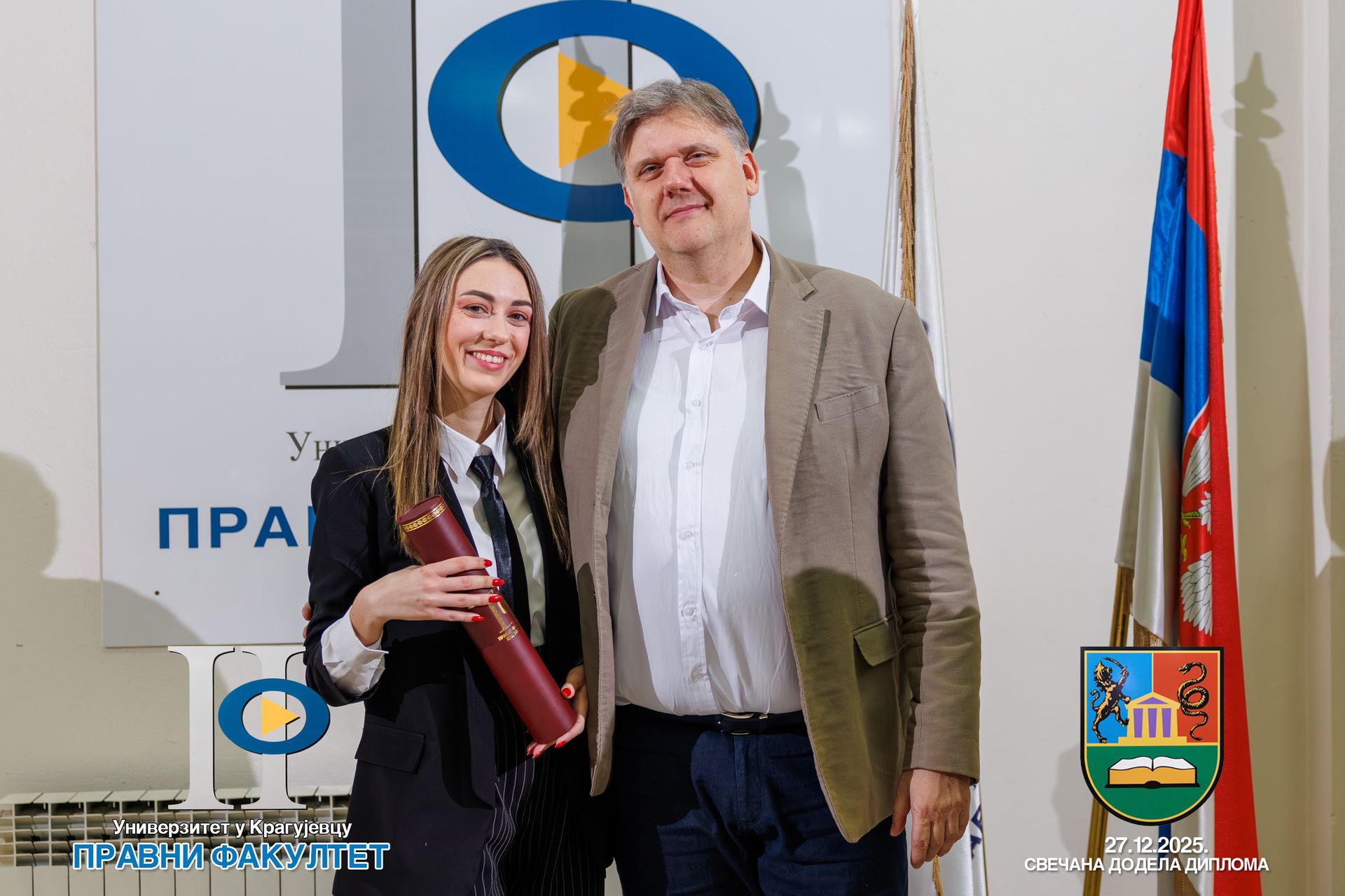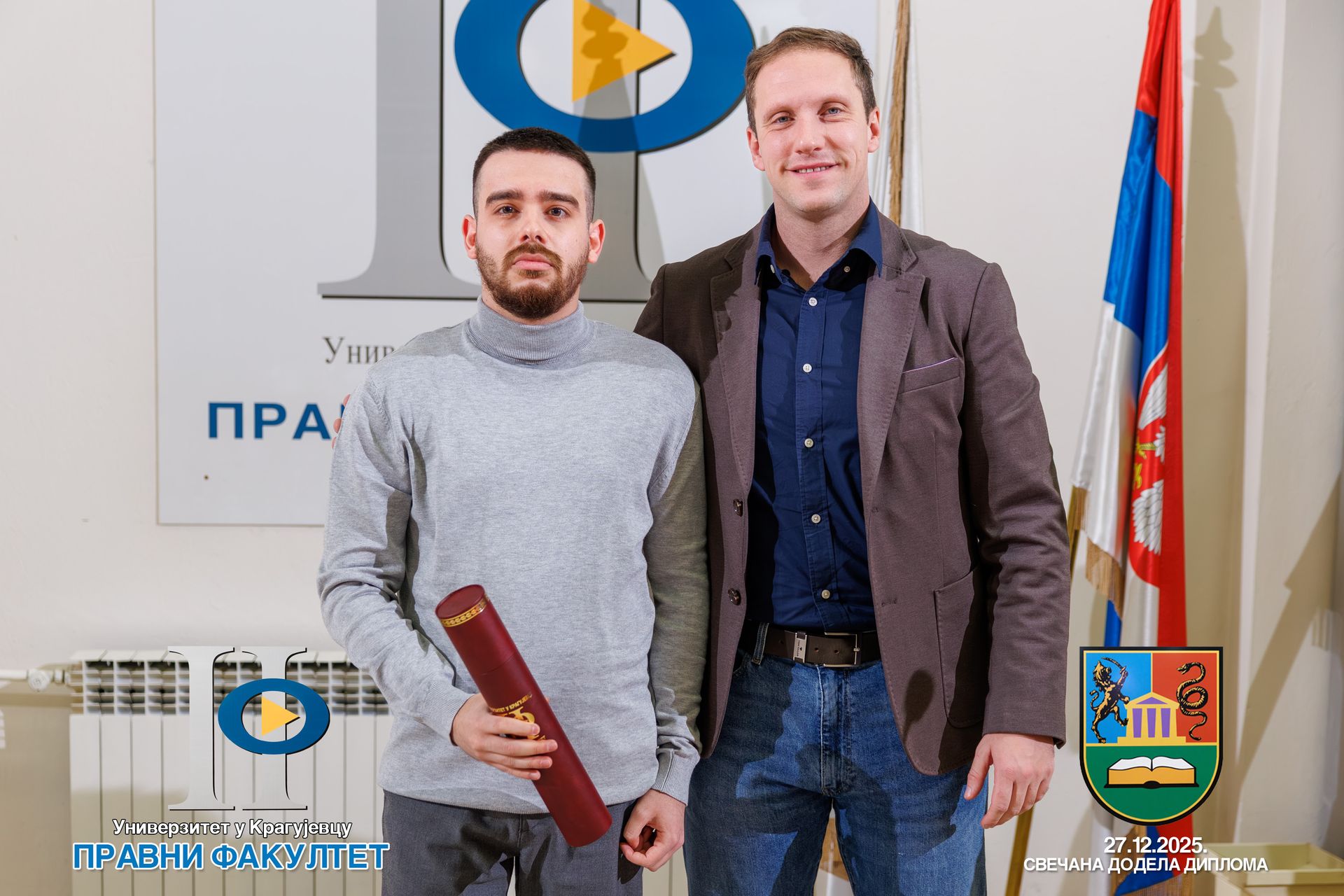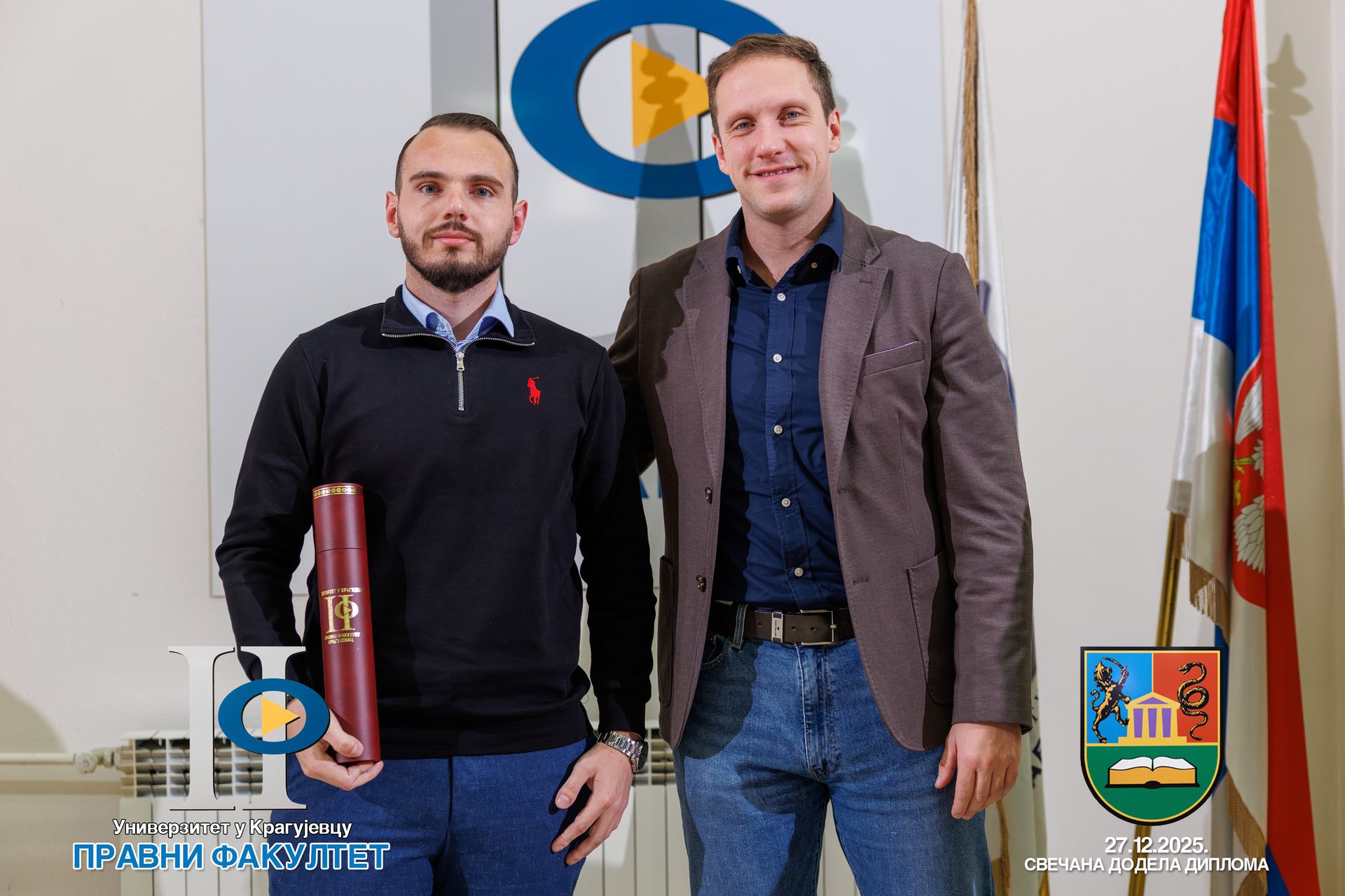 Дана 27. децембра 2025. године на Правном факултету Универзитета у Крагујевцу одржана је свечана додела диплома студентима који су успешно завршили основне или мастер академске студије у периоду од 1. јануара 2024. до 31. октобра 2025. године.