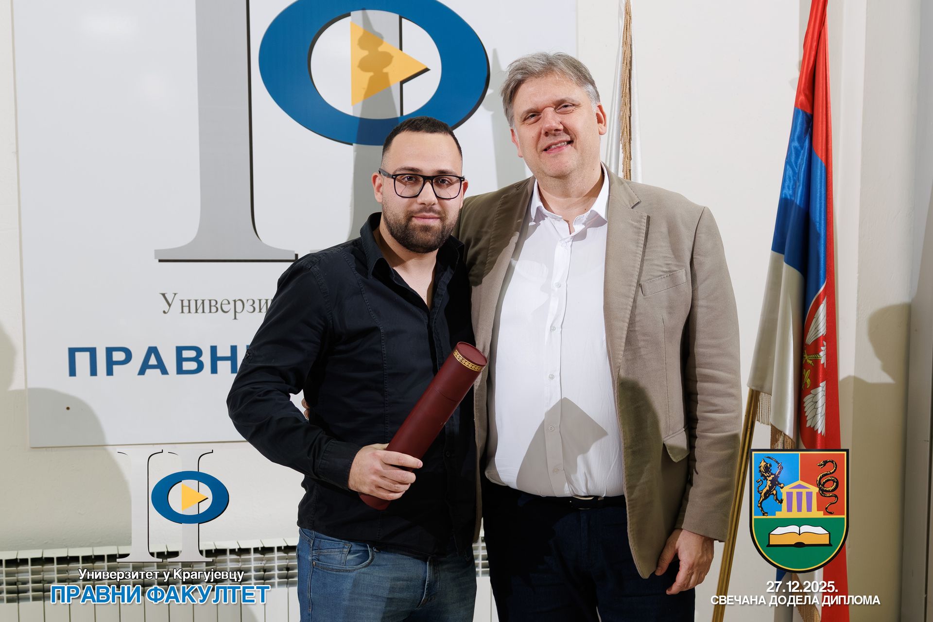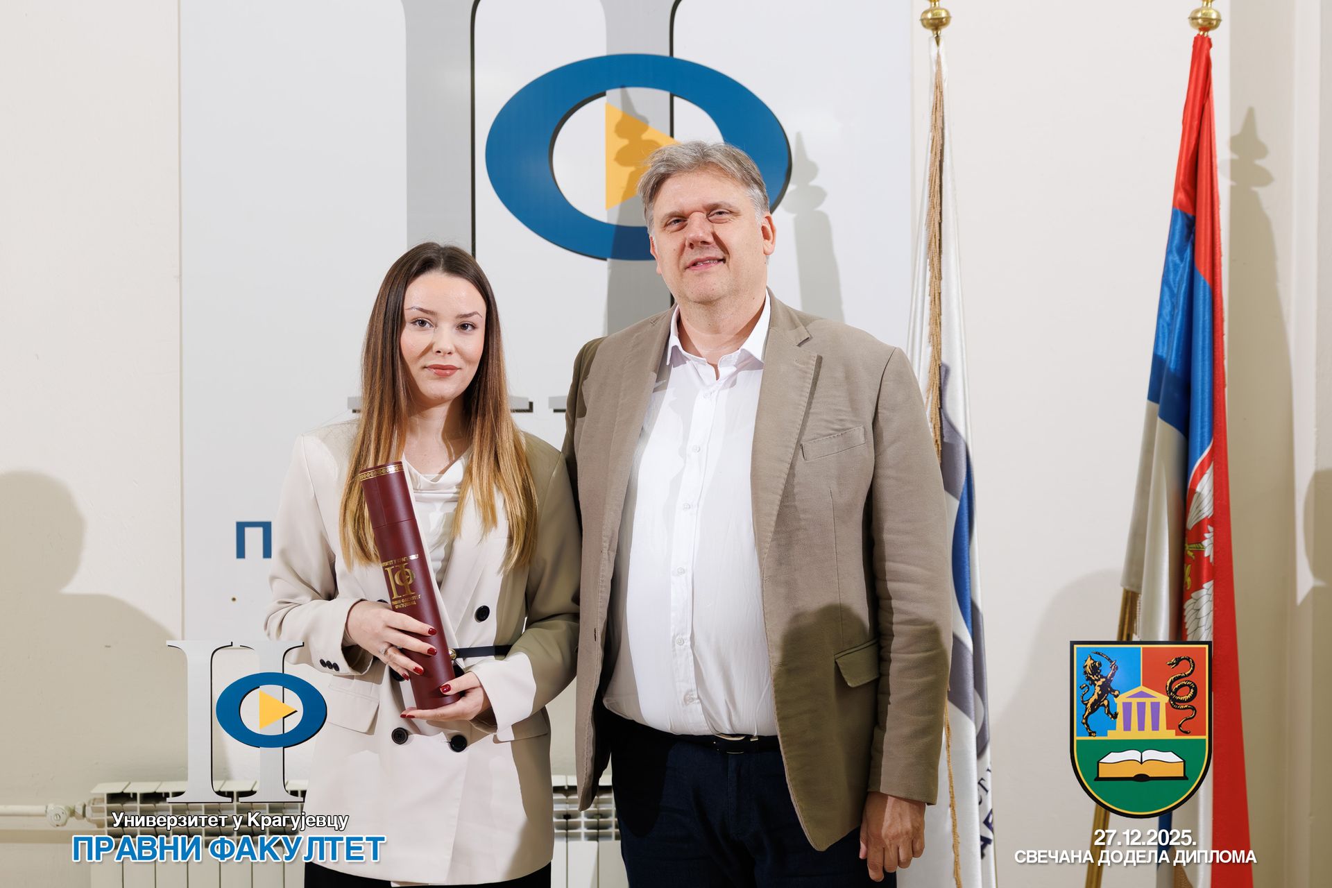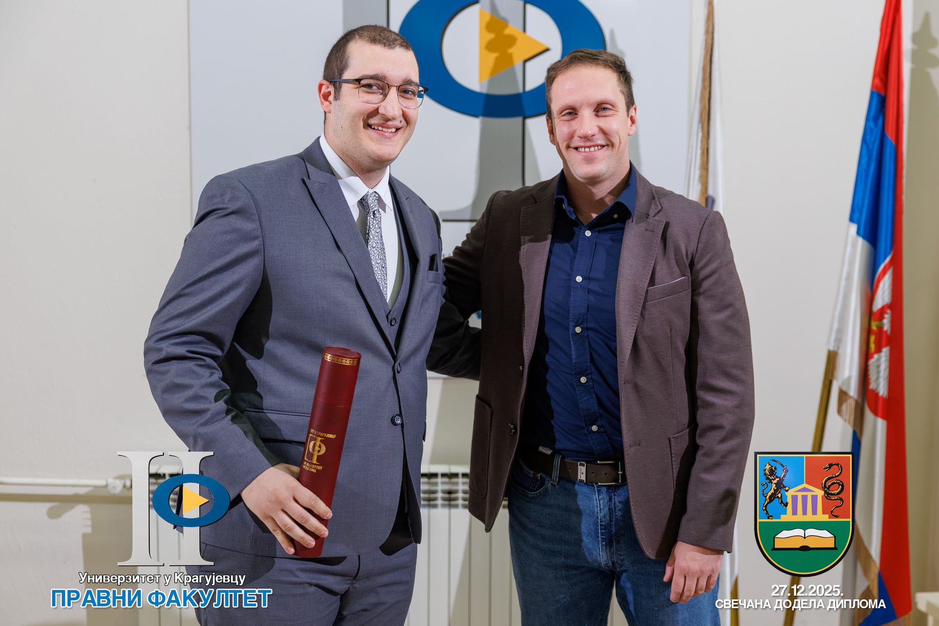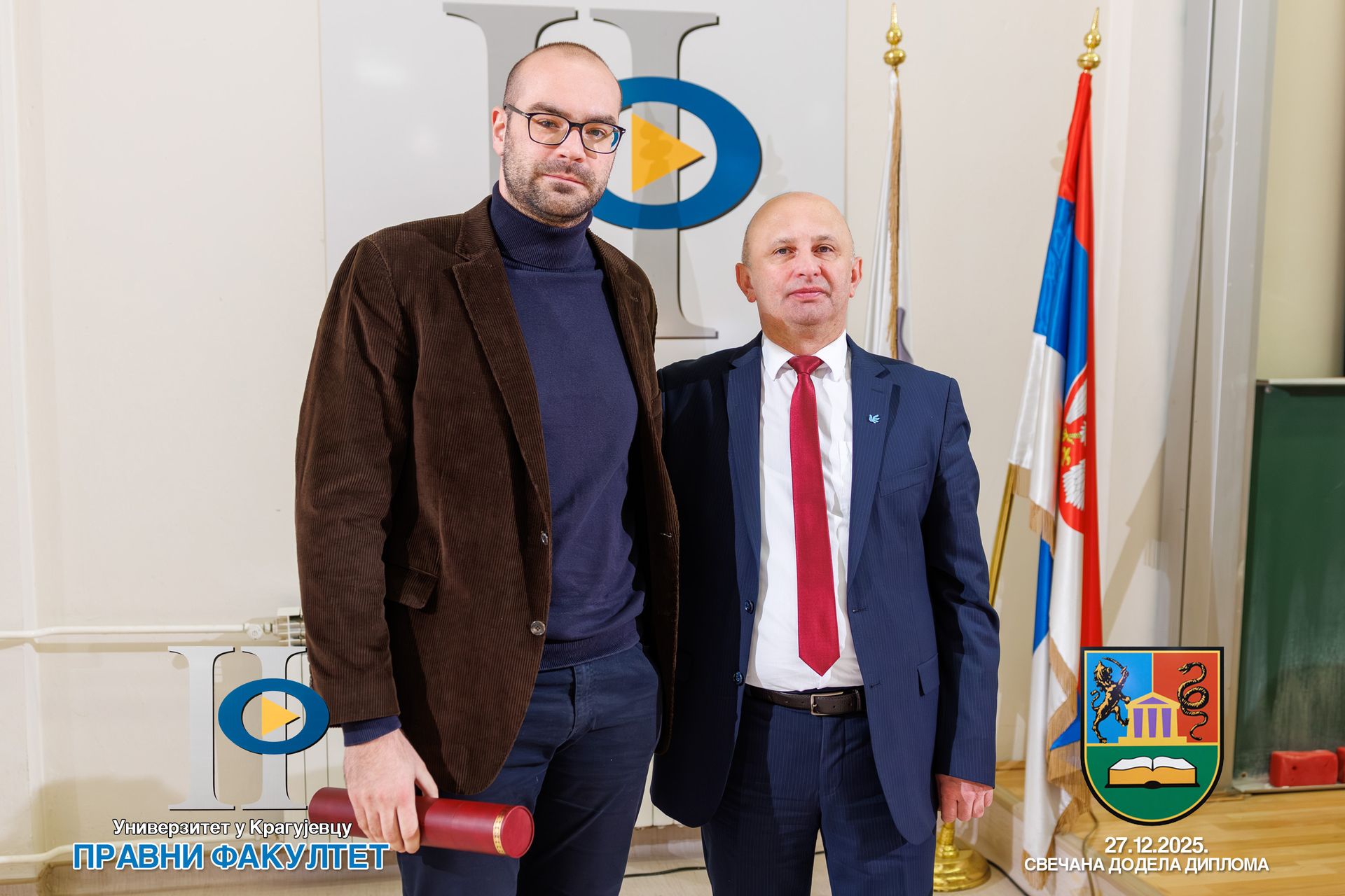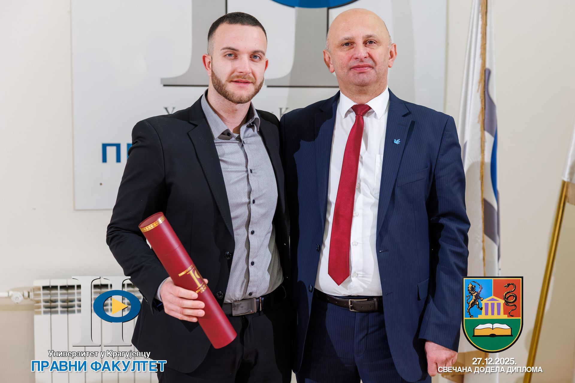 Дана 27. децембра 2025. године на Правном факултету Универзитета у Крагујевцу одржана је свечана додела диплома студентима који су успешно завршили основне или мастер академске студије у периоду од 1. јануара 2024. до 31. октобра 2025. године.
