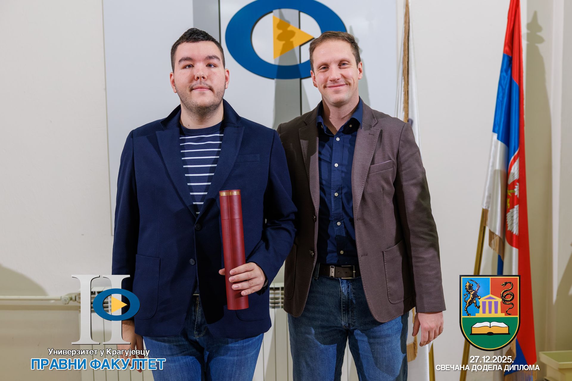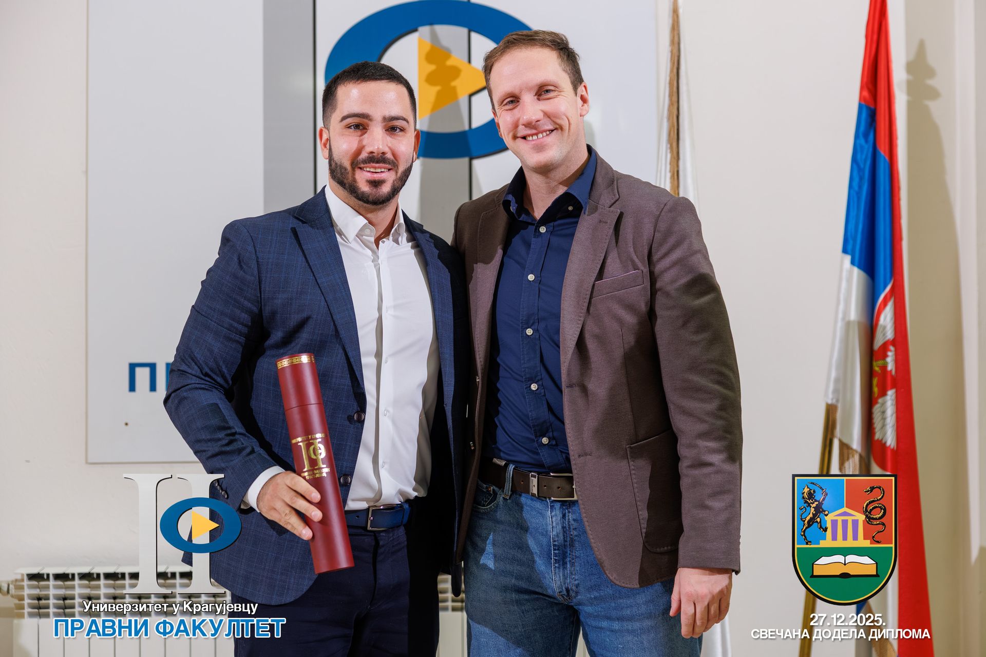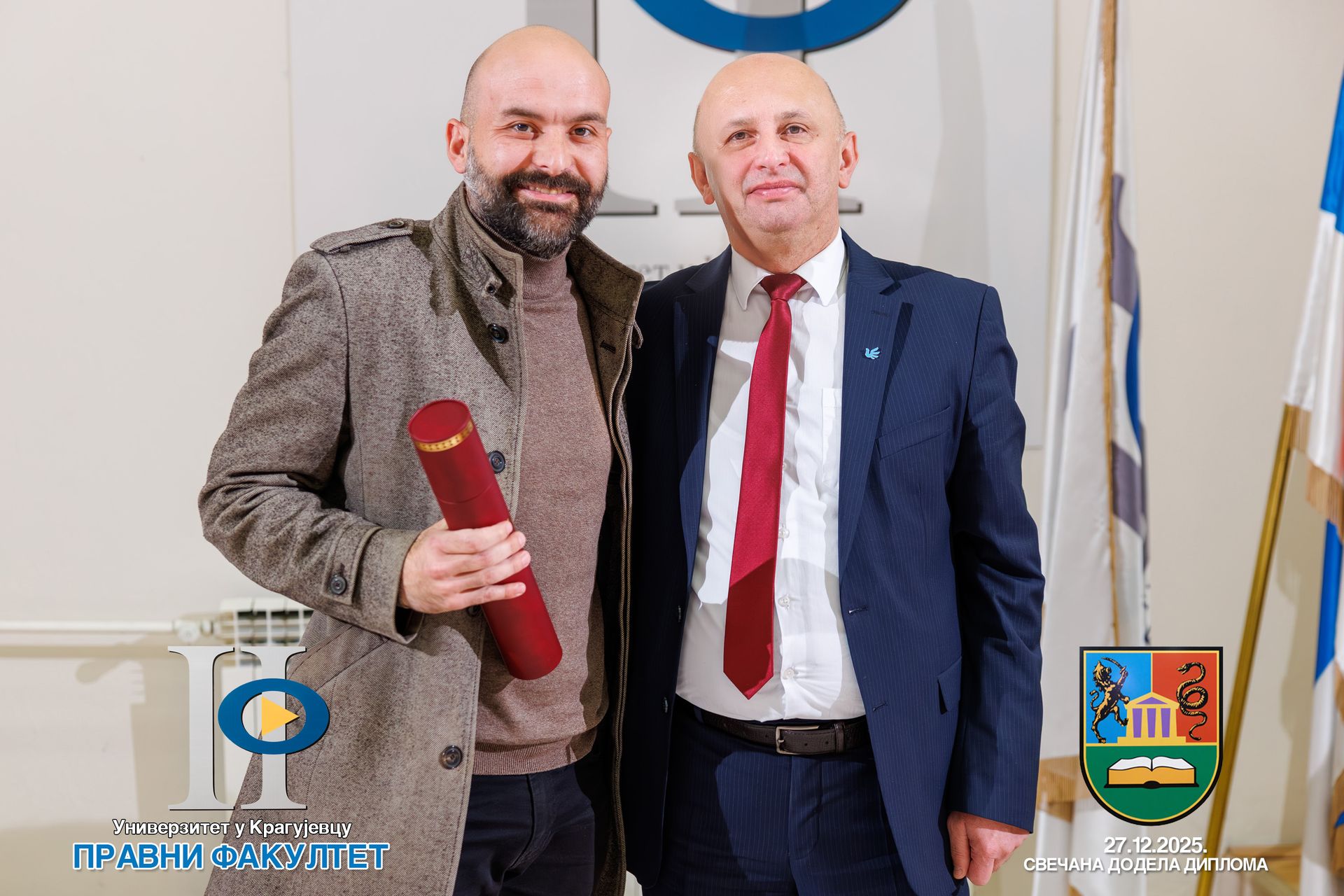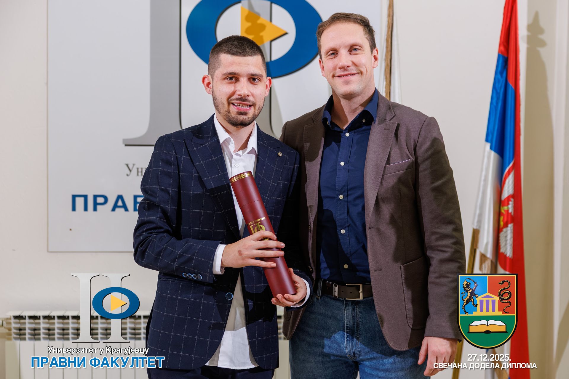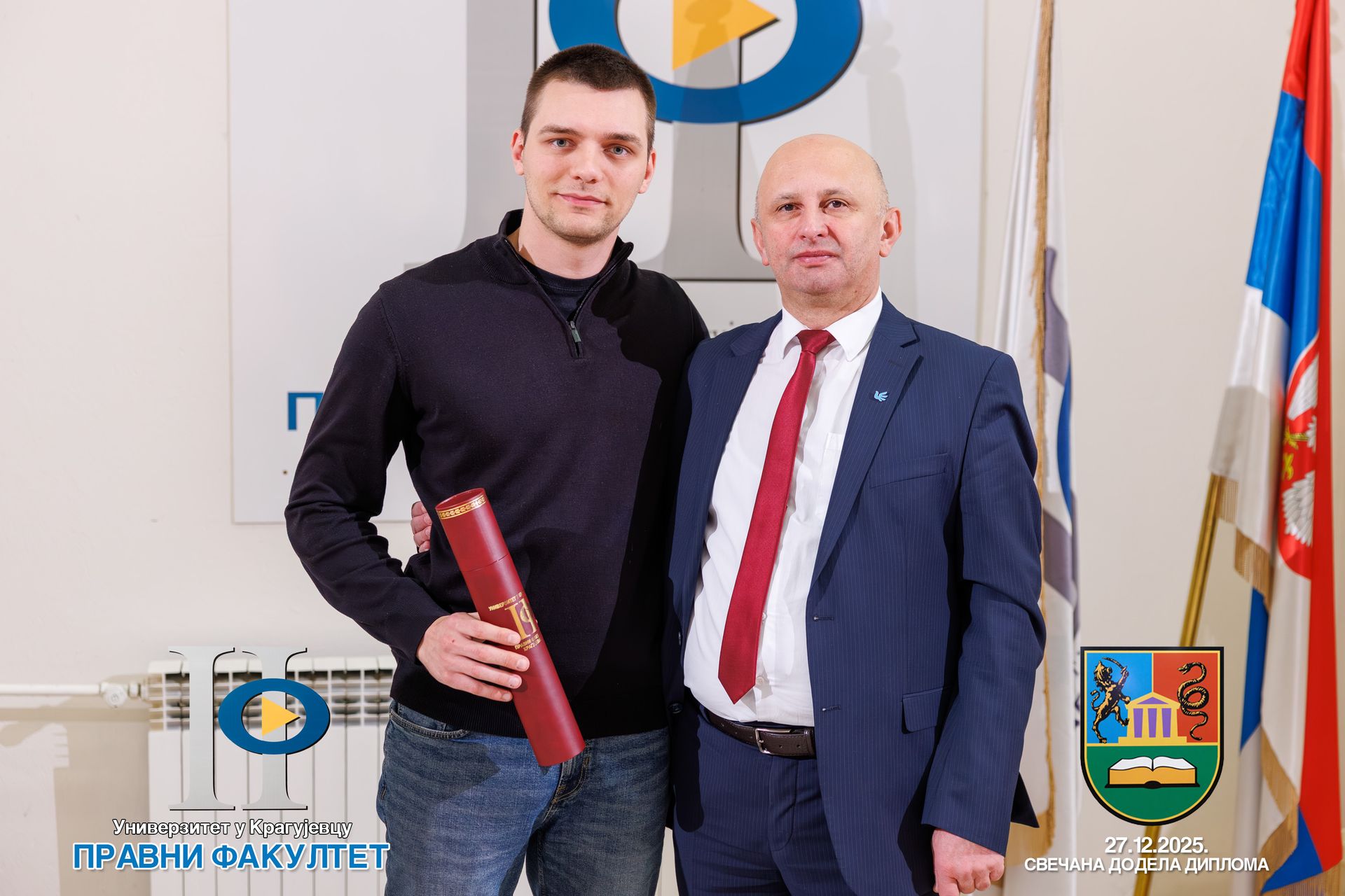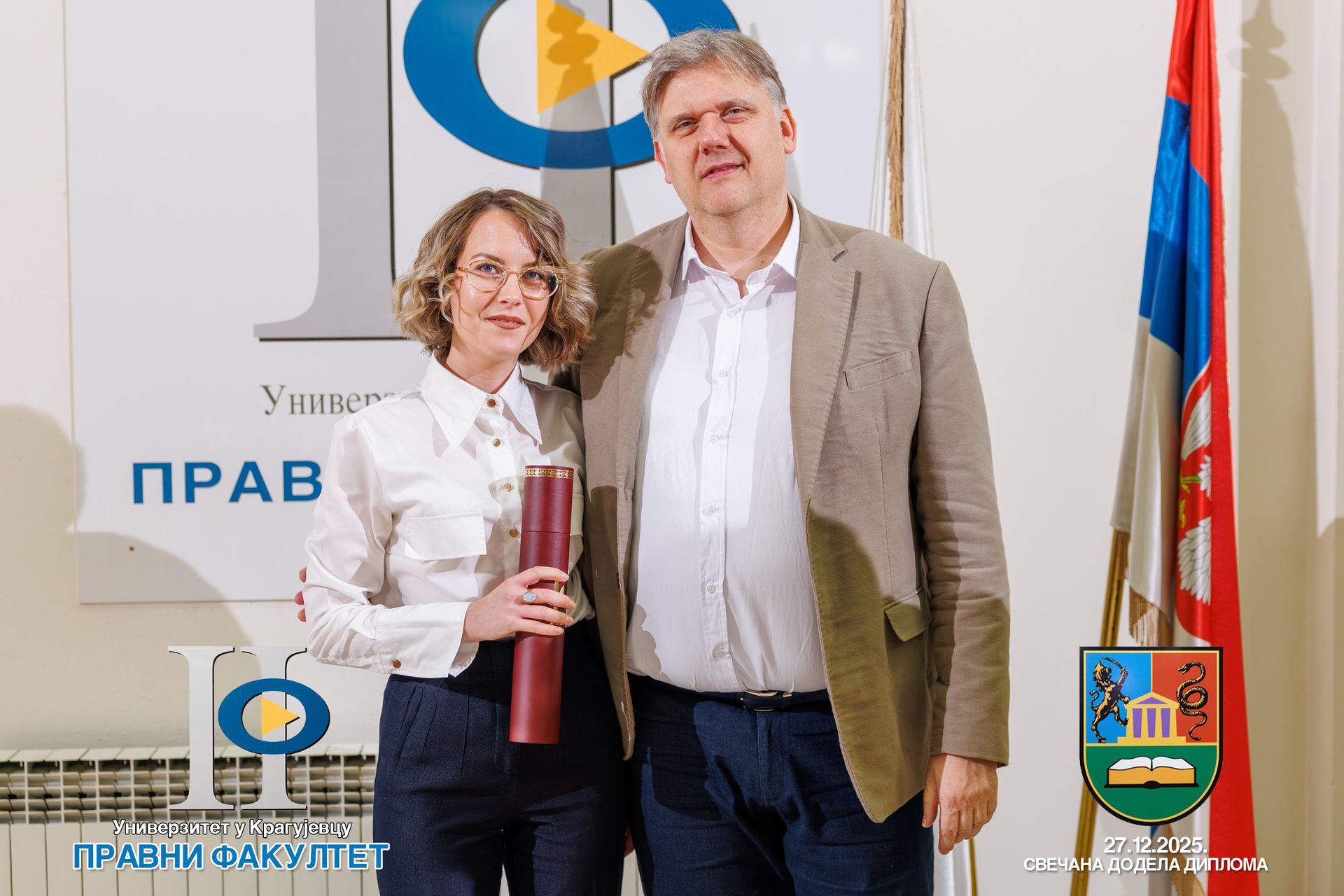 Дана 27. децембра 2025. године на Правном факултету Универзитета у Крагујевцу одржана је свечана додела диплома студентима који су успешно завршили основне или мастер академске студије у периоду од 1. јануара 2024. до 31. октобра 2025. године.