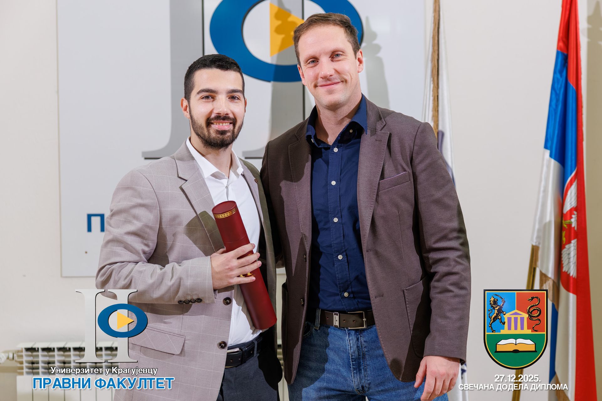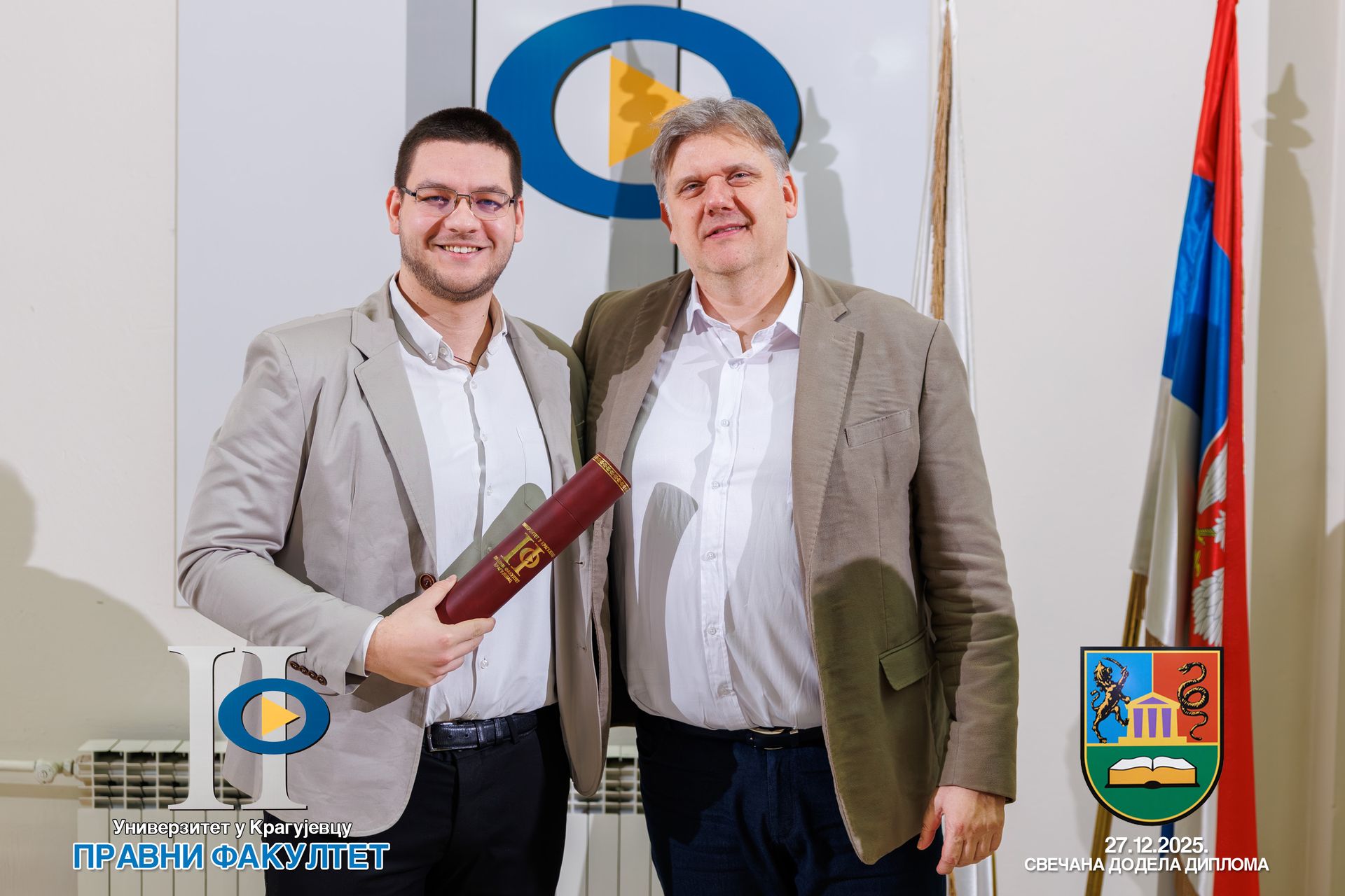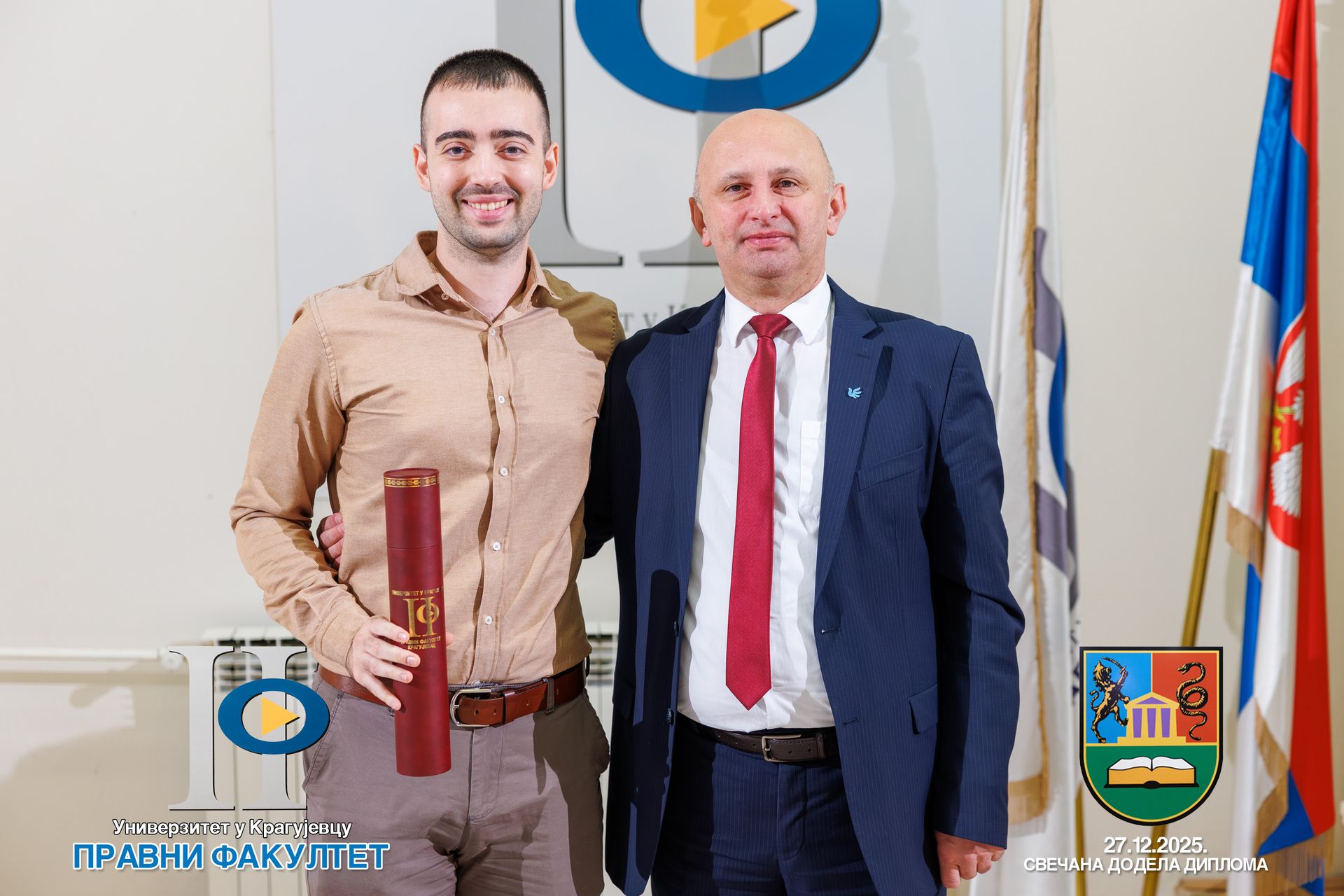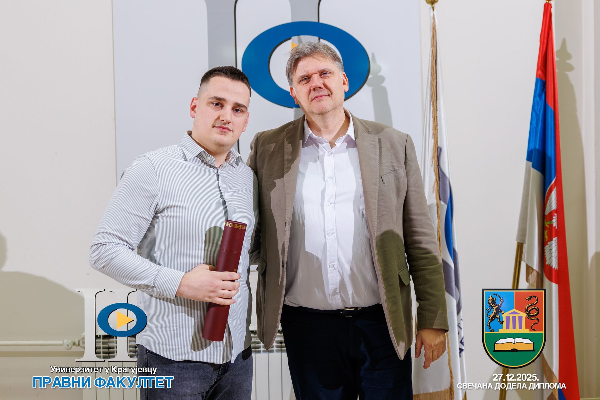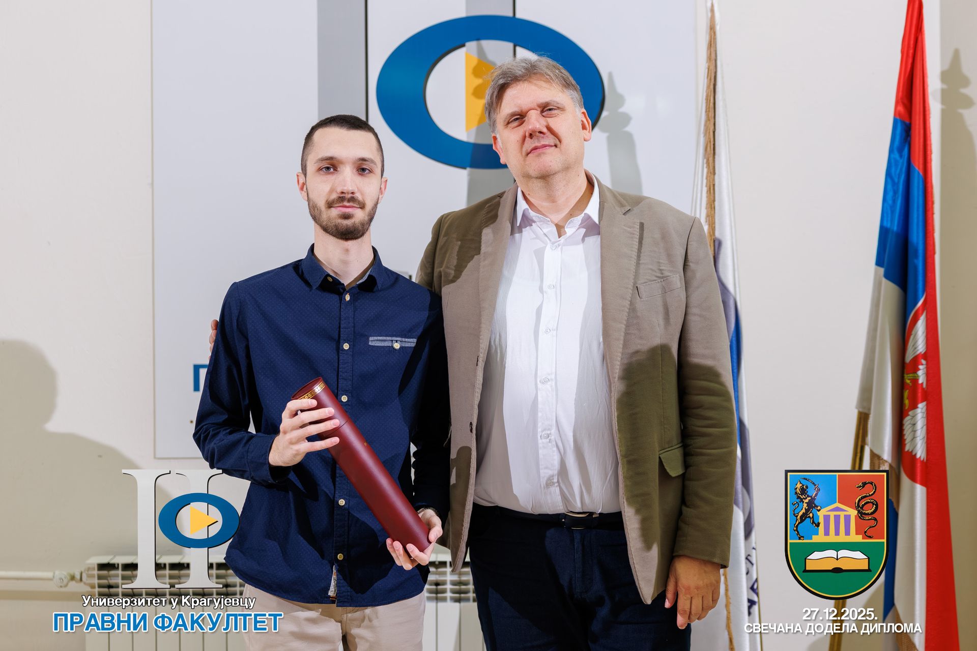 Дана 27. децембра 2025. године на Правном факултету Универзитета у Крагујевцу одржана је свечана додела диплома студентима који су успешно завршили основне или мастер академске студије у периоду од 1. јануара 2024. до 31. октобра 2025. године.
