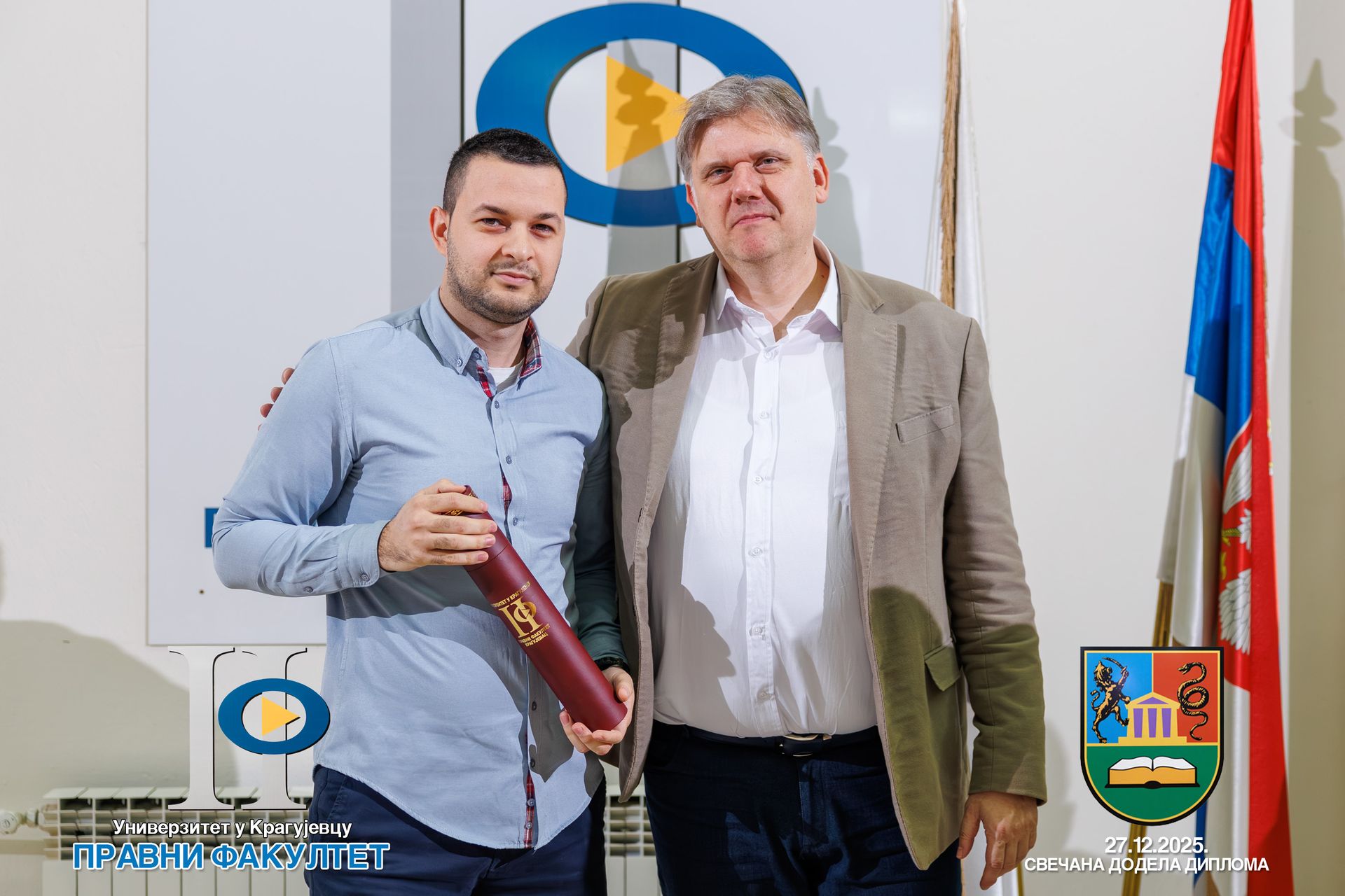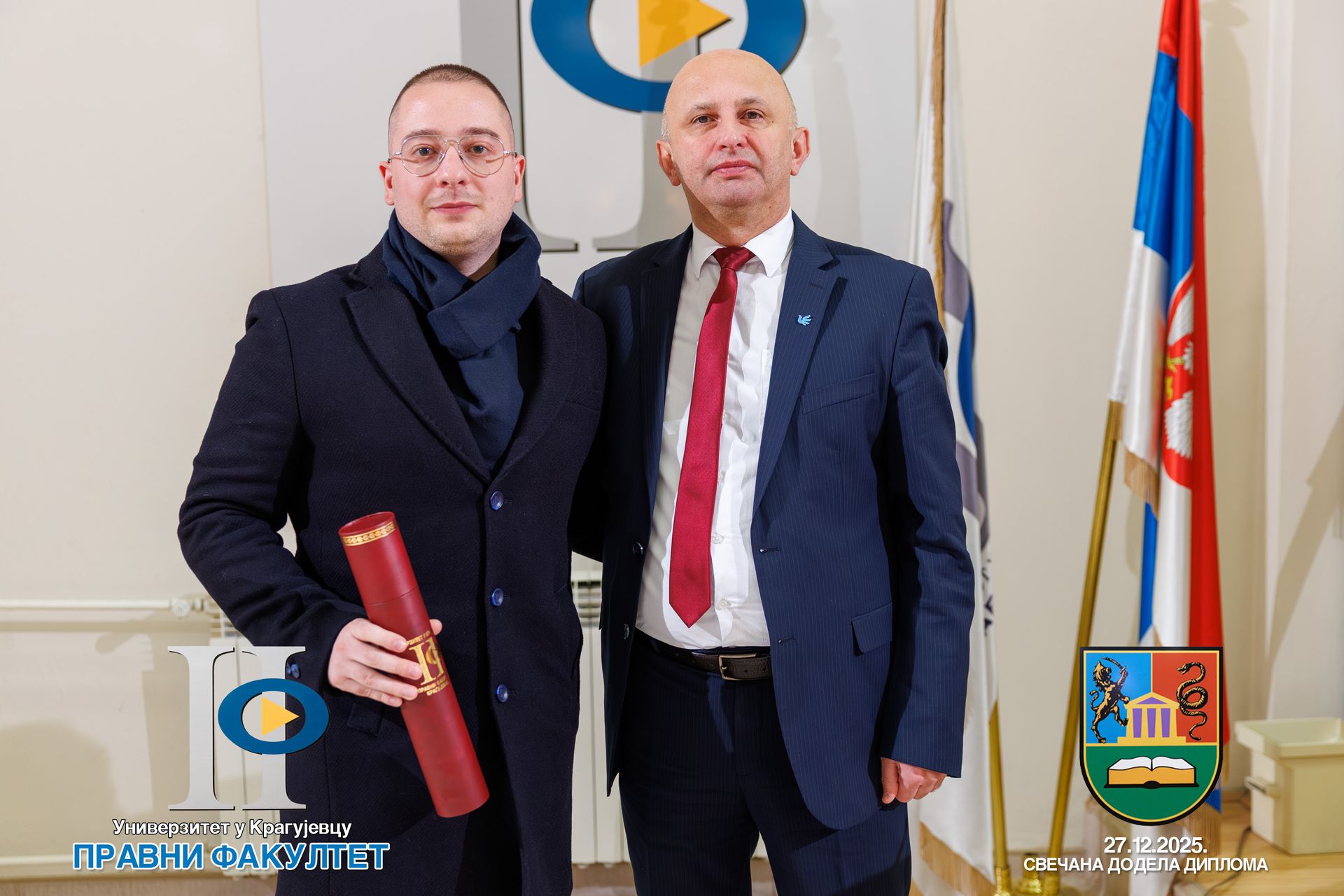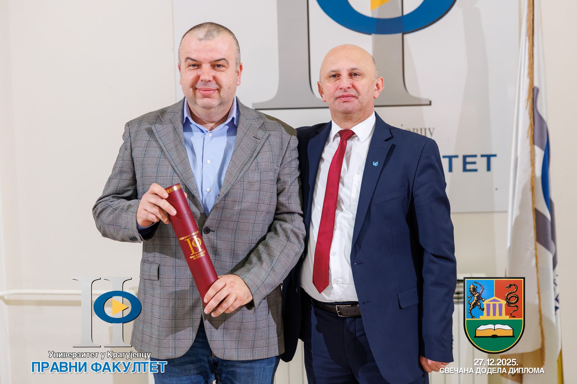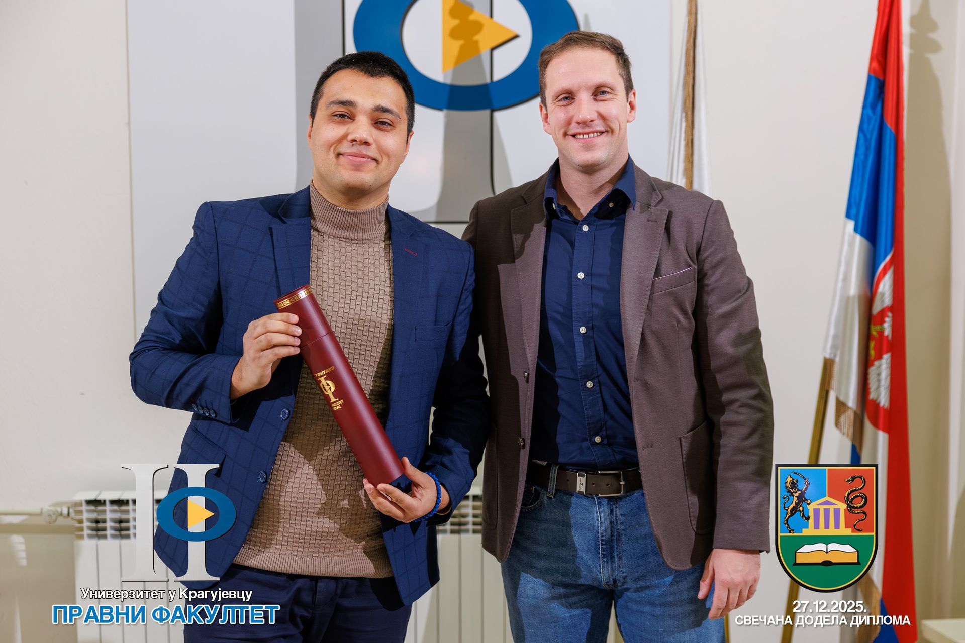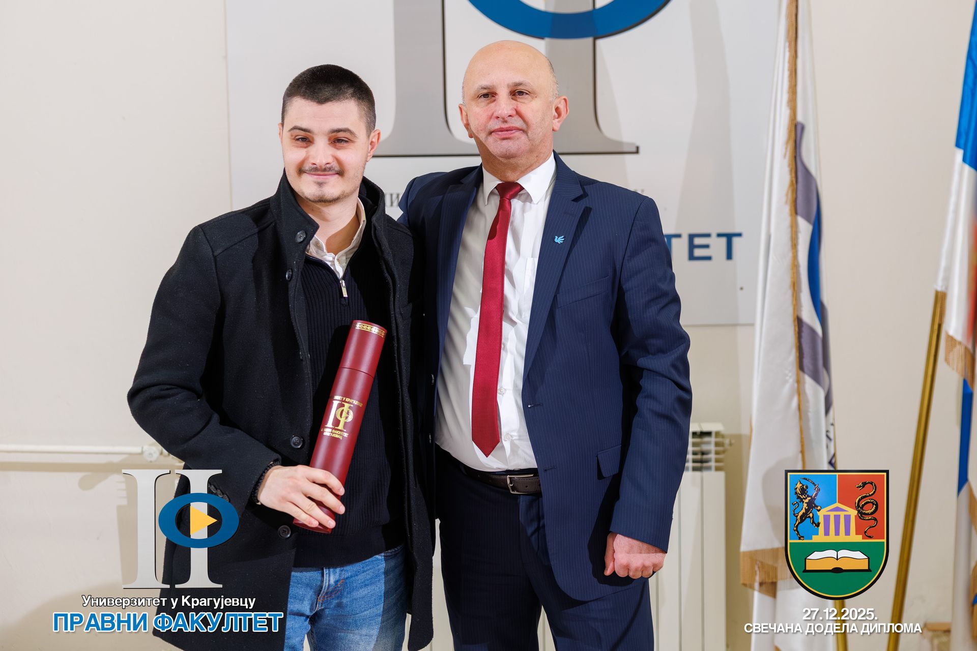 Дана 27. децембра 2025. године на Правном факултету Универзитета у Крагујевцу одржана је свечана додела диплома студентима који су успешно завршили основне или мастер академске студије у периоду од 1. јануара 2024. до 31. октобра 2025. године.