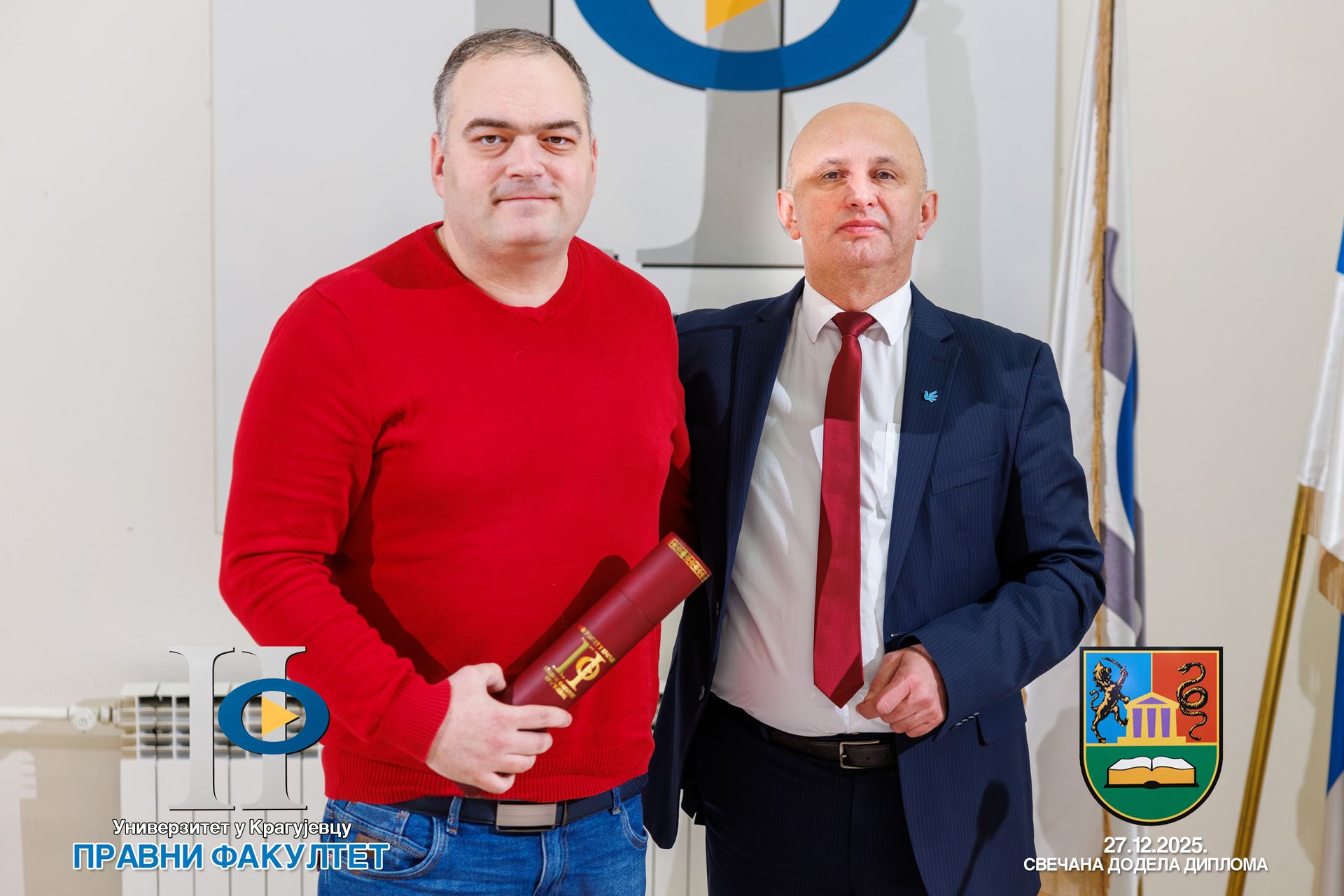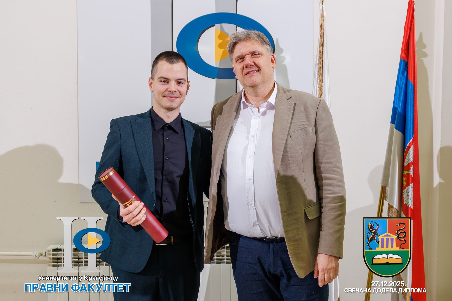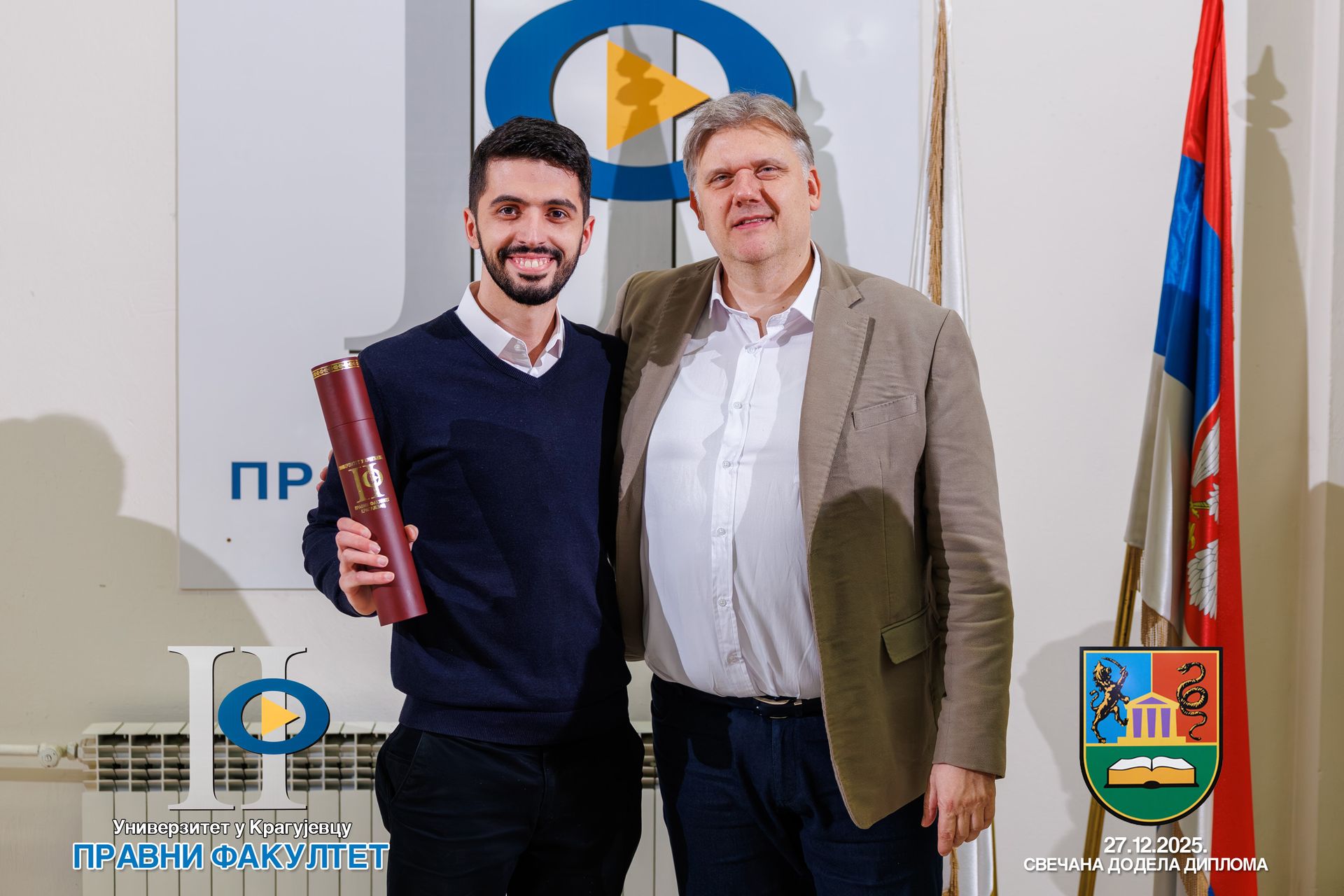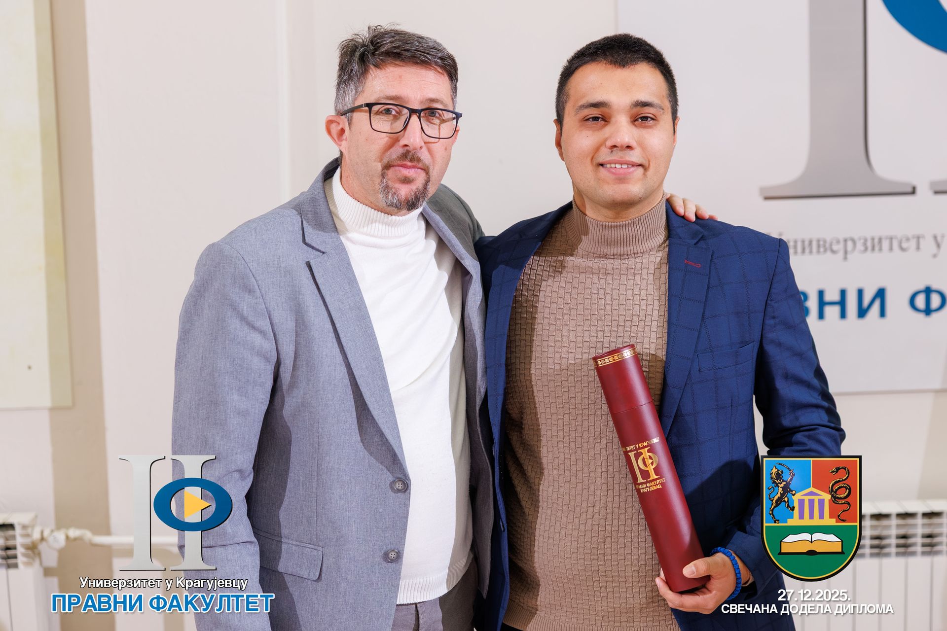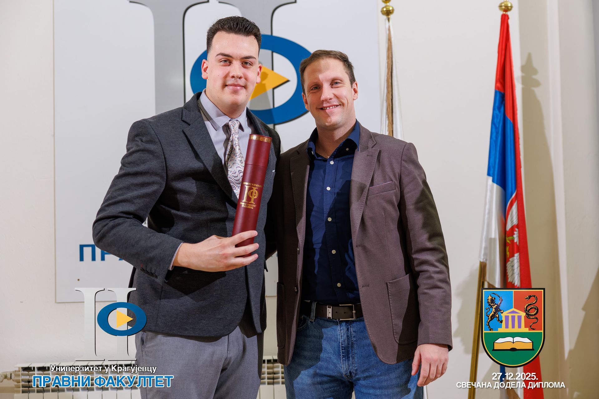 Дана 27. децембра 2025. године на Правном факултету Универзитета у Крагујевцу одржана је свечана додела диплома студентима који су успешно завршили основне или мастер академске студије у периоду од 1. јануара 2024. до 31. октобра 2025. године.