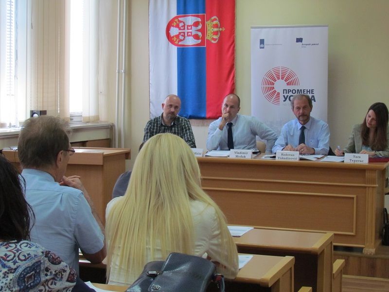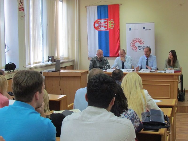 На јавној расправи су говорили: др Владимир Међак, Европски покрет у Србији, Тара Тепавац, Европски покрет у Србији, и проф. др Радован Вукадиновић, Правни факултет Универзитета у Крагујевцу. Модератор је био Ђорђе Мићић. Дебати су присуствовали представници судова и јавних тужилаштава са седиштем у Крагујевцу, Заменик Заштитника грађана Крагујевца, адвокати, као и професори, асистенти и студенти Правног факултета у Крагујевцу.