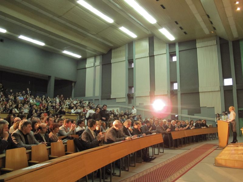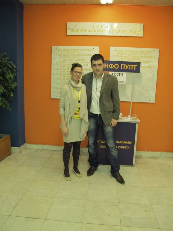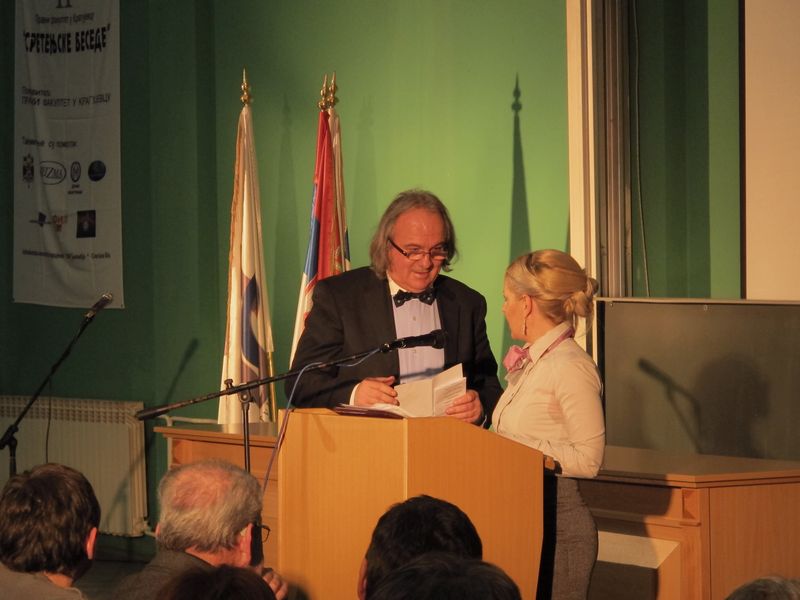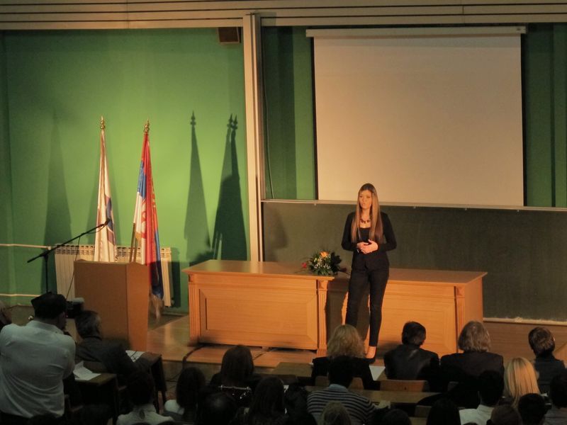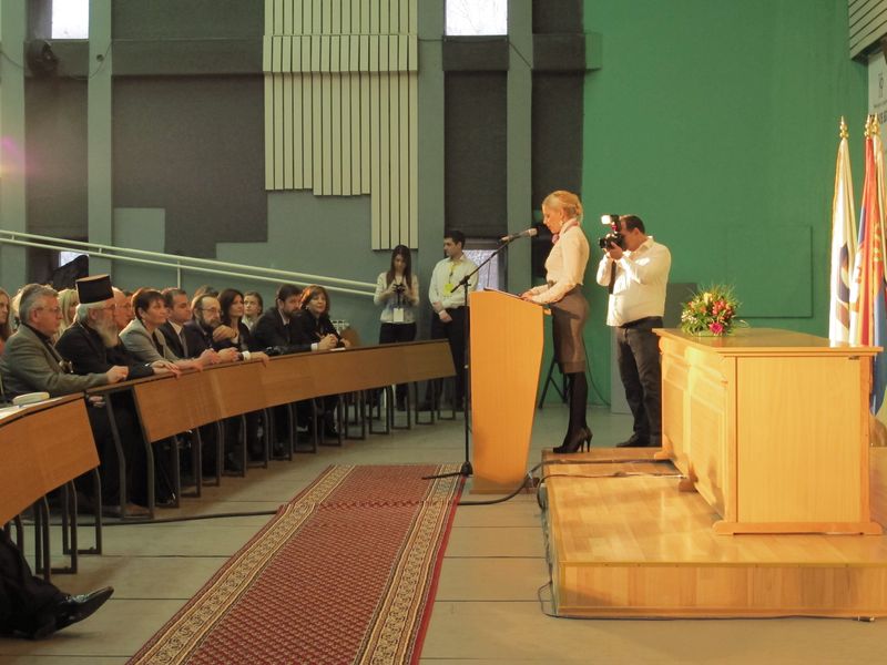 Свечаност је отворио камерни хор Филолошко-уметничког факултета, химном Републике Србије "Боже Правде" и академском химном "Gaudeamus igitur", присутне је затим поздравила проф. др Емилија Станковић, проф. Римског права, проф. др Предраг Стојановић, декан Правног факултета у Крагујевцу и Никола Ивковић, председник Студентског парламента.