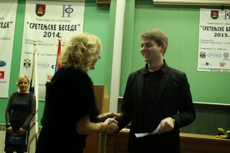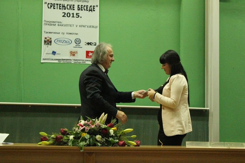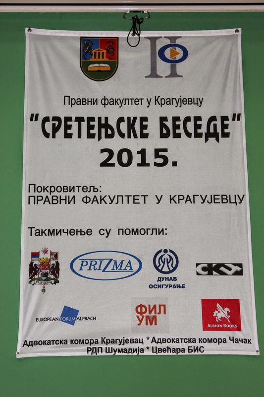 Правни факултет у Крагујевцу, у сарадњи са Студентским парламентом, и ове године је организовао такмичење у беседништву "Сретењске беседе" које је одржано у амфитеатру „проф. др Живомир Ђорђевић“ у четвртак, 19. фебруара 2015. године.