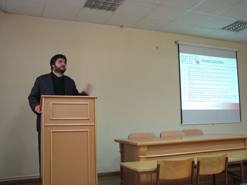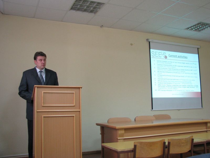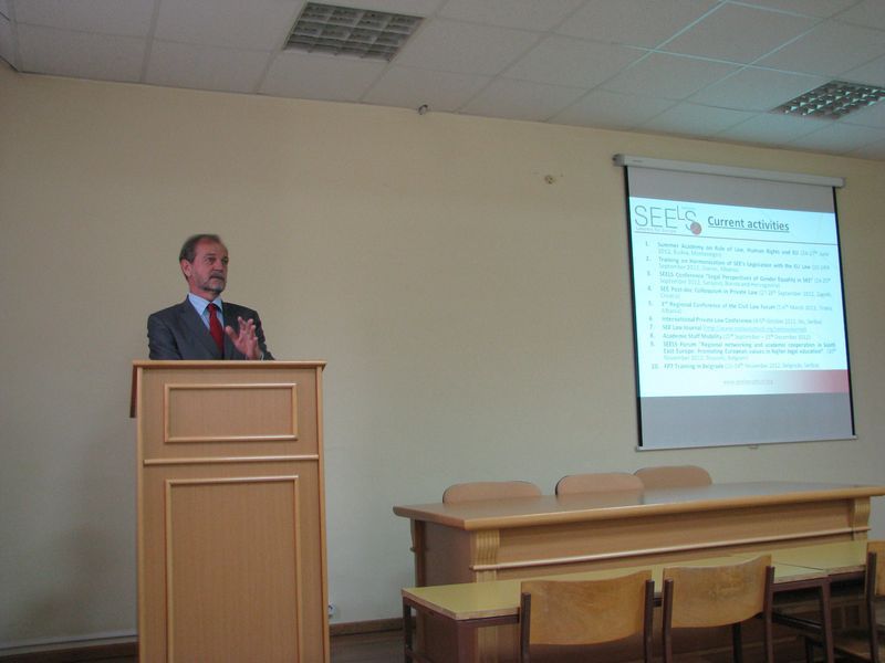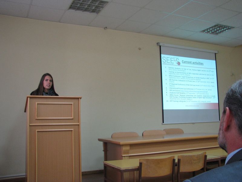 Презентација OPENING DAY SEELS-а - ОТВОРЕНИ ДАН МРЕЖЕ ПРАВНИХ ФАКУЛТЕТА ЈУГОИСТОЧНЕ ЕВРОПЕ, у коју је успешно укључен и Правни факултет у Крагујевцу, је одржана на Правном факултету Универзитета у Крагујевцу у четвртак, 25. октобра 2012. године.