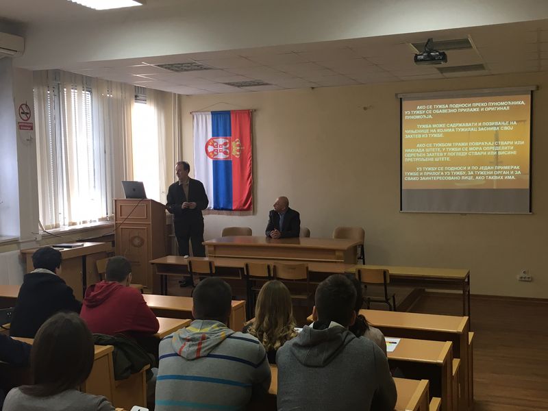 У оквиру реализације наставног процеса из предмета Управно право, студентима треће године Правног факултета у Крагујевцу, дана 20. 01. 2017. године предавање на тему "Управни спор у законодавству и пракси", одржаo je Никола Китаровић, судија Управног суда.