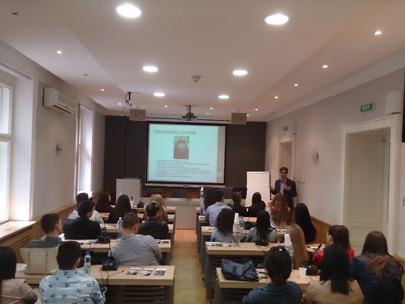 Студентима је, најпре, одржано предавање на поменуту тему, на којем су они стекли нова знања како о ауторско-правним, тако и о патентно-правним аспектима заштите софтвера. Први део предавања одржао је мр Владимир Марић, помоћник директора Завода за интелектуалну својину у Сектору за ауторско и сродна права и међународну сарадњу, док је други део одржао Саша Здравковић, патентни испитивач.